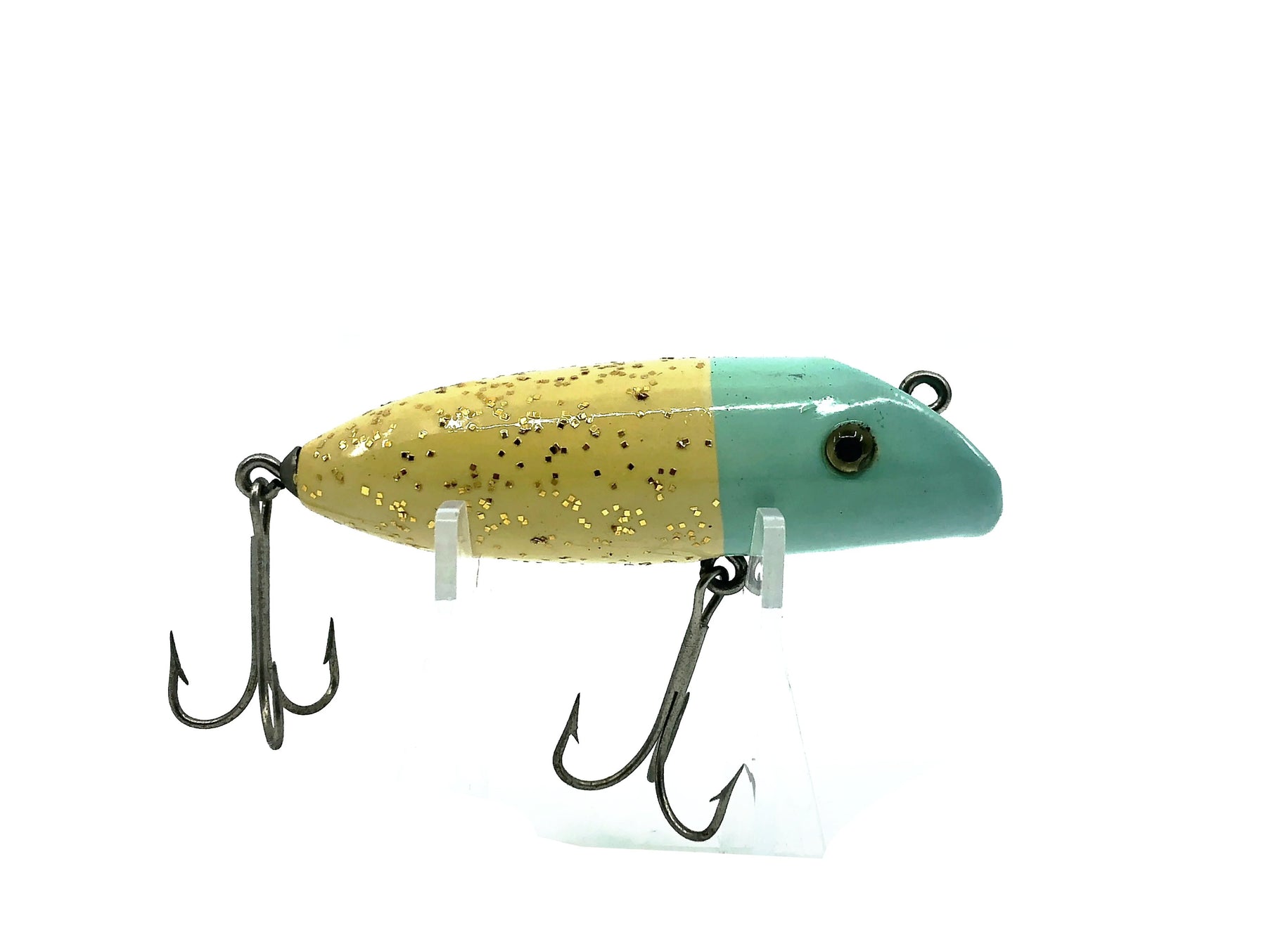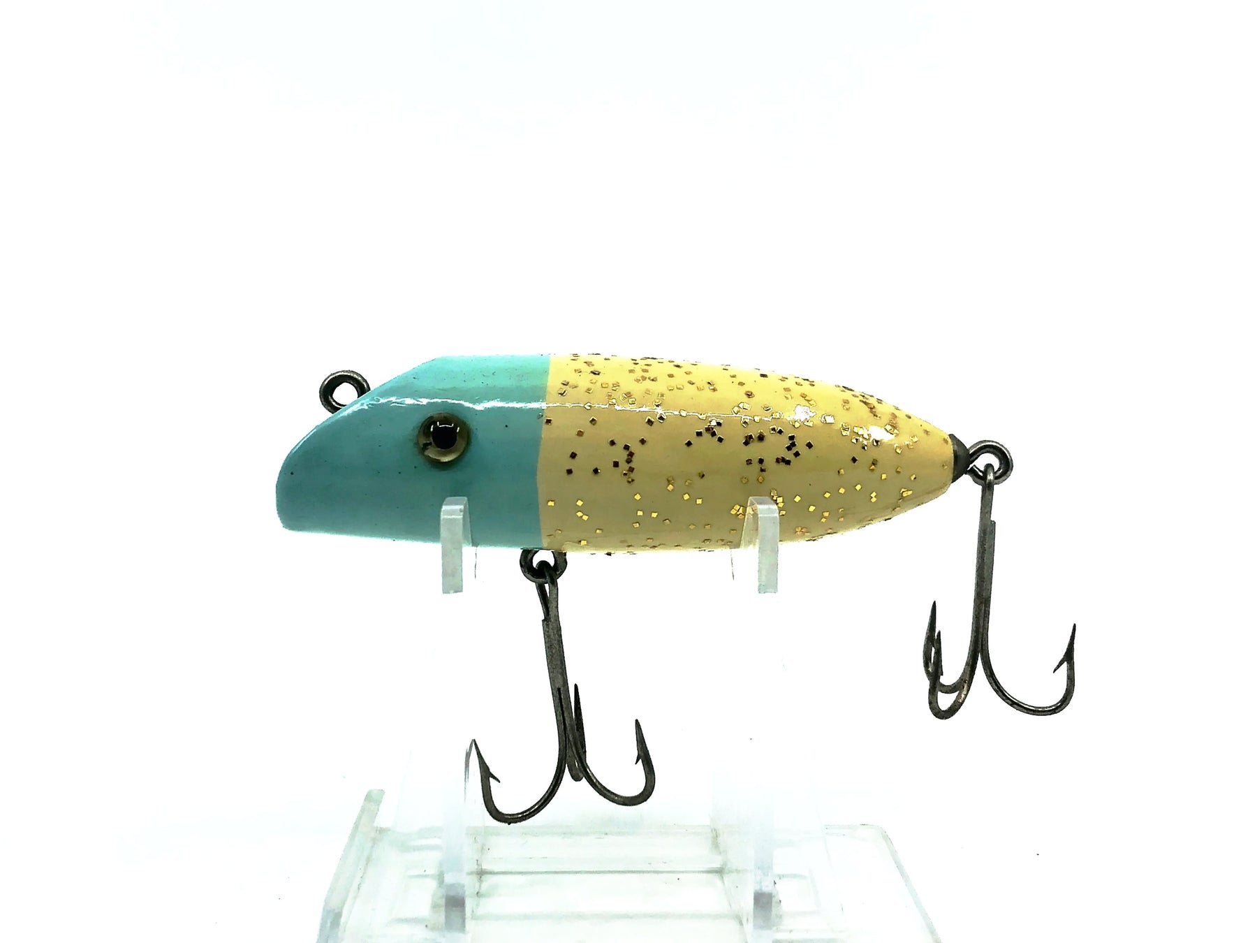 Wooden South Bend Babe-Oreno, Repaint Blue Head/Silver Flitter Color. Great wooden bait here. About 3" long. Lure has been restored, repainted and has a new glass eyes. Fish or display. One of the all time classic fishing lures. See photos.