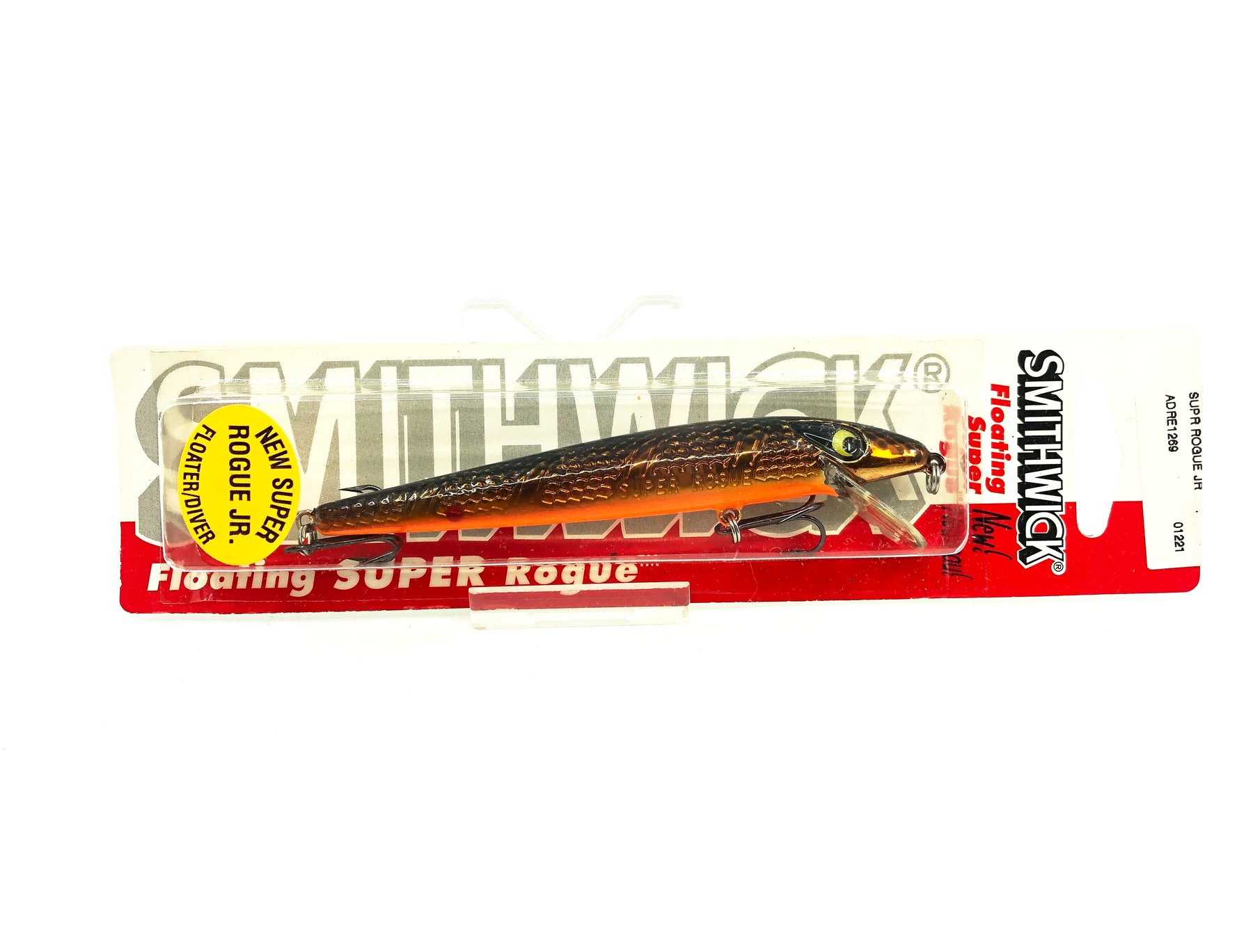 Smithwick Super Rogue Jr., Gold Rogue #69 Color on Card. Old stock here from around 1998. The card has some minor wear but the lure is in new condition, see photos. Lure is about 4" long. Great deal here!