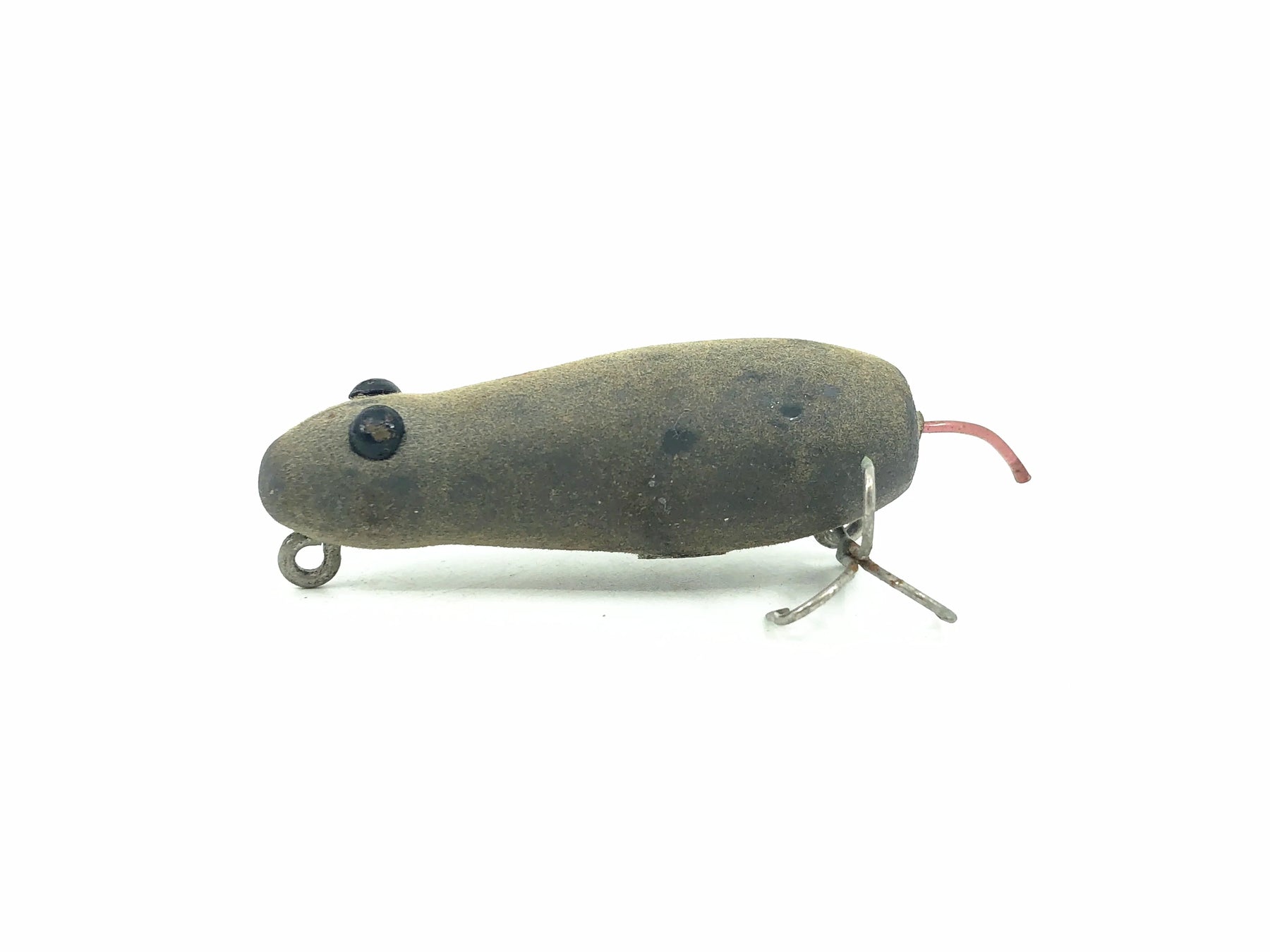 Shurkatch Spinning Mouse. Great vintage flocked mouse bait. Lure is about 2 1/8" long. This bait is used with some minor wear and a shortened tail but in otherwise good condition. Fish or collect, see photos.