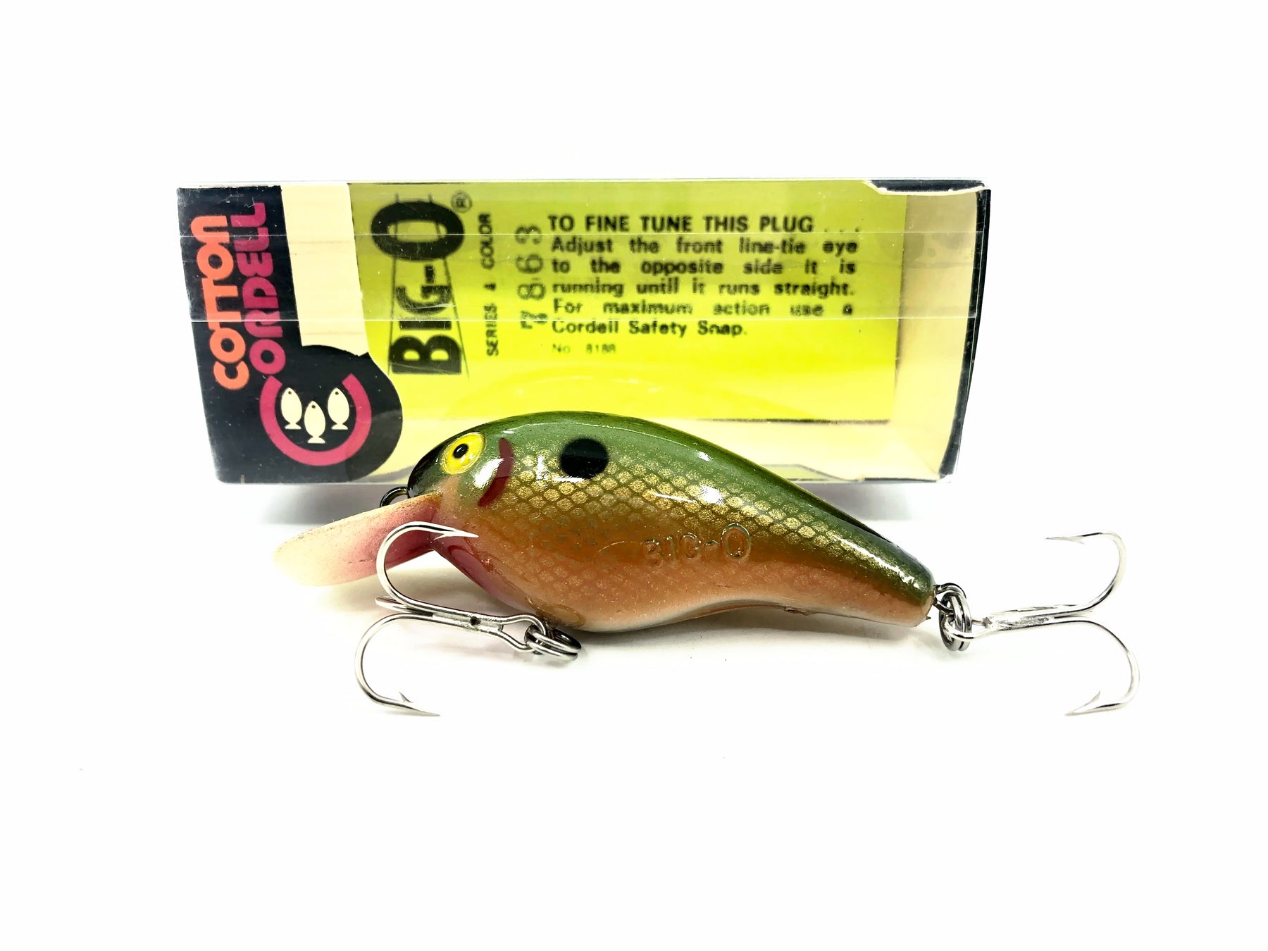 Cotton Cordell 7800 Big-O, #63 7863 Green Sunfish Color w/Box. About 2 1/2" long not including the lip. Lure is new in box and the box is in good condition, see photos. One of the most successful fishing lures ever made. Fish or collect!