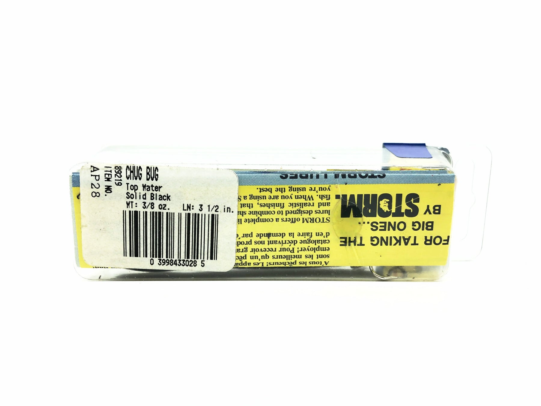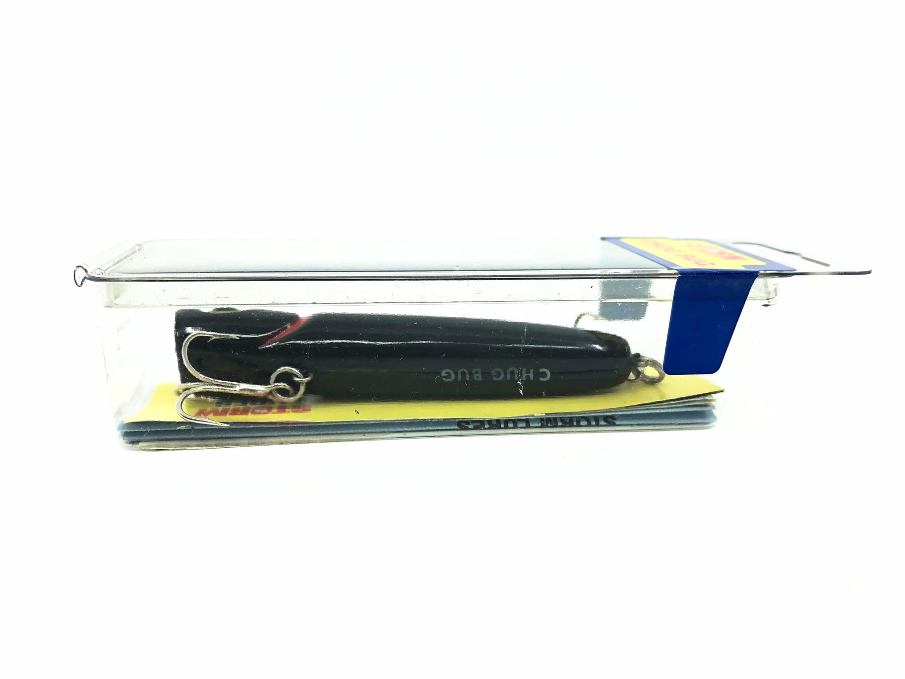 Storm Chug Bug AP28/#238 Solid Black Color w/Box. Great pre-Rapala lure here. About 3 1/4" long. This bait is new in the package and the box is in overall good condition. This lure would look great in your collection or tackle box. See photos.
