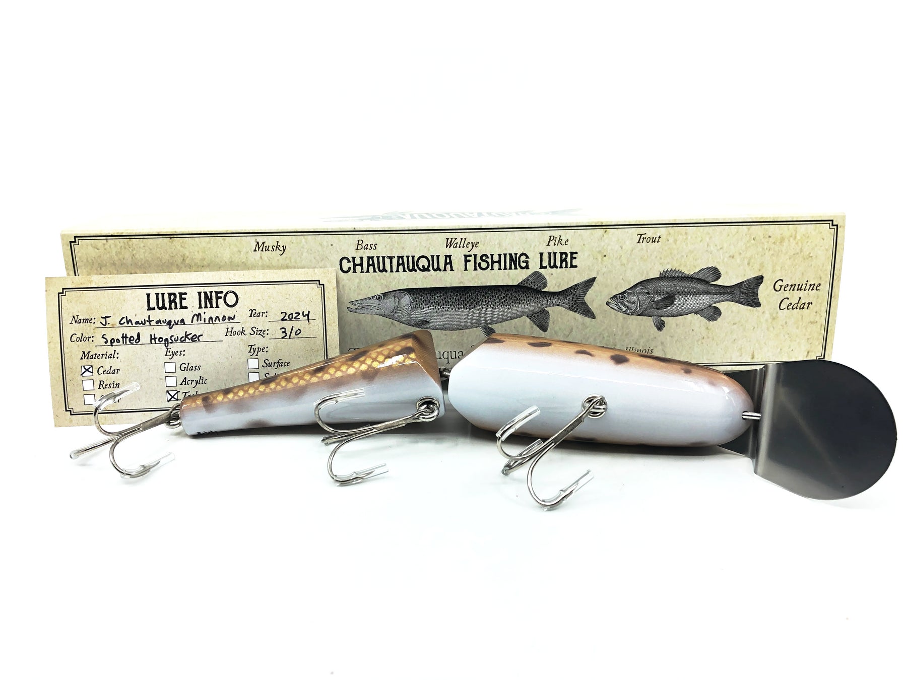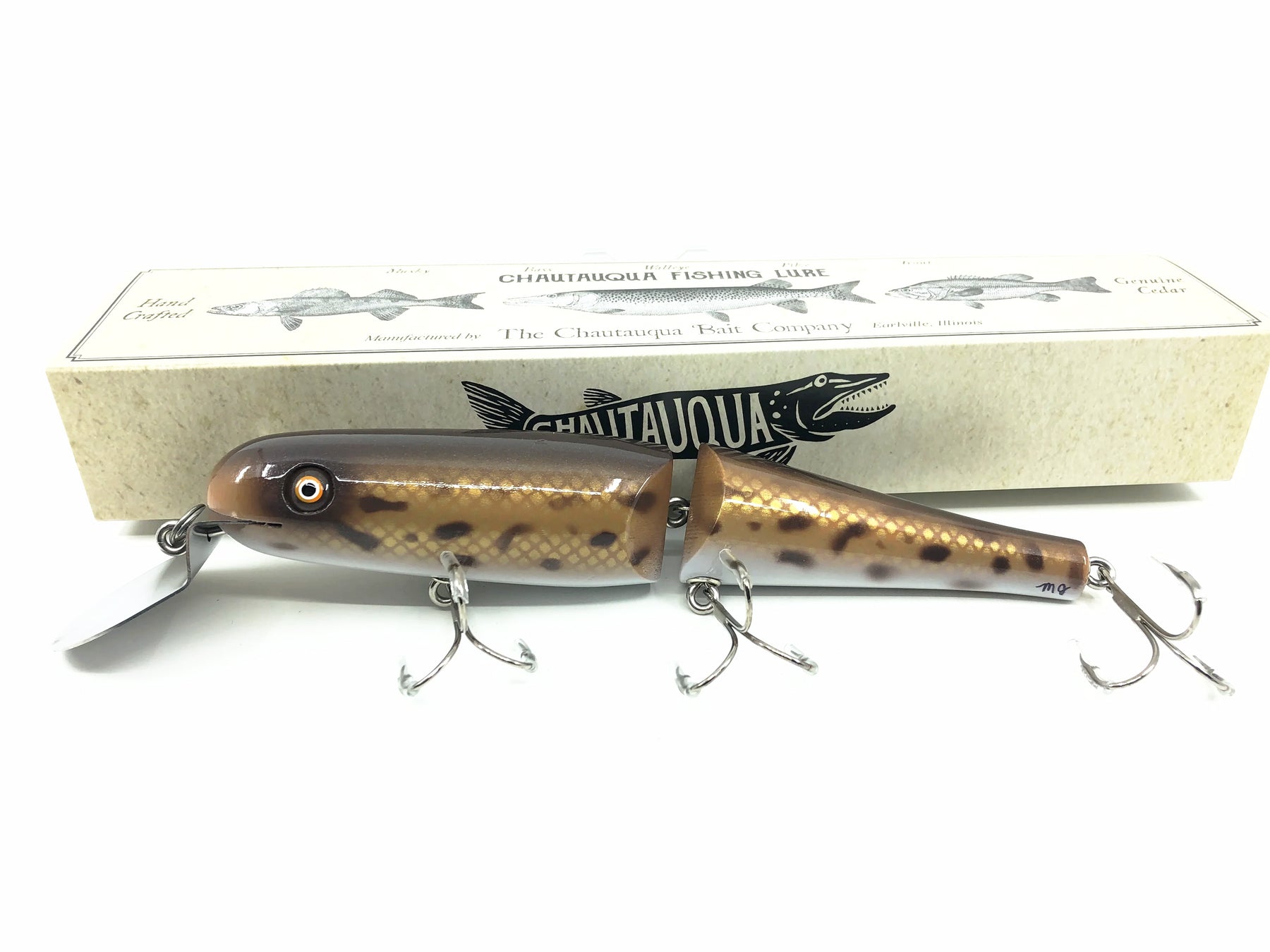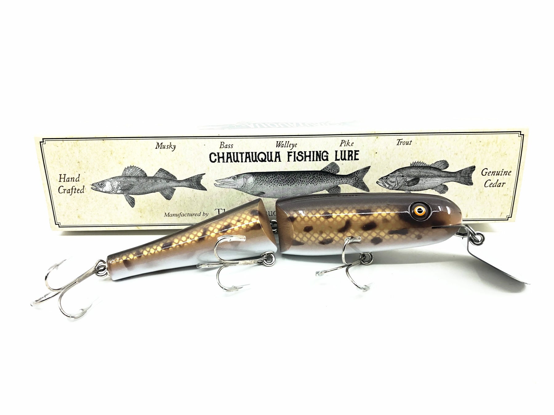 Jointed Chautauqua 8" Minnow, Spotted Hogsucker Color. Get this very special bait and add to your collection or better yet take fishing! That's what it was made for!