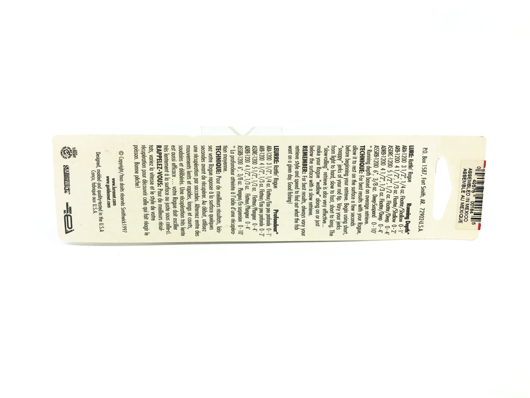 Smithwick Rattlin' Rogue Jr., Tiger Minnow #109 Color on Card