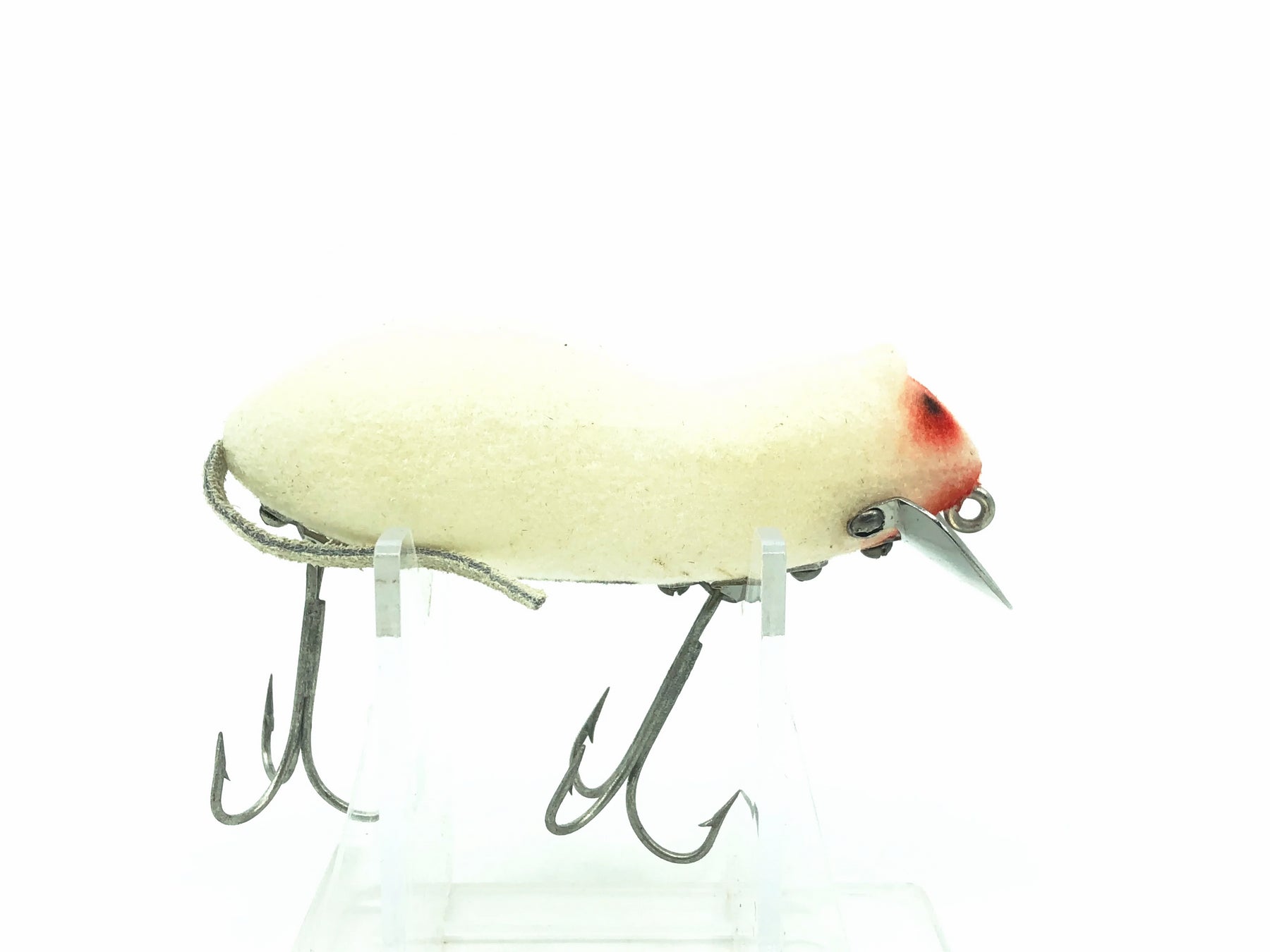 Heddon Meadow Mouse WM White Mouse. Hard to find these mice in this good of condition. Lure is about 3" long. Used with some minor wear. Great for fishing or collection. A true classic Heddon fishing lure here. Getting tough to find these anymore.