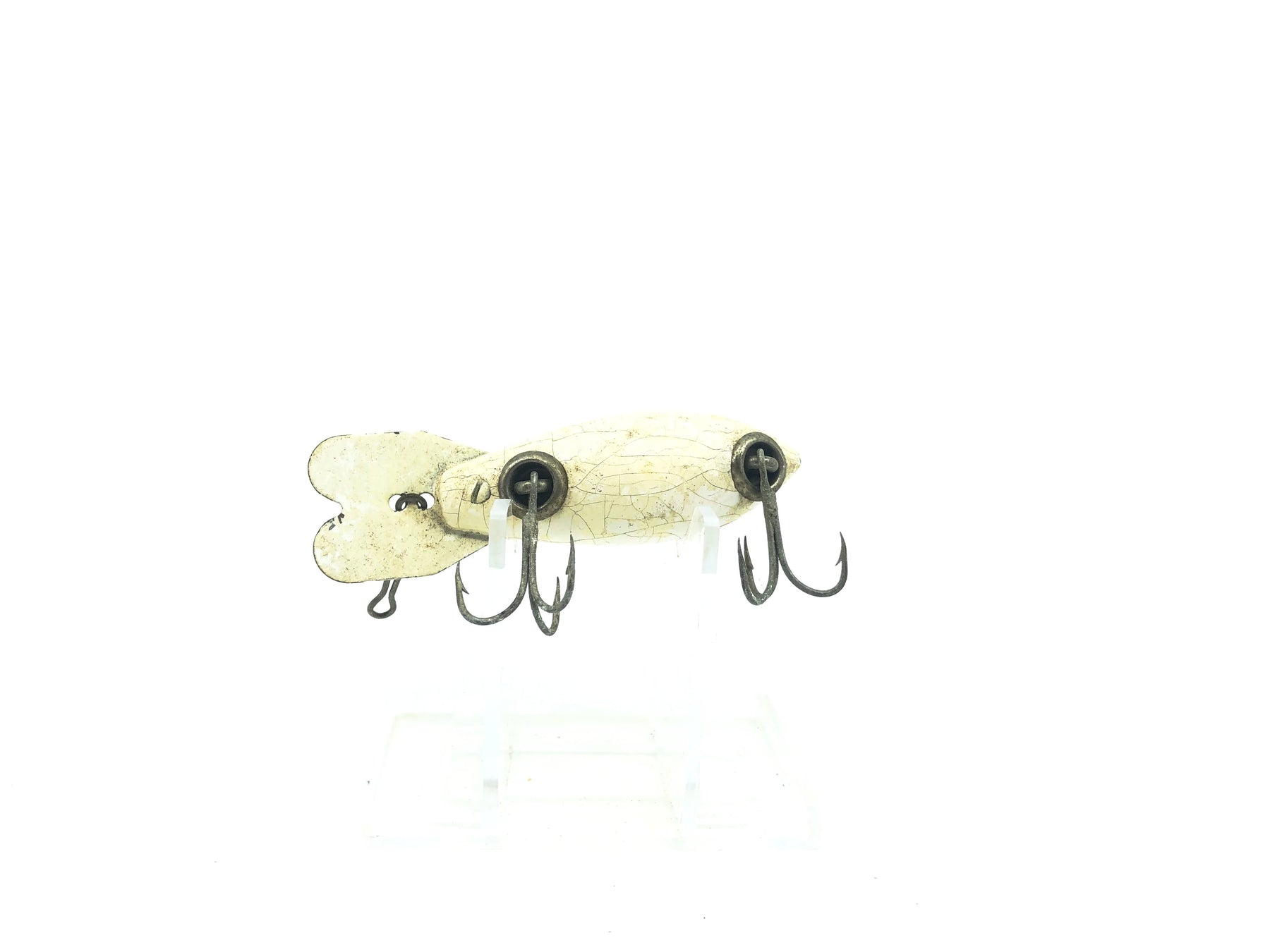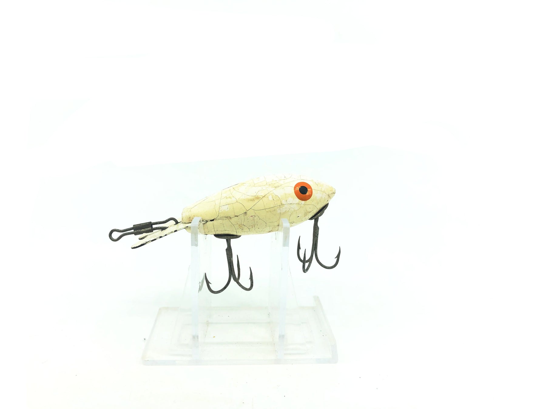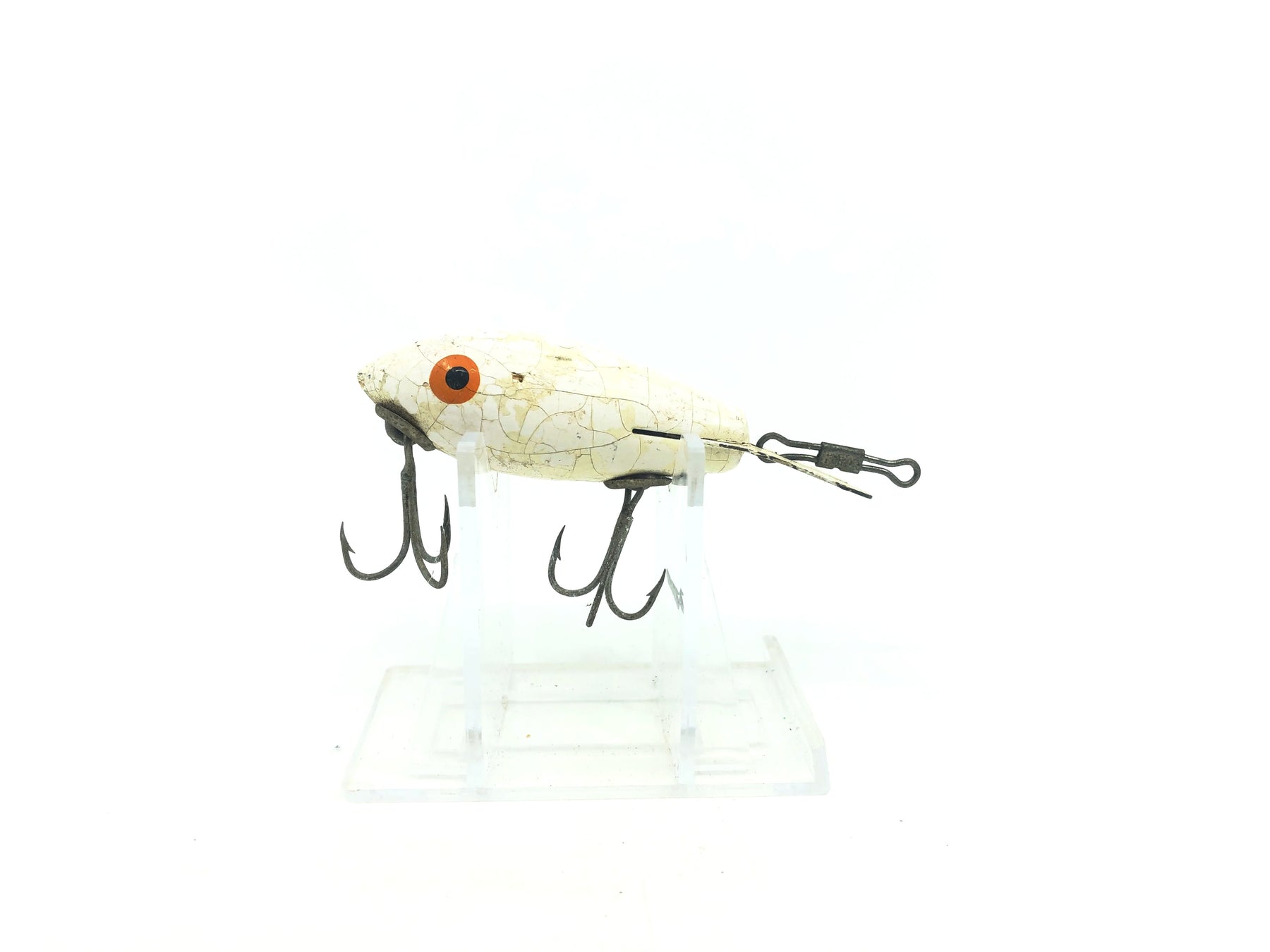 Wooden Bomber 300 Series #01 White Color. About 2 3/4" long. Lure is used with wear and cracks from ages, besides that in ok condition. See photos. Classic lure that isn't made anymore. Fish or collect.
