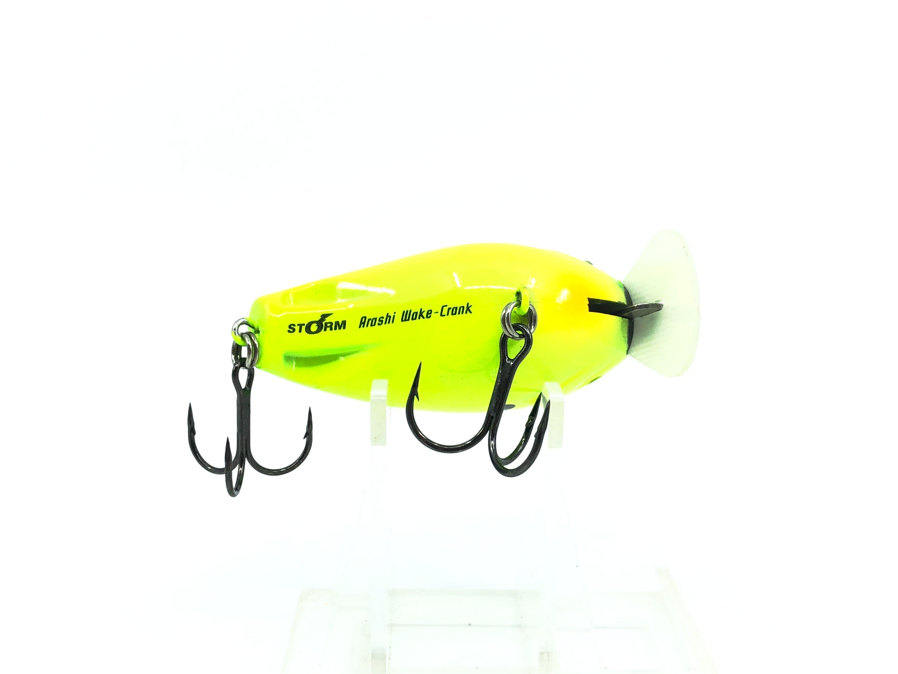 Storm Arashi Wake Crank, Parrot Color. Great discontinued Storm from the 2010s. This lure is about 2 5/8" long including the lip. This bait is used with some minor wear but in overall good condition. See photos.