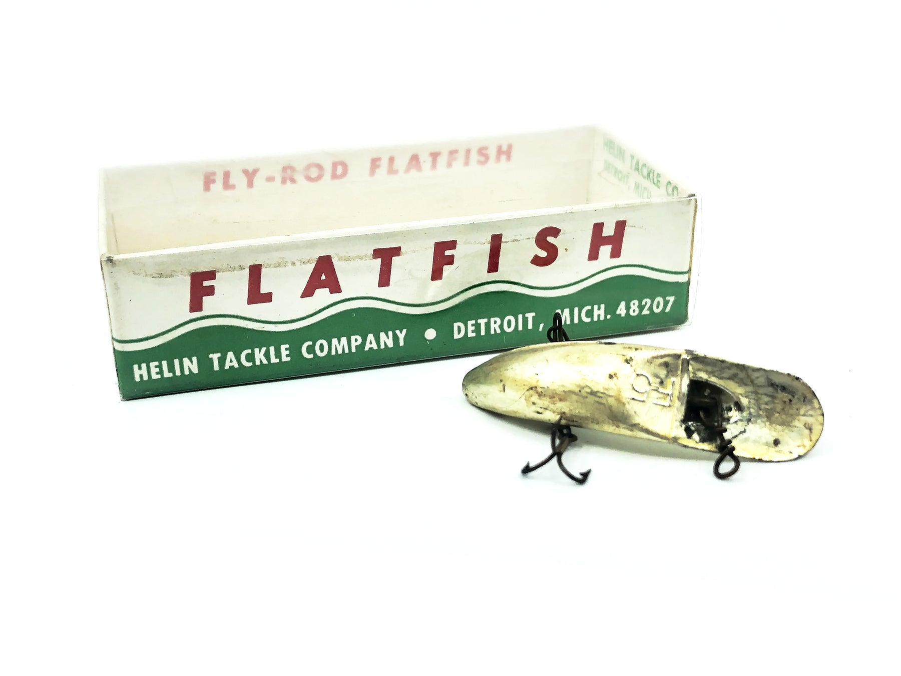 Helin Flatfish F5, GPL Gold Plated Color in Box. Box includes paperwork. Box in good condition. Lure has a good amount of wear and marks but still in overall ok condition. About 1 3/4" long. See photos. Grab this great vintage lure and fish or collect!