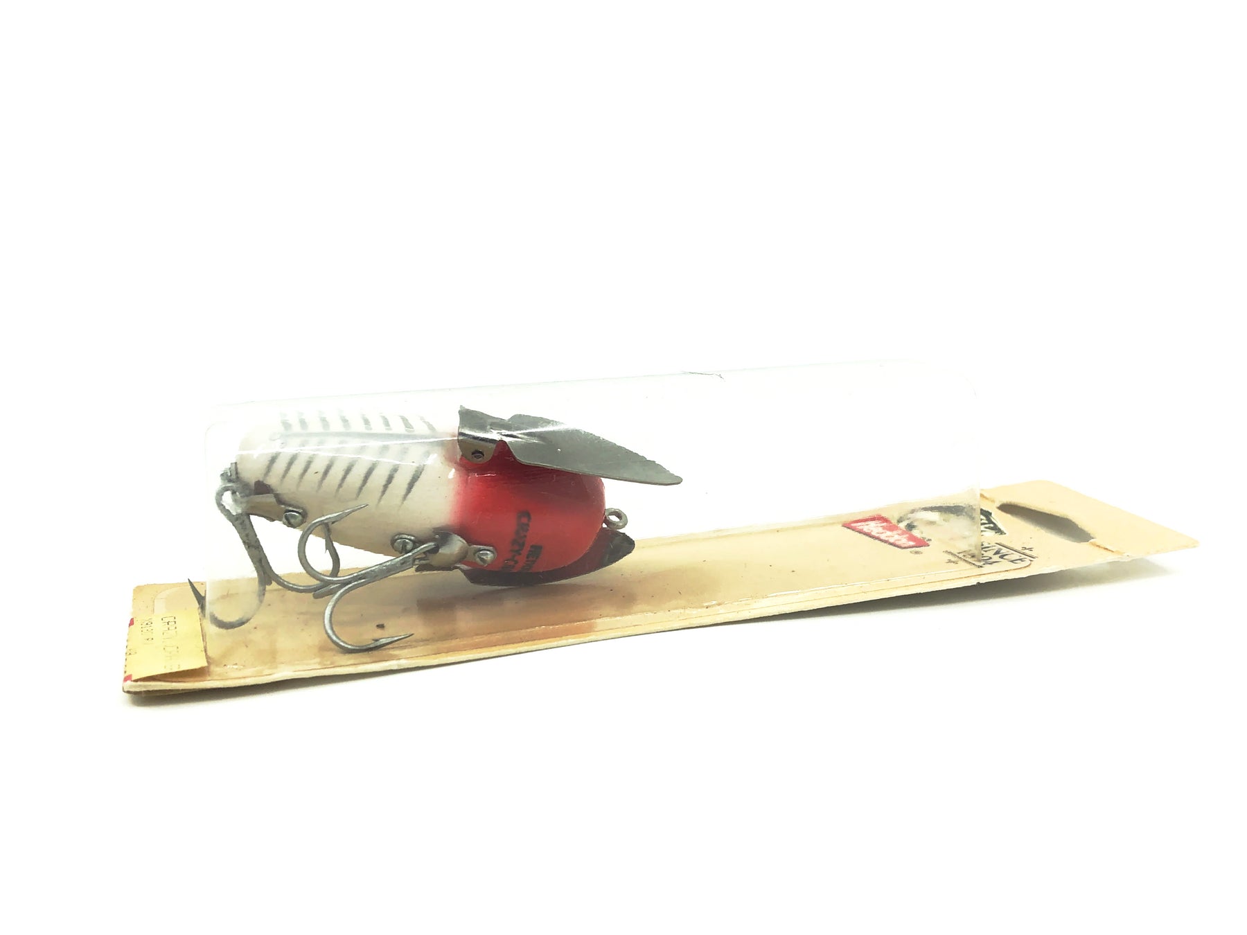Heddon Crazy Crawler 9120, XRW Red & White Shore Minnow Color with Card. About 2 3/8" long. Lure is new on card. Card has some minor wear but is in overall good condition, see photos. Grab this classic Heddon bait today.