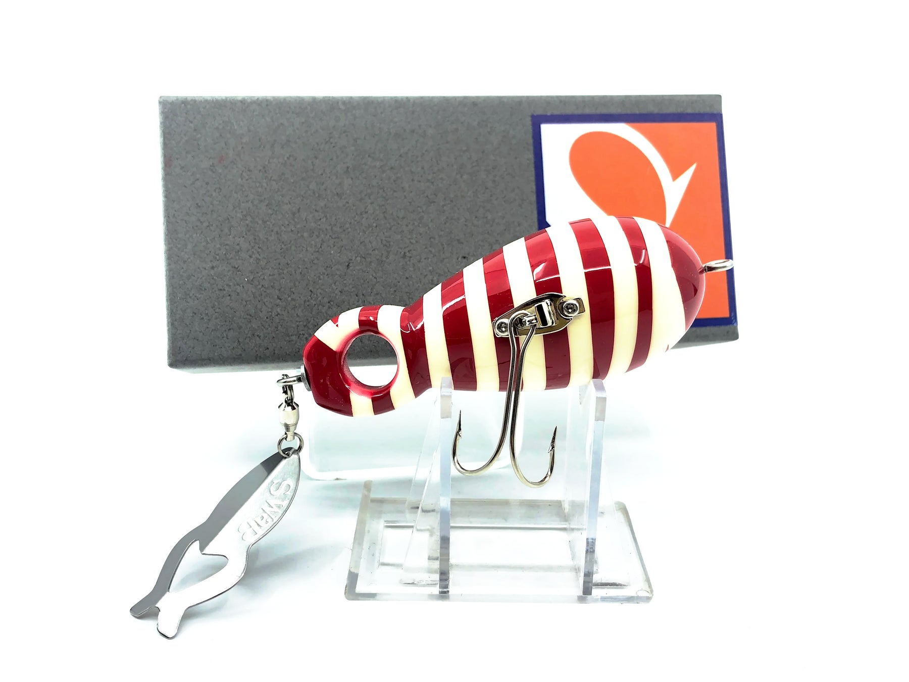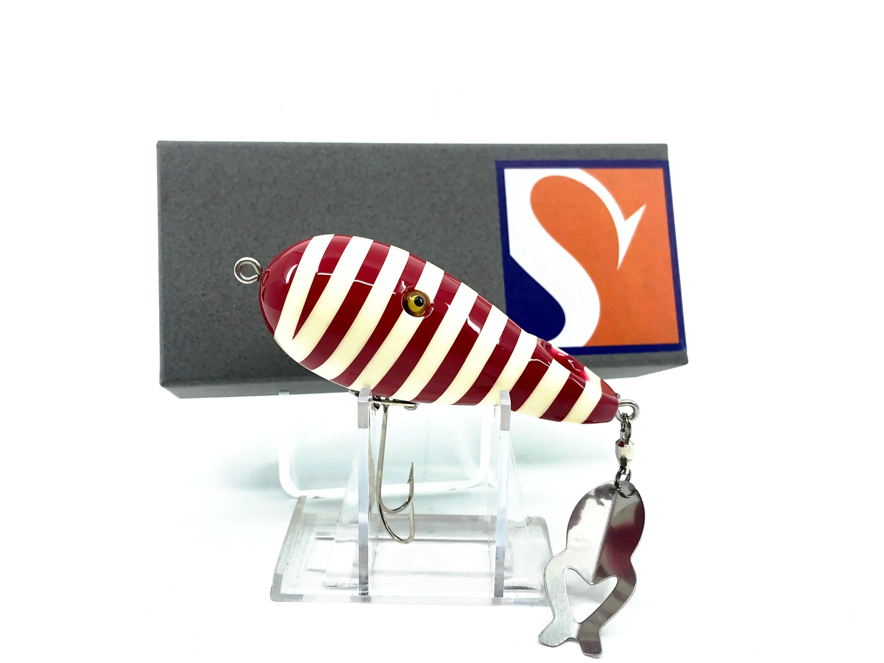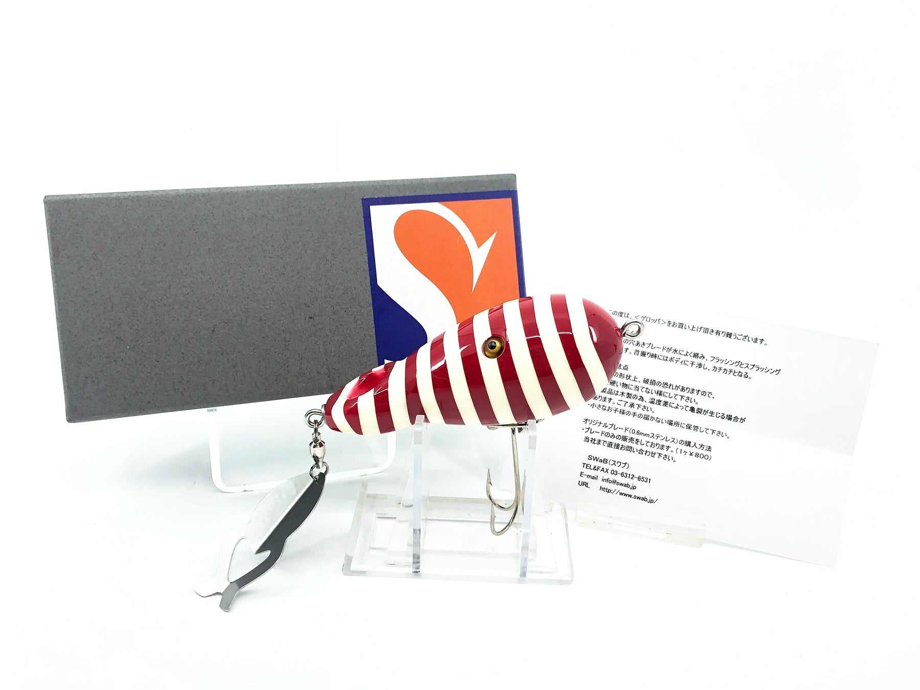 Swab Geroppa Japanese Lure, Red/White Color with Box. Hard to find discontinued contemporary Japanese lure. This lure is about 3 1/2" long. This lure is in new like condition and the box is in good condition as well. Fish or collect this lure!