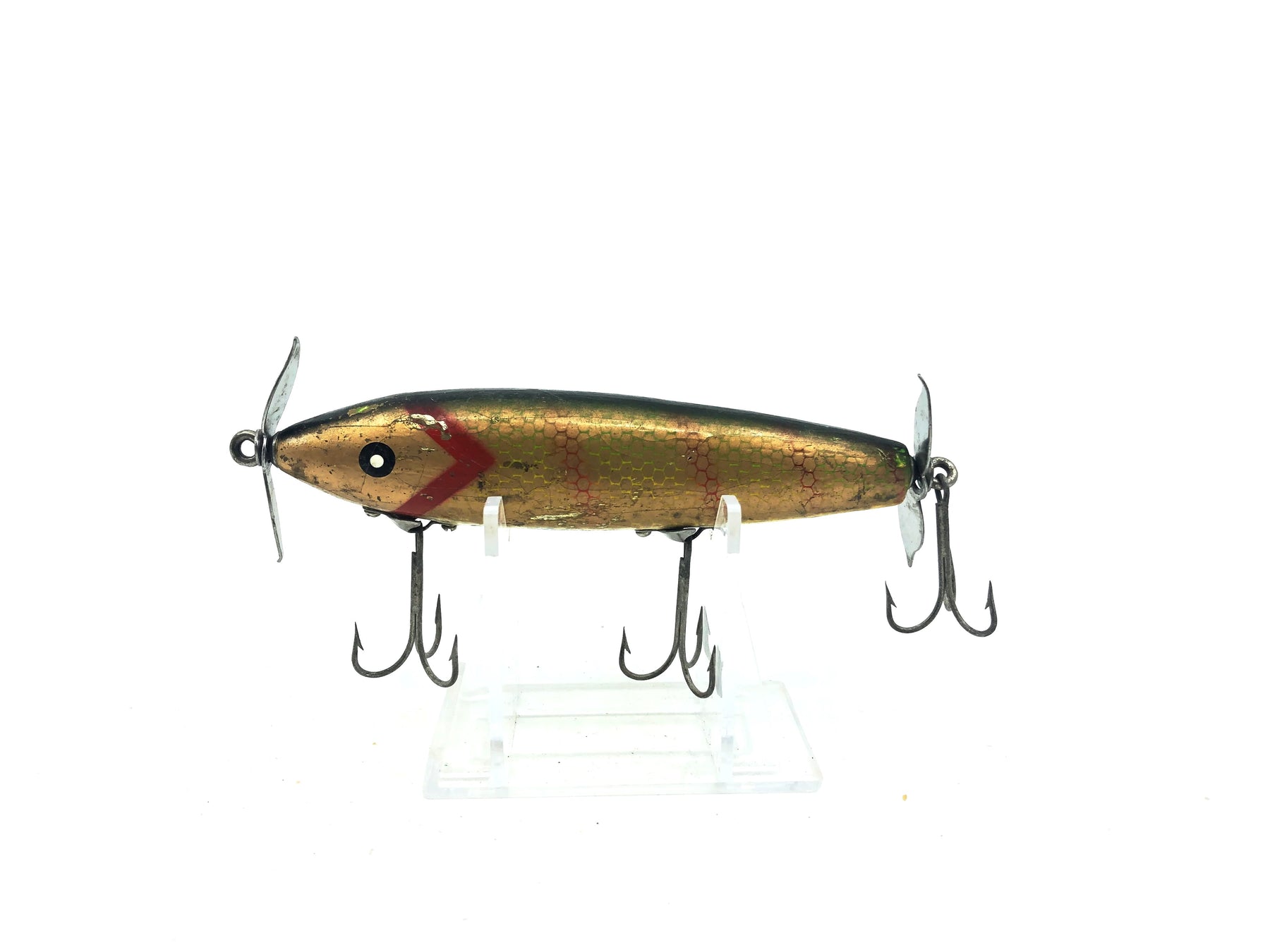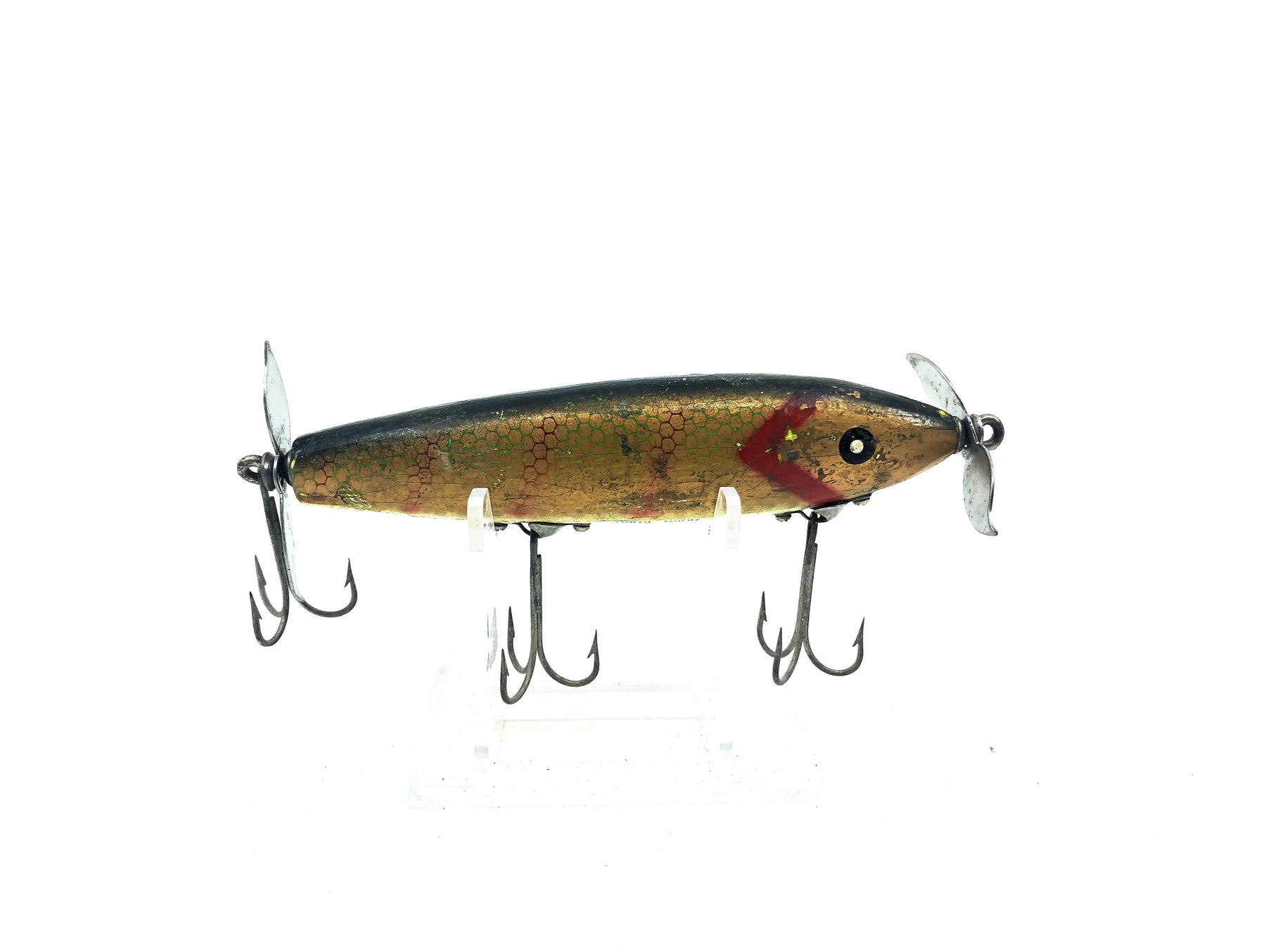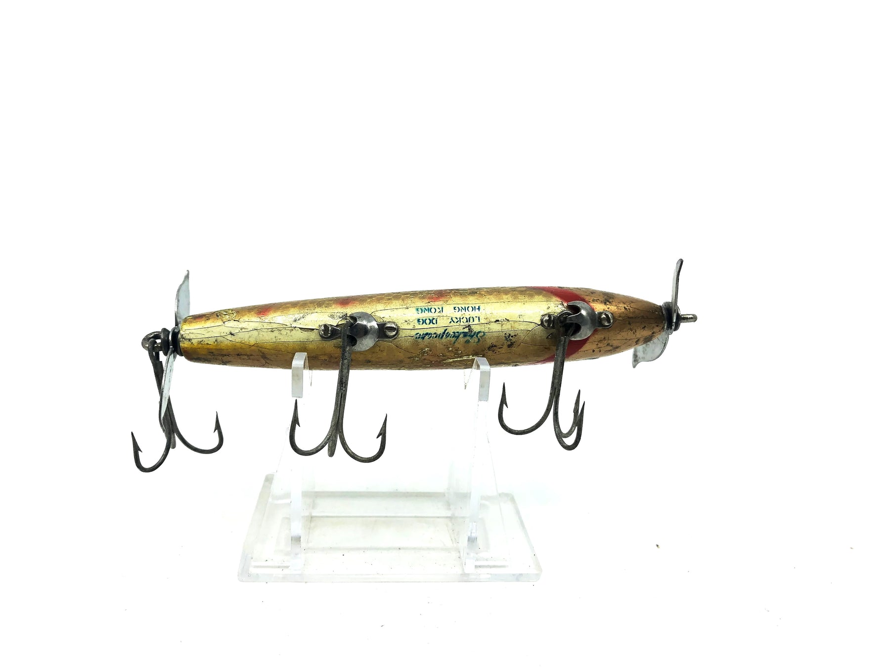 Shakespeare Lucky Dog Gold Scale Color. About 4 1/2" long body. Used with some wear but still in ok condition. A tougher lure to find for sure. Add this one to your display or tackle box. See photos.