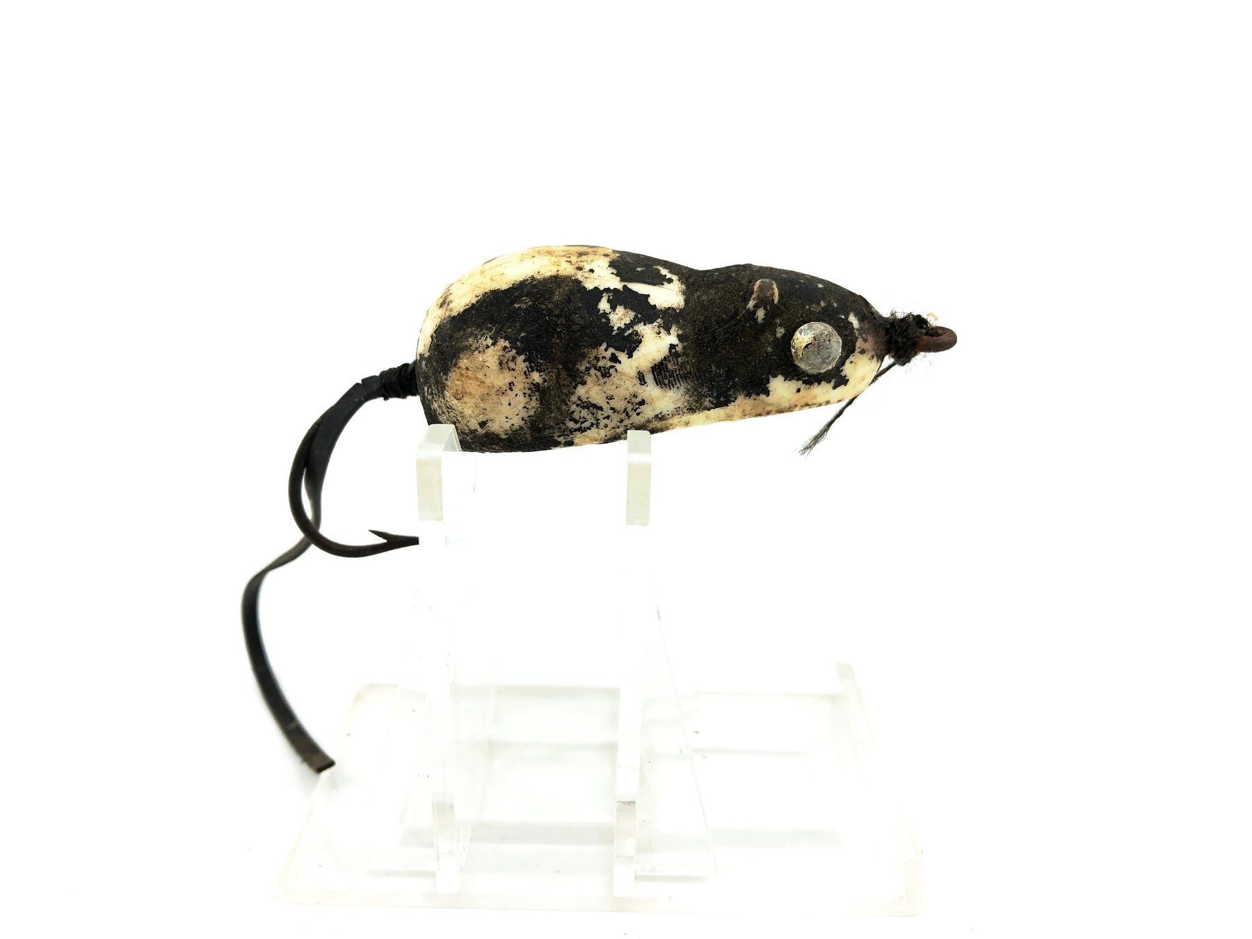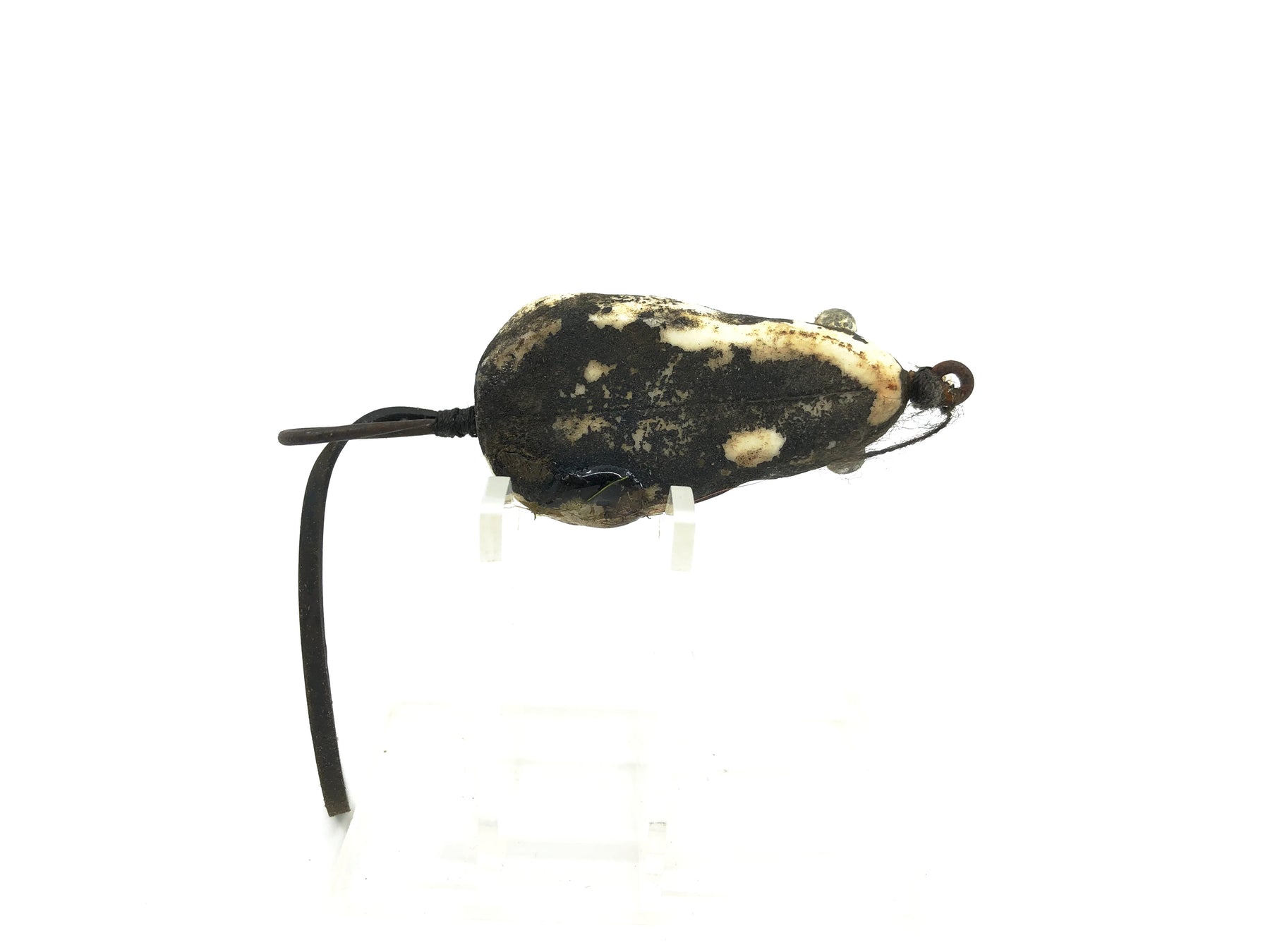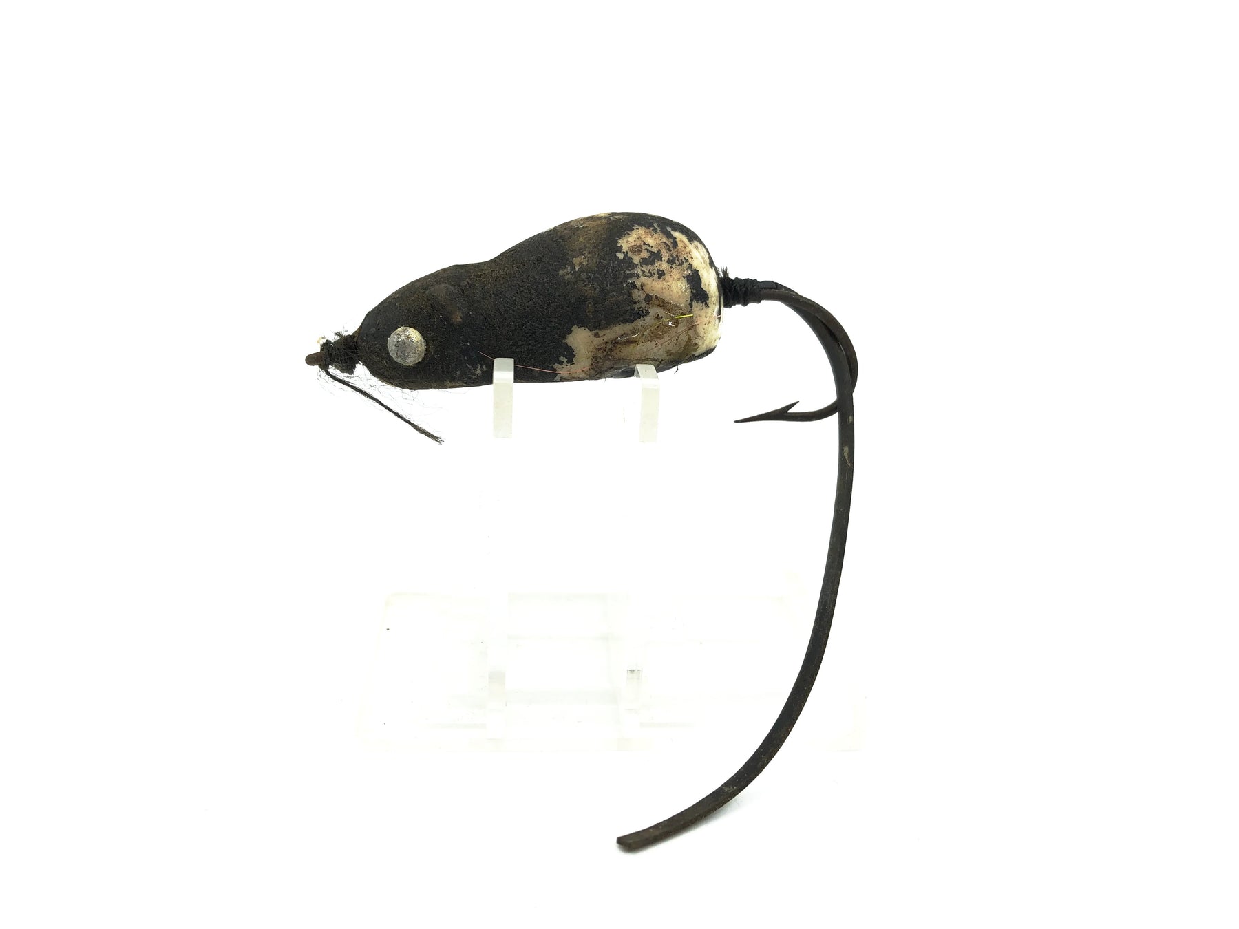 Weber Spin Mouse Gray Color. Mouse body about 2" long not including tail. Made by Weber Tackle out of Stevens Point, Wisconsin. Lure is used with a good amount of wear but it would still be good to fish or collect until you find an upgrade. Harder to find lure for the mouse collector.  See photos.