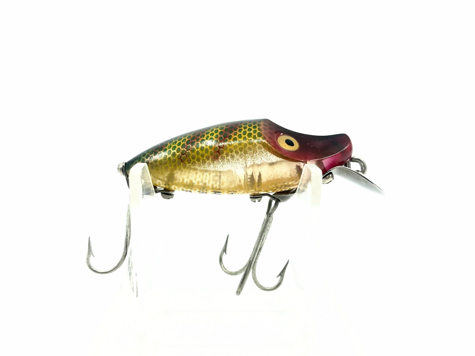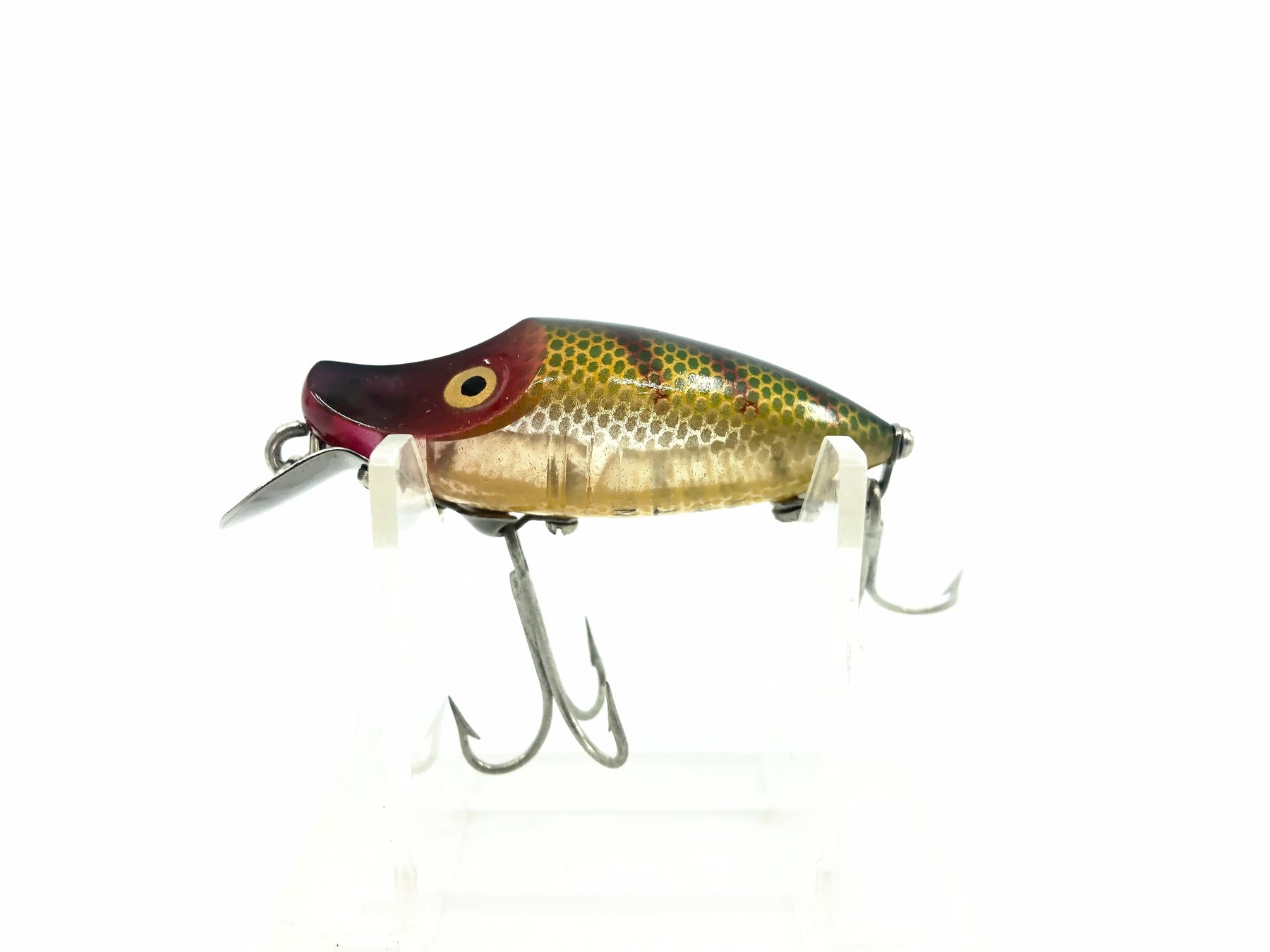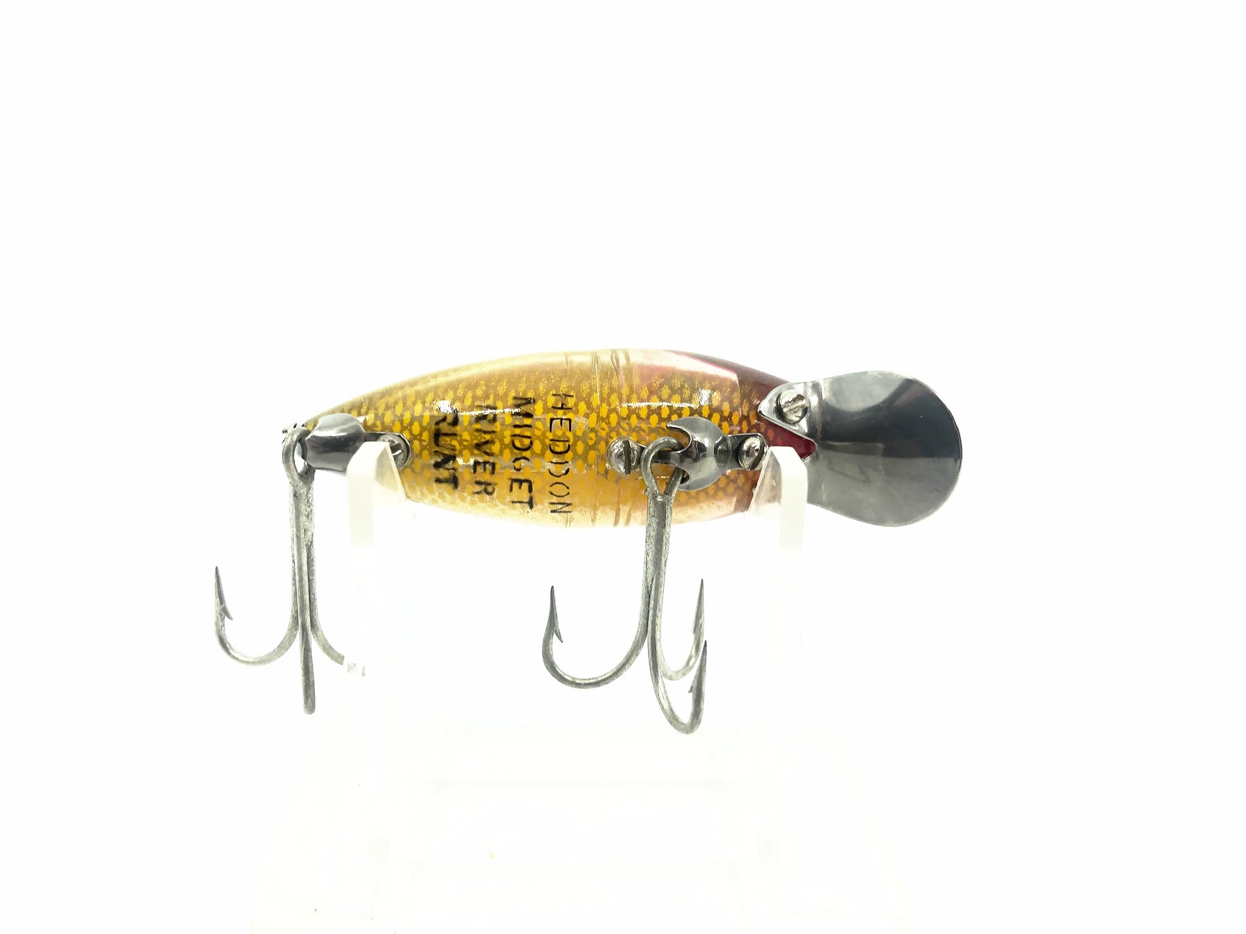 Heddon Midget River Runt Spook 9010, L Perch Color. Lure is about 2 1/4" long. Used vintage lure with some minor wear but still in overall great condition. Fine for fishing or display. See photos. One of the most iconic fishing lures of all time. Collect or fish you can't go wrong with a Heddon River Runt.