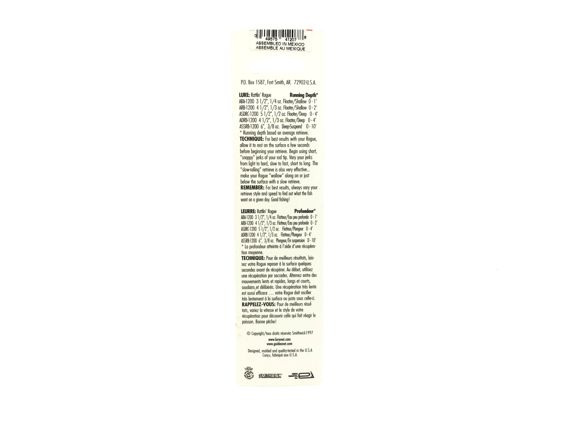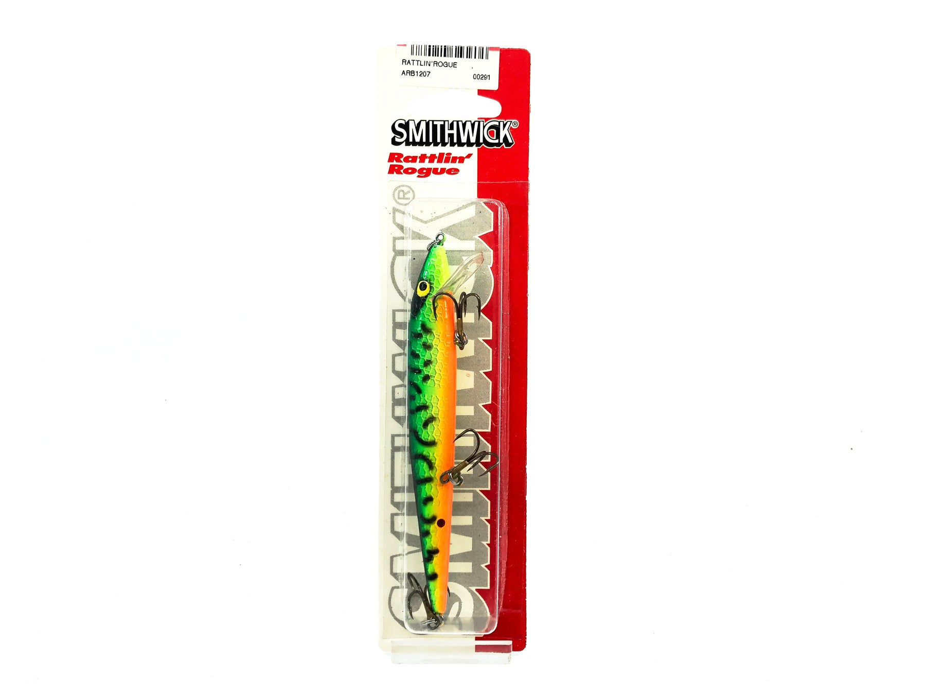 Smithwick Rattlin' Rogue, Tiger Roan #7 Color New on Card. Old stock here from around 1997. The card has some minor wear but the lure is in new condition, see photos. Lure is about 4 1/2" long. Great deal here!