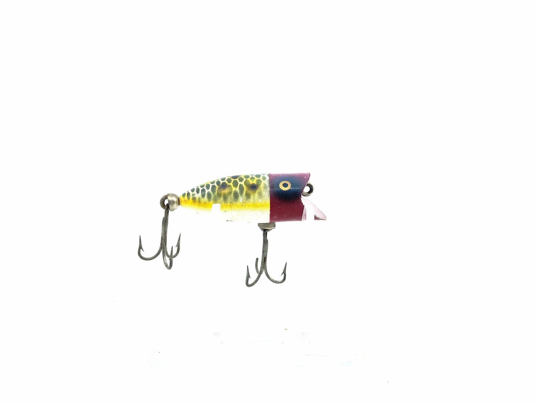 Heddon Tiny Lucky 13 JRH Red Head Frog Scale Color. About 1 3/4" long. Used but in good condition, see photos. Classic Heddon lure.