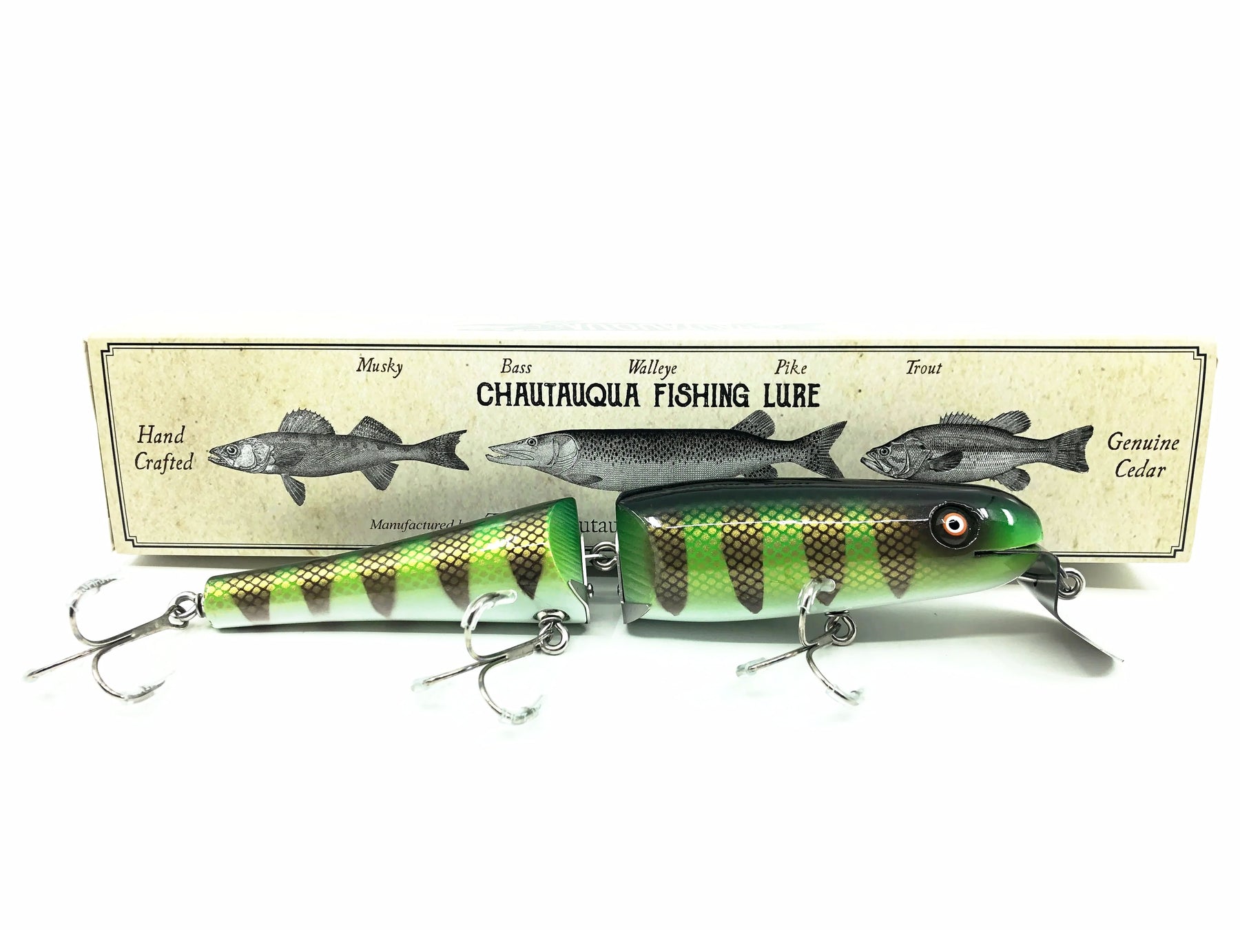 Jointed Chautauqua 8" Shallow Diver, Yellow Perch Color. Get this very special bait and add to your collection or better yet take fishing! That's what it was made for!
