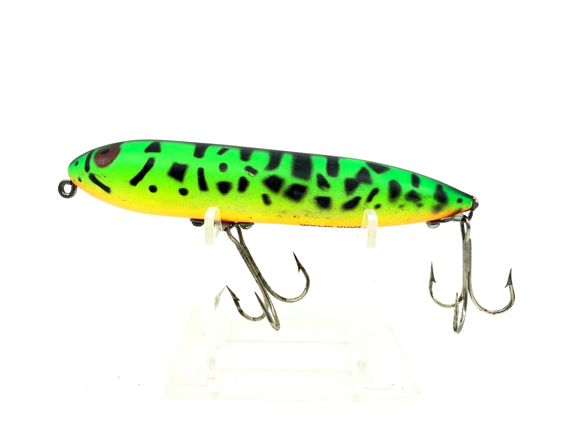 Heddon Original Zara Spook, GRA Green Crawdad Color. About 4 1/4" long. Used but in good condition aside from some minor wear and marks, see photos. Classic Heddon lure.