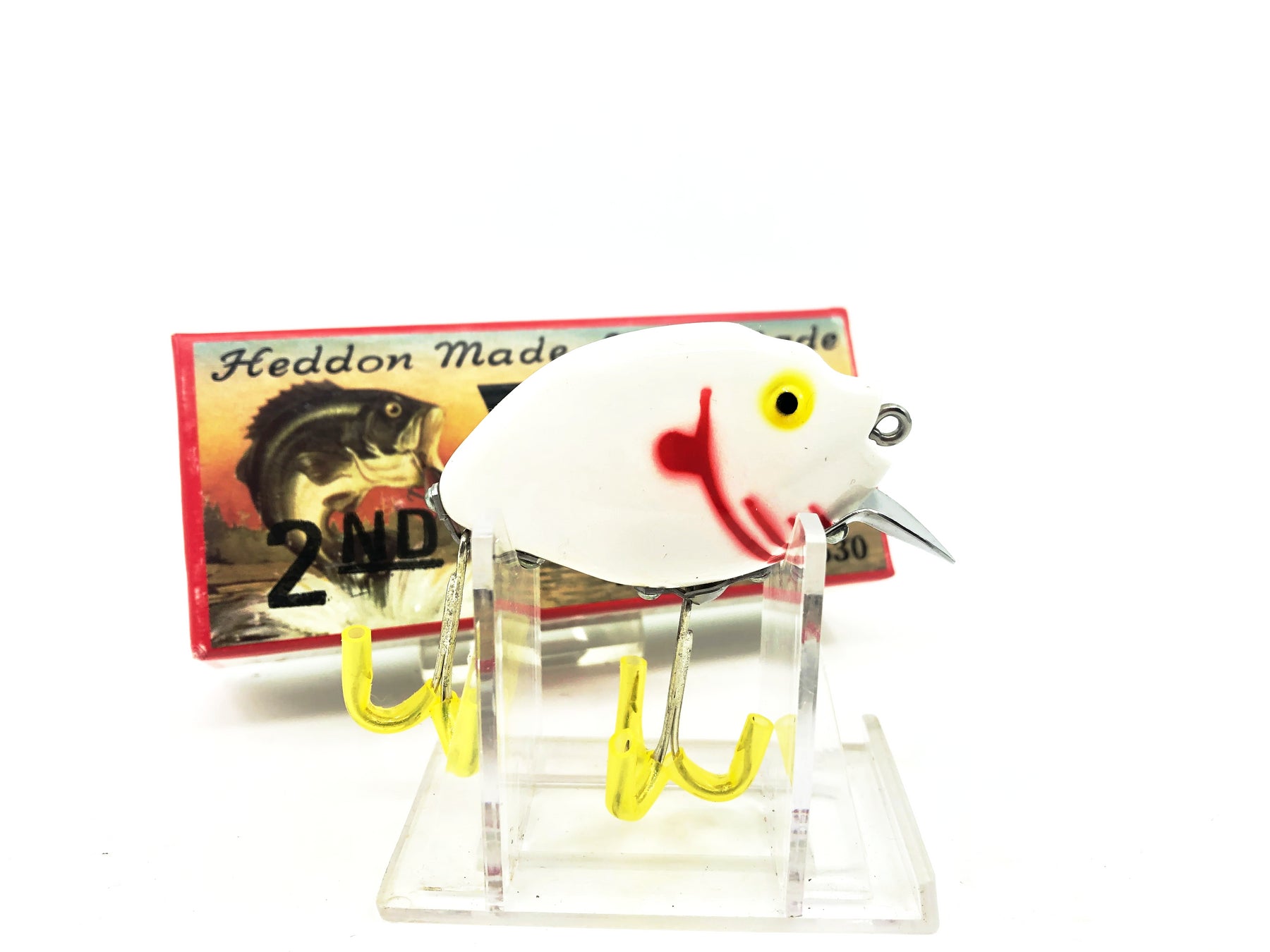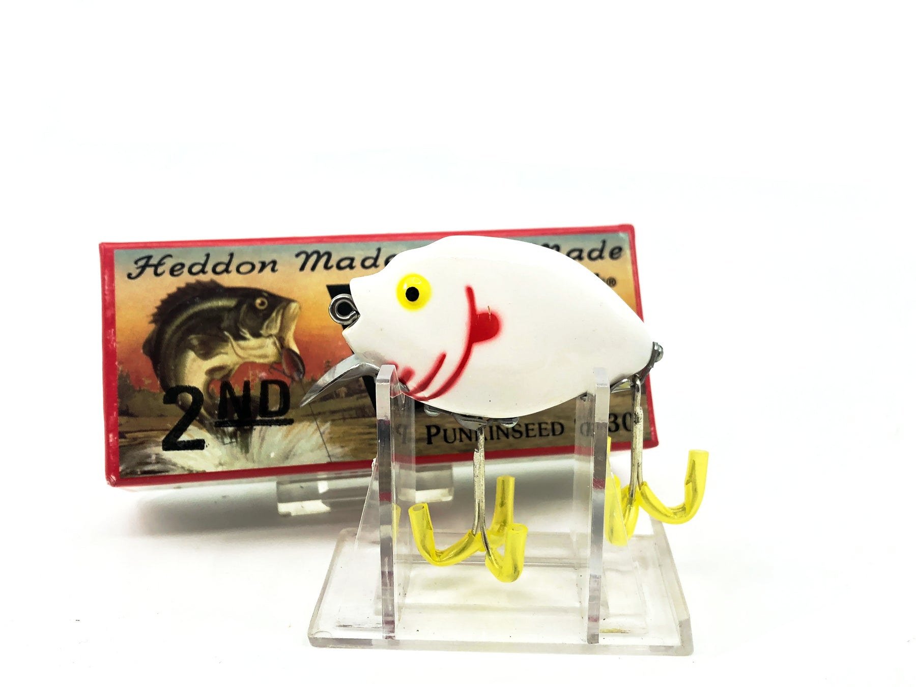 Heddon 9630 2nd Punkinseed X9630WYRG White Color New in Box.  Fantastic lure here.  This is part of the reissued series and is marked 2nd as there is a flaw somewhere.  This lure is mint in the box and makes for an amazing collectible.  Lure has red dot to denote 2nd and box is marked as well. Box has some minor marks from storage. Lures that are marked 2nd are collectible in their own right.