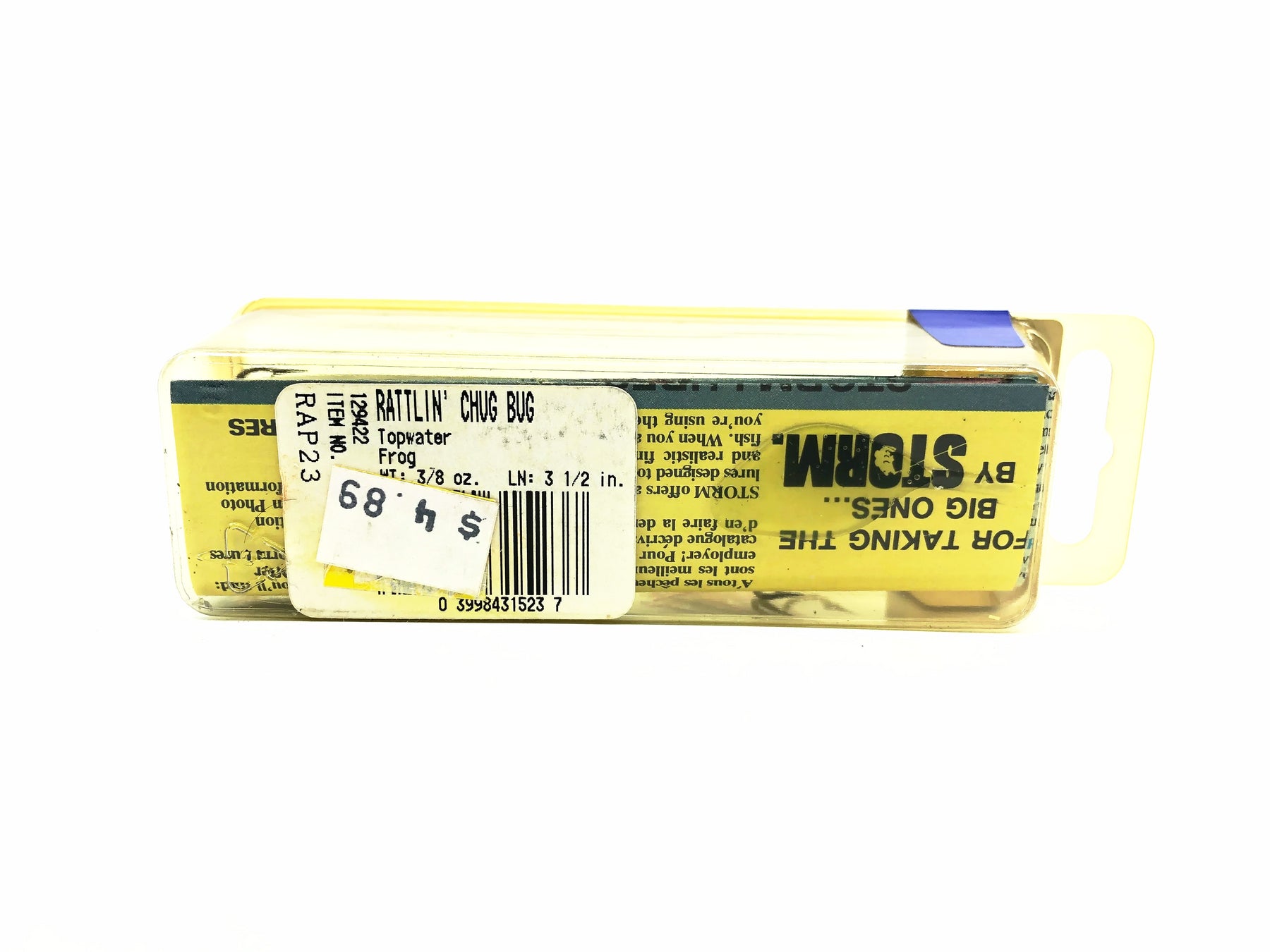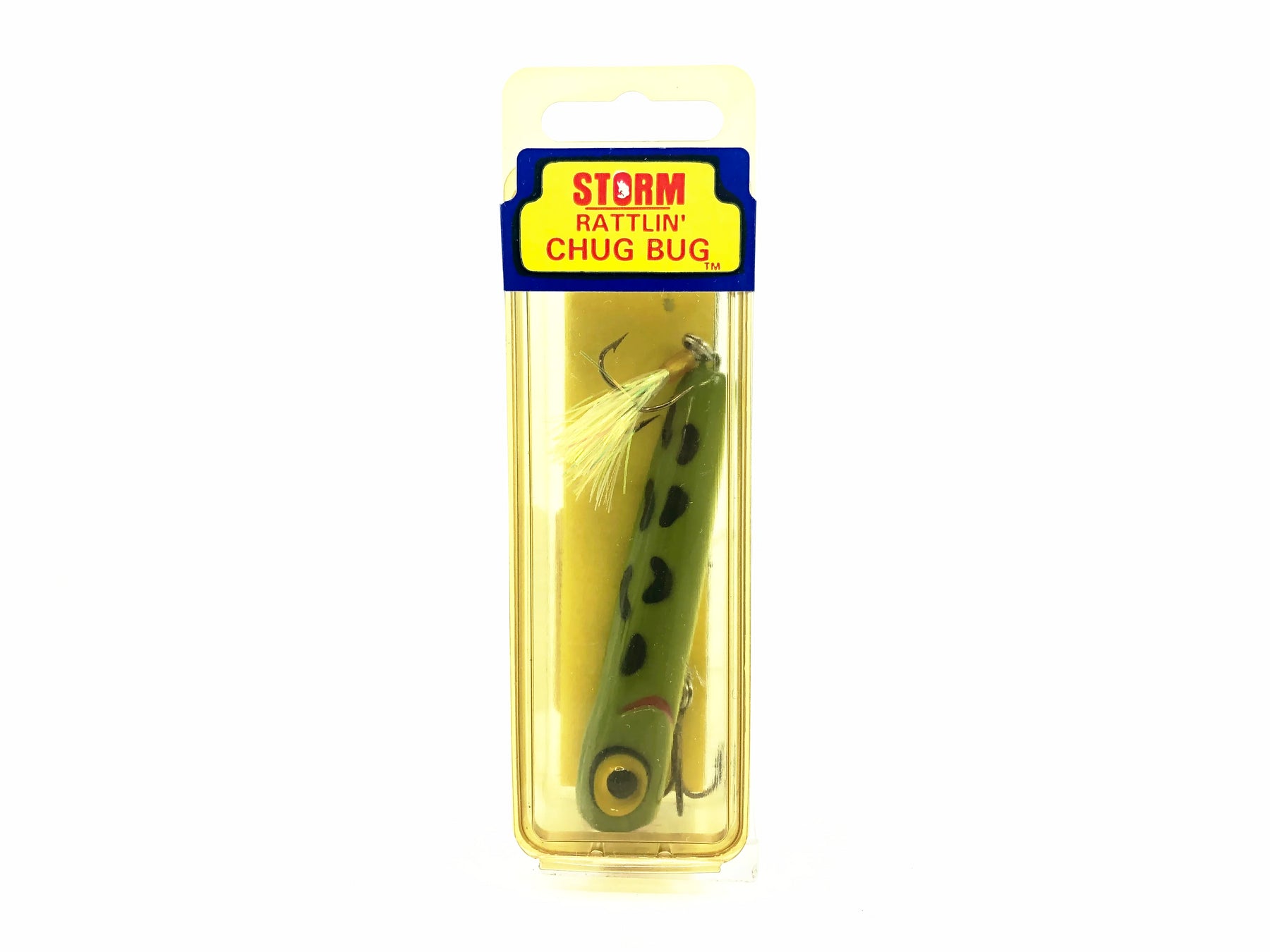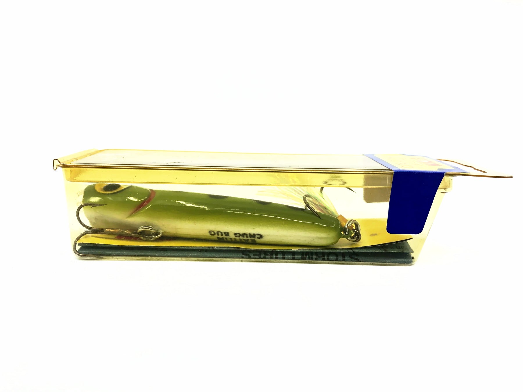 Storm Rattlin' Chug Bug RAP23/#23 Frog/White Belly Color w/Box. Great pre-Rapala lure here. About 3 1/4" long. This bait is new in box and the box is in overall good condition aside from some uv staining. This lure would look great in your collection or tackle box. See photos.
