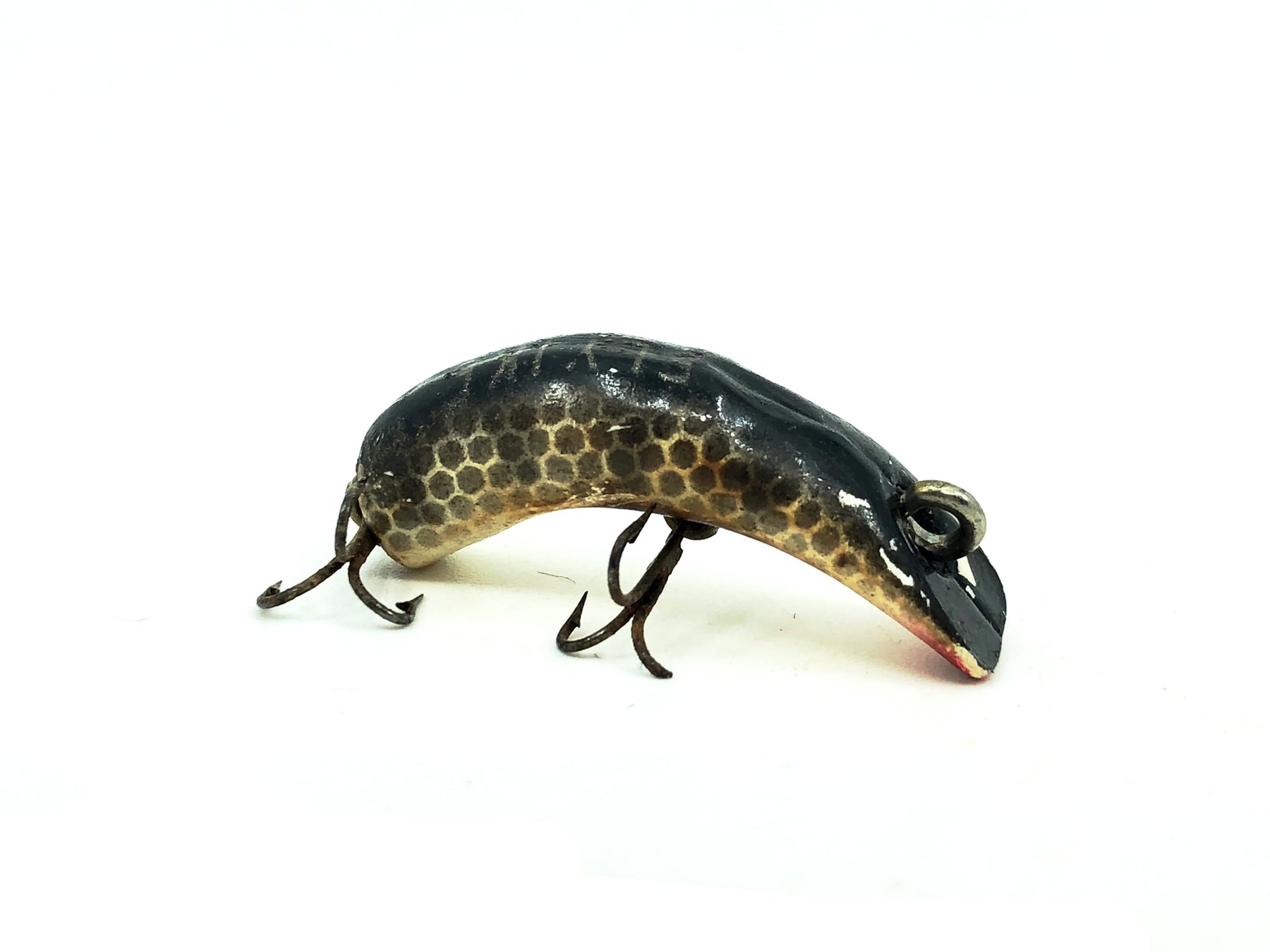 Lazy Ike Fly Ike, BLS Black Scale Color. About 1 1/4" long. Used with some wear and a broken barb but in overall good condition, see photos. One of the all time great lures. Get this vintage bait and go catch some fish or display in your collection.