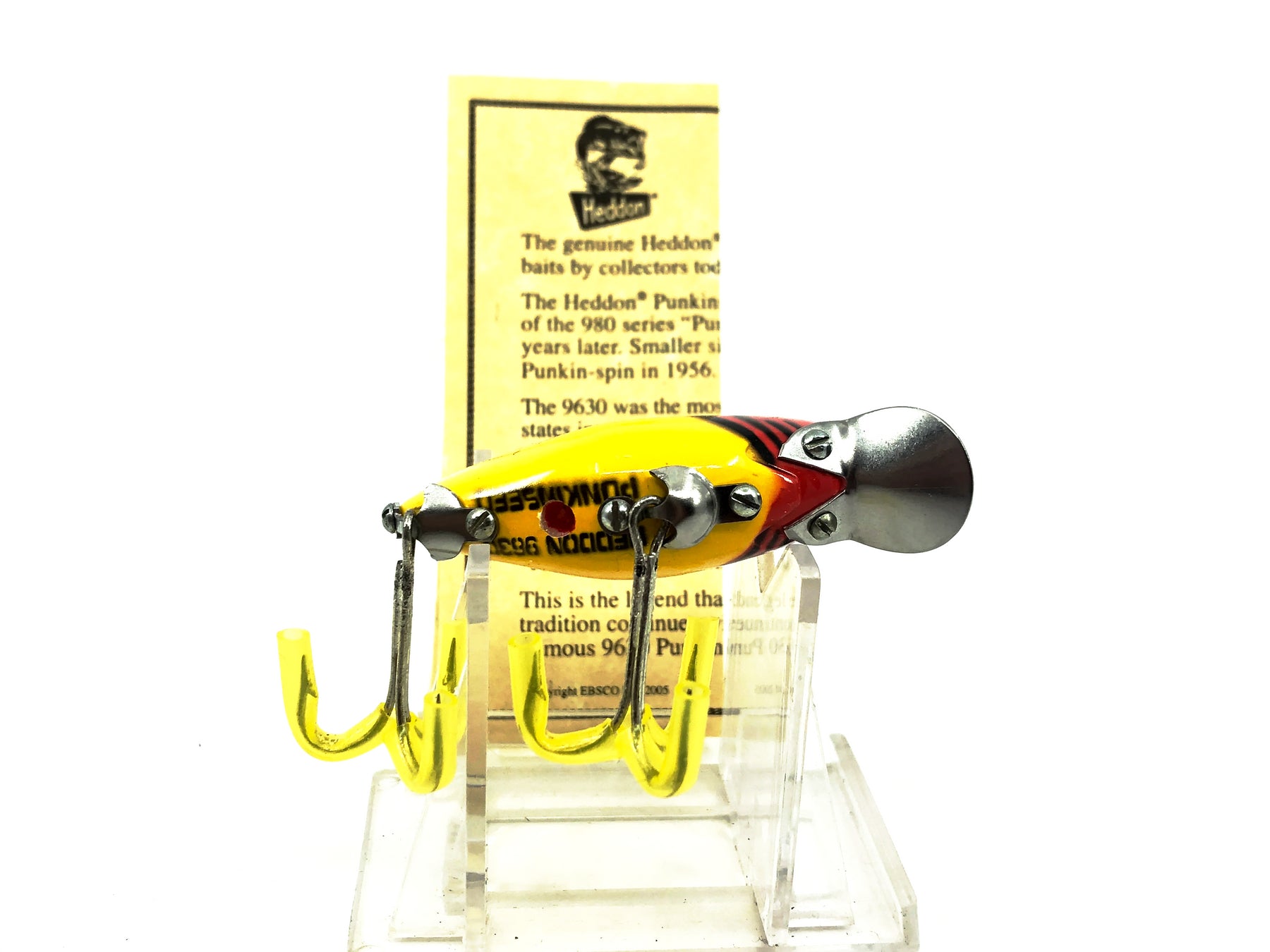 Heddon 9630 2nd Punkinseed X9630YRH Yellow Red Head Color New in Box. Fantastic lure here. This is part of the reissued series and is marked 2nd as there is a flaw somewhere. This lure is mint in the box and makes for an amazing collectible. Lure has red dot to denote 2nd and box is marked as well. Box has some minor marks from storage. Lures that are marked 2nd are collectible in their own right.