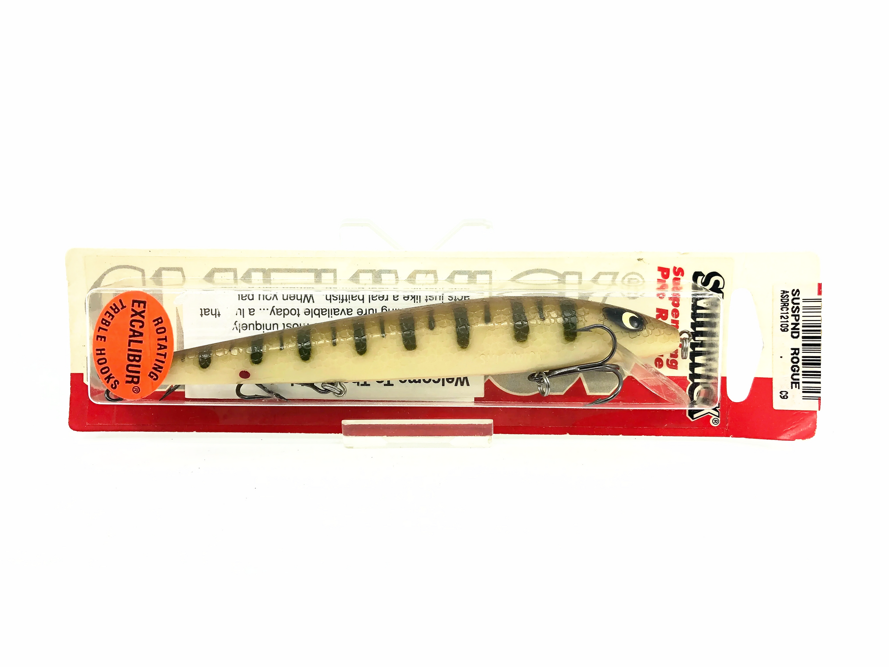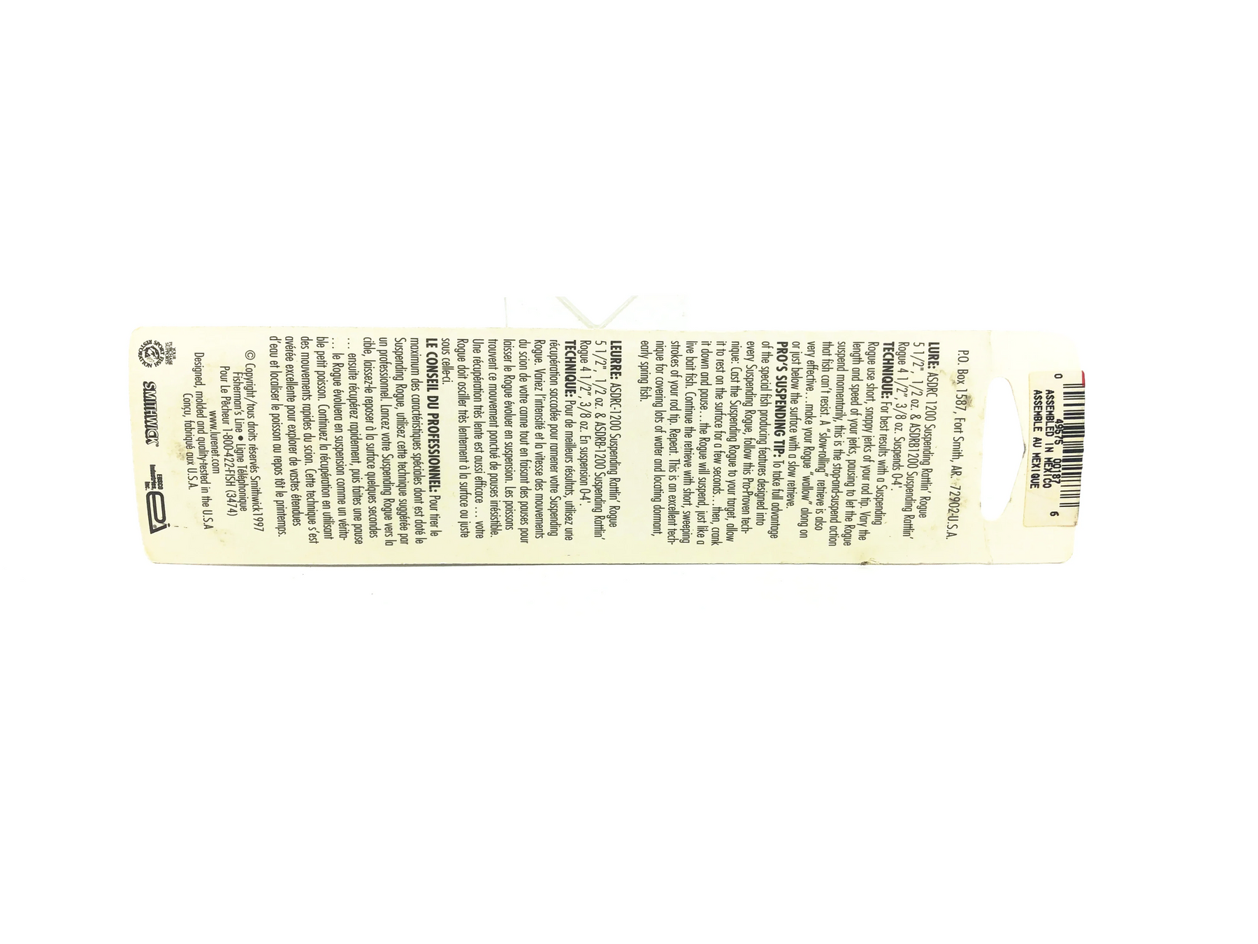 Smithwick Suspending Rogue, Tiger Minnow #109 Color New on Card. Old stock here from around 1997. The card has some minor wear but the lure is in new condition, see photos. Lure is about 5 1/4" long. Great deal here!