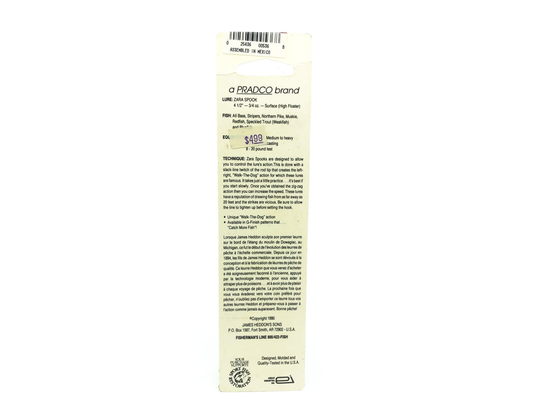 From the famous Heddon Zara family first introduced in 1939, the Zara Spook was the first of Heddon’s “million sellers.” The Zara’s legendary walk-the-dog action has been written about more than any other fishing lure. Whether fish are suspended or working the surface, the distinctive action of the Zara Spook calls them from great distances, prompting explosive strikes every time. Generations of anglers have called the Heddon Zara Spook their “secret” lure. They can count on Spooks, even when fishing gets tough!