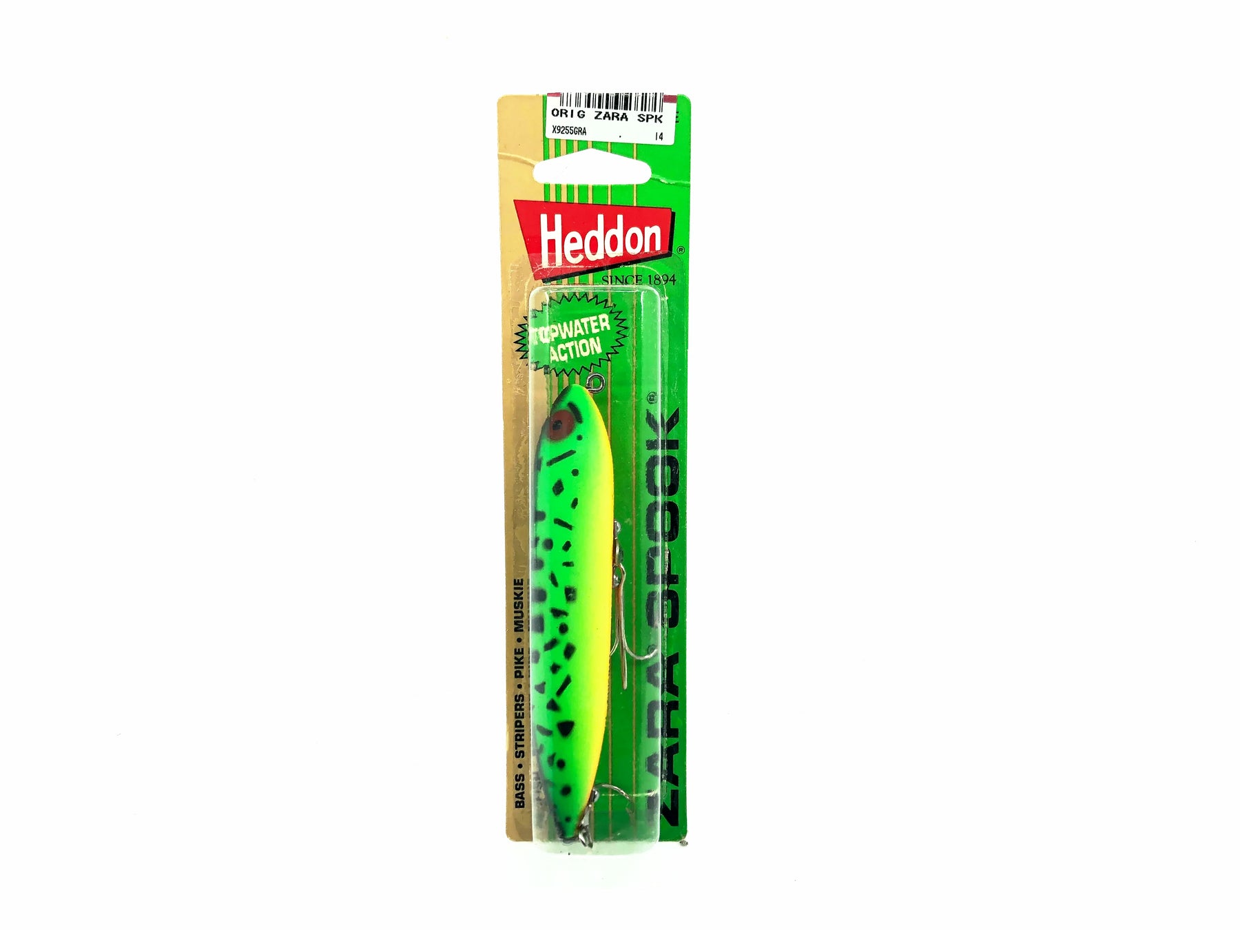 Heddon Original Zara Spook, GRA Fluorescent Green Crawdad Color on Card. This is new old stock from around 1990. Lure is about 4 1/4" long. Lure is new on card. Card is in good condition aside from some minor wear and dents. Great for fishing or add to your collection. See photos.