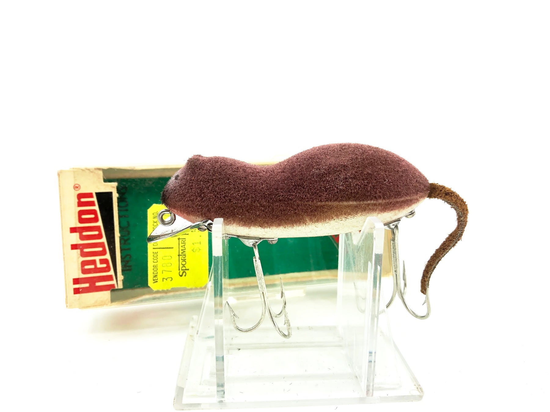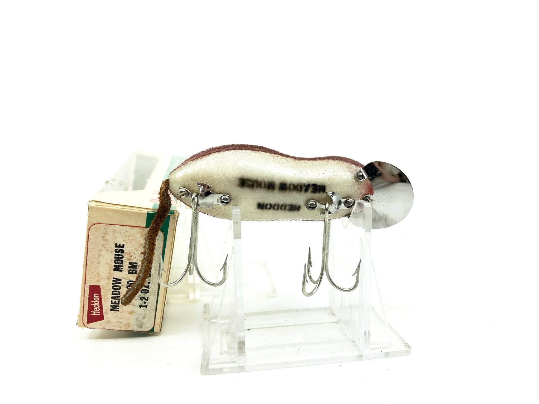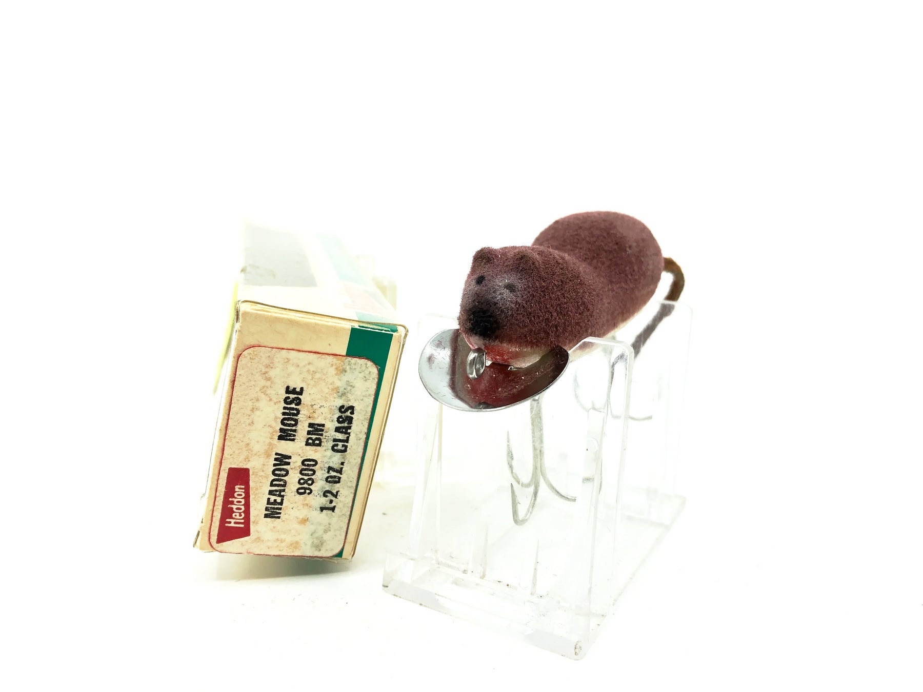Heddon Meadow Mouse with Box 9800, BM Brown Mouse Color on Card. Lure body about 2 3/4" long not including the lip or tail.  Used vintage lure with some minor wear but still overall in great condition. Matching box is also in good condition, see photos.  Fish or collect you can't go wrong with a vintage Heddon bait.
