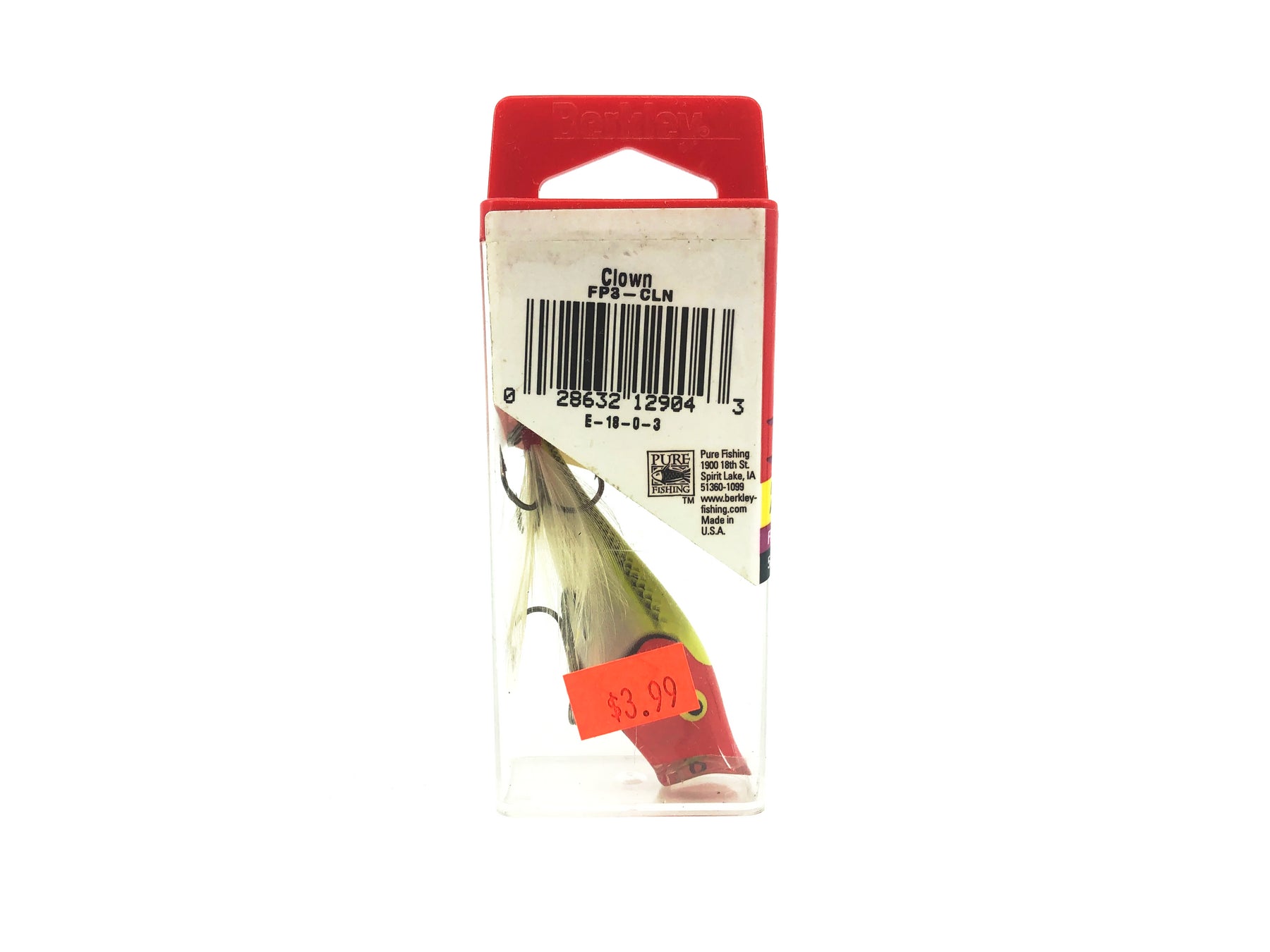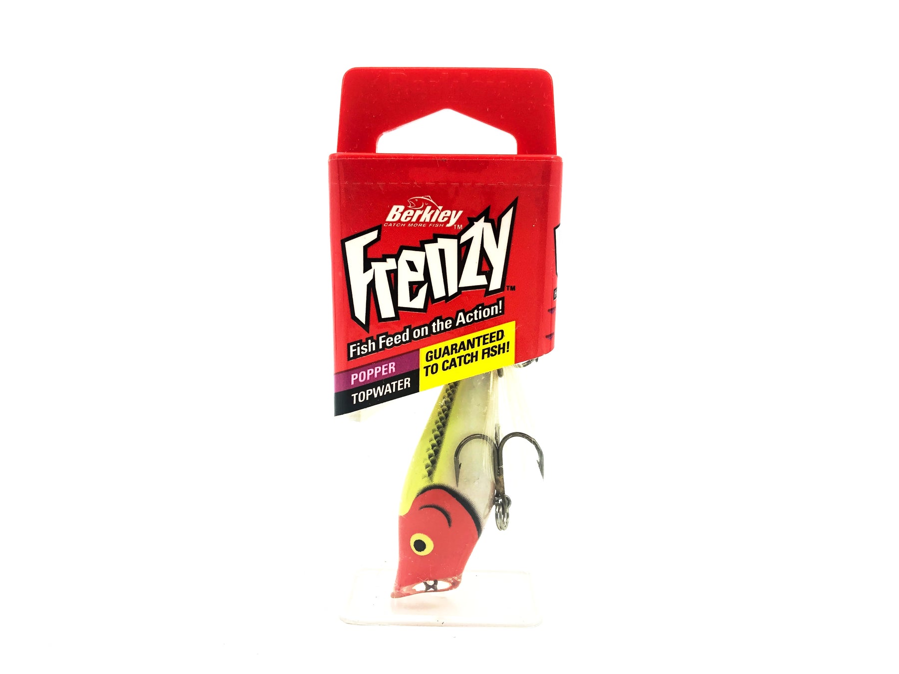 Berkley Frenzy Popper, Clown Color New w/Box. This Frenzy is about 2 3/4" long and weighs 5/16oz. Box is in good shape. The lure is new inside. This discontinued lure will provide you with a quality cast and plenty of noise to attract your next catch.