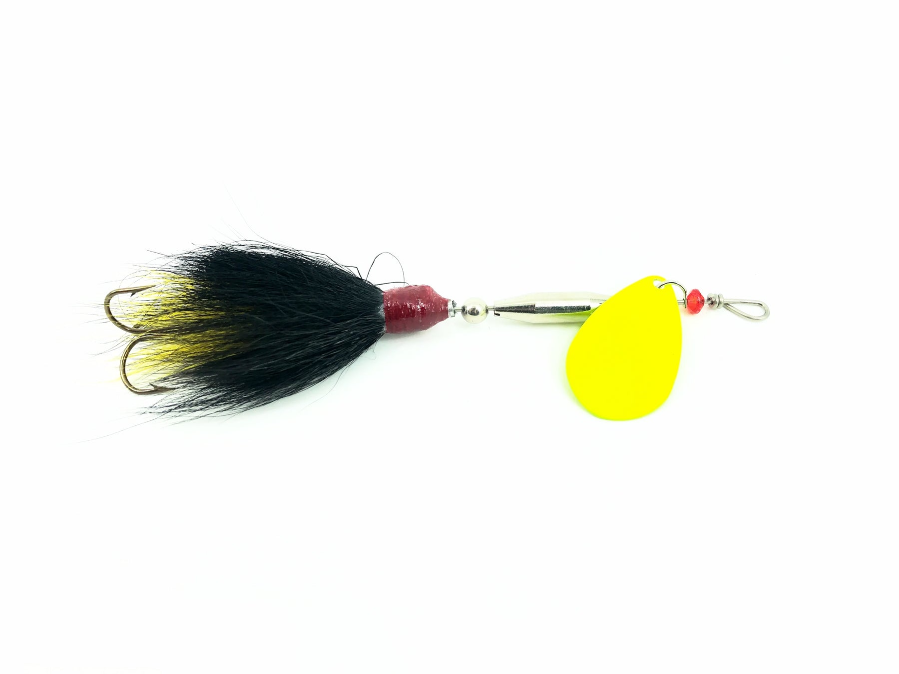 Pike Bucktail Spinner, Yellow Blade/Black & Yellow Tail Color. Great spinner here from an unknown maker. Lure is about 5 7/8" long from hook to body and weighs 0.4oz. Lure is used but is in great condition. Fish this deal!