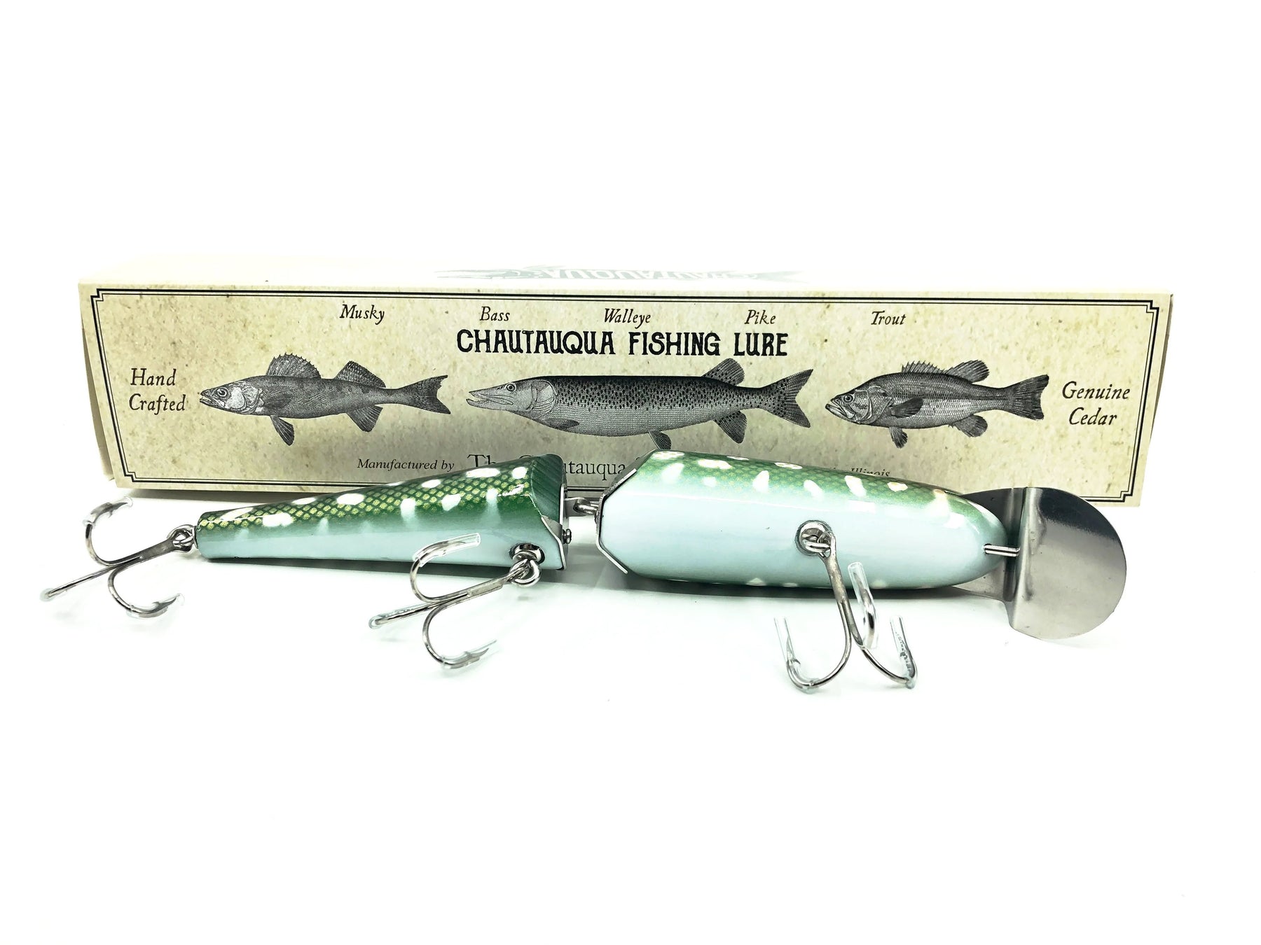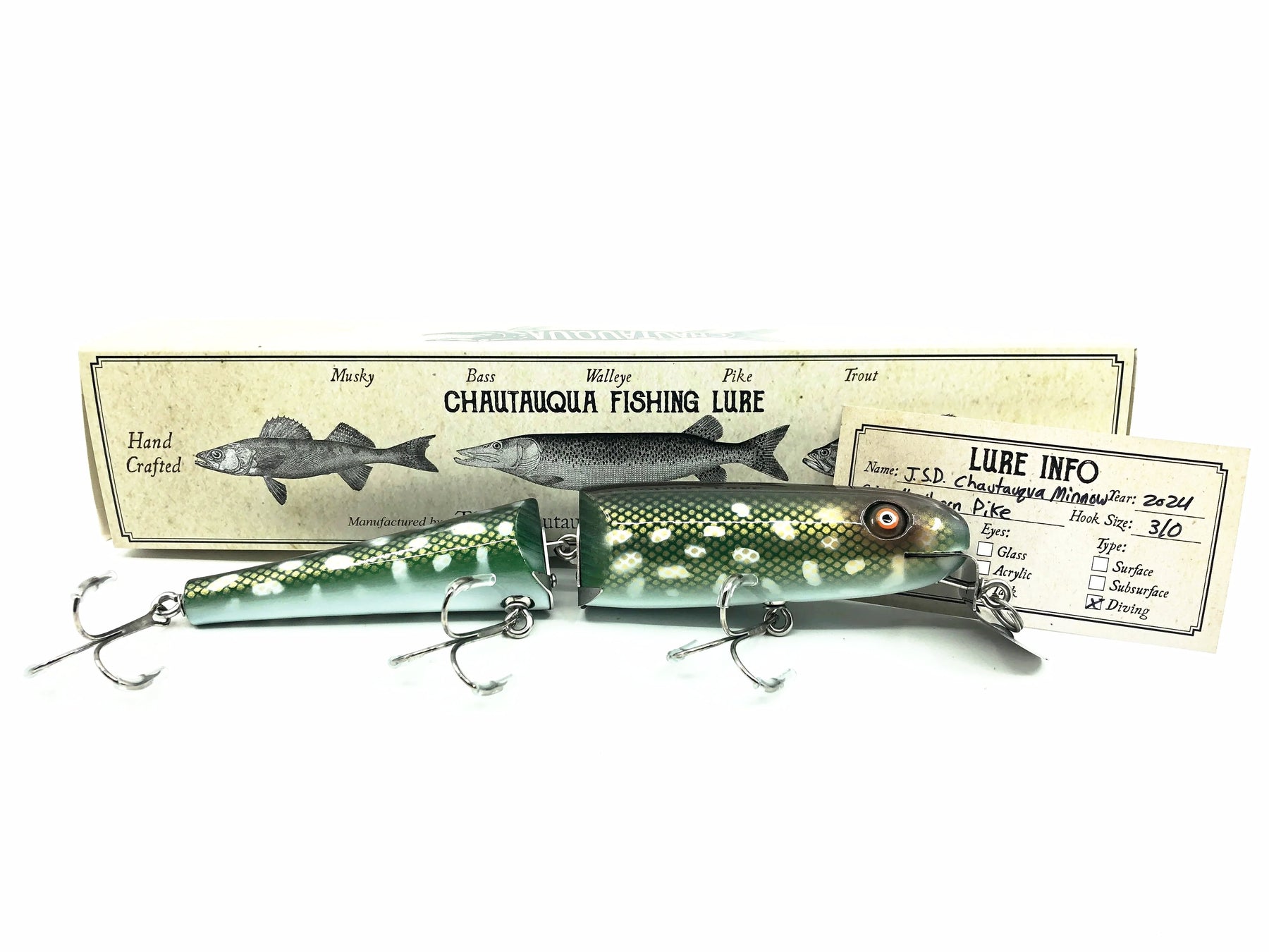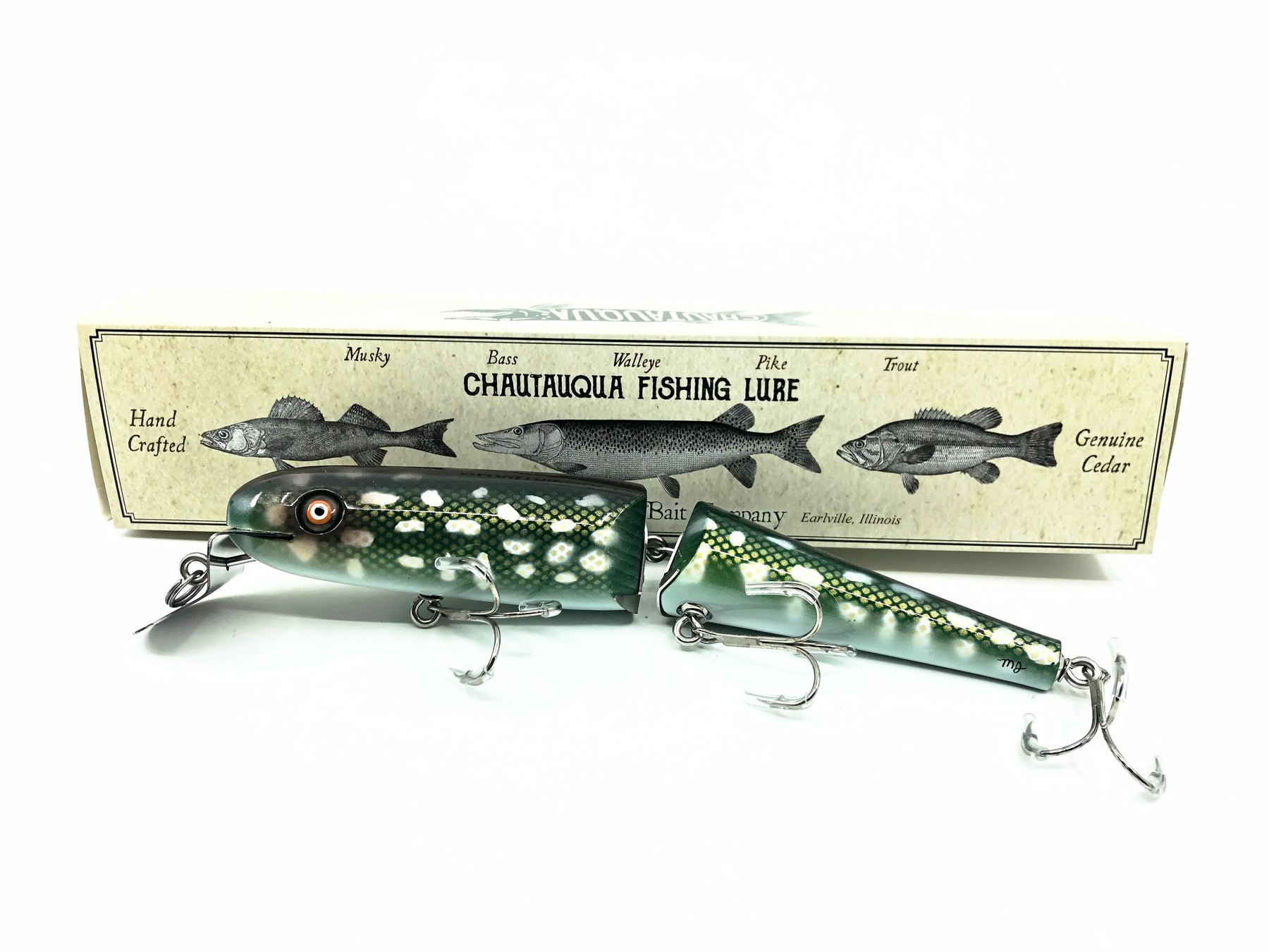 Jointed Chautauqua 8" Shallow Diver, Northern Pike Color. Get this very special bait and add to your collection or better yet take fishing! That's what it was made for!