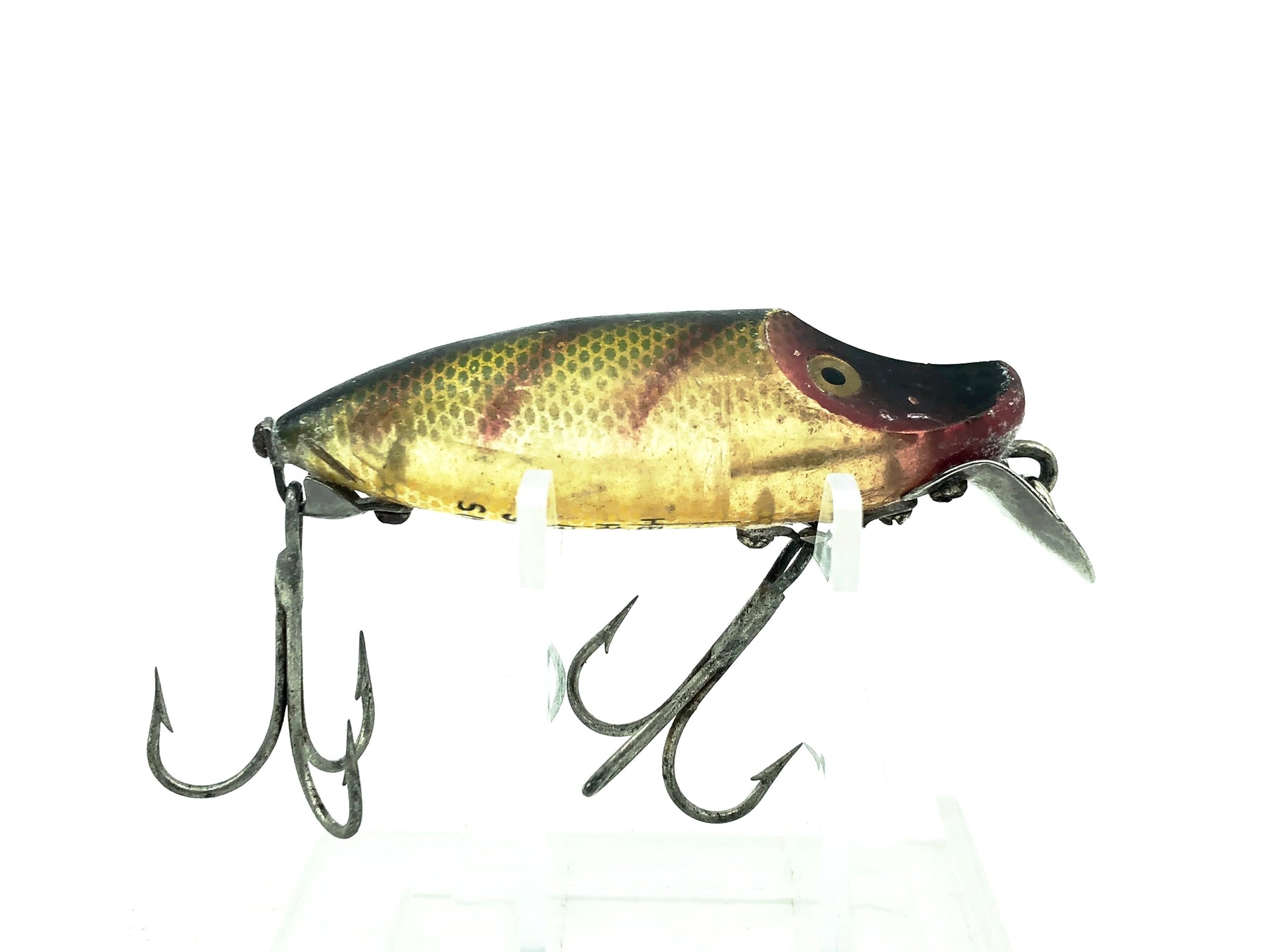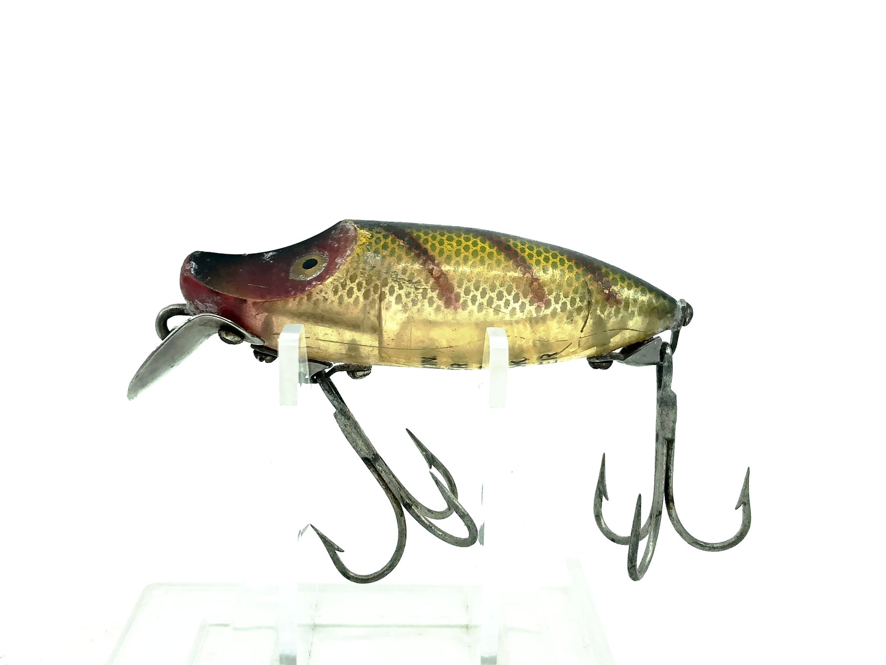 Heddon River Runt Sinker Spook 9110, L Perch Color. About 2 5/8" long. Used lure with some wear and markings but in overall ok condition. See photos. One of the most iconic fishing lures of all time. Collect or fish you can't go wrong with a Heddon River Runt.