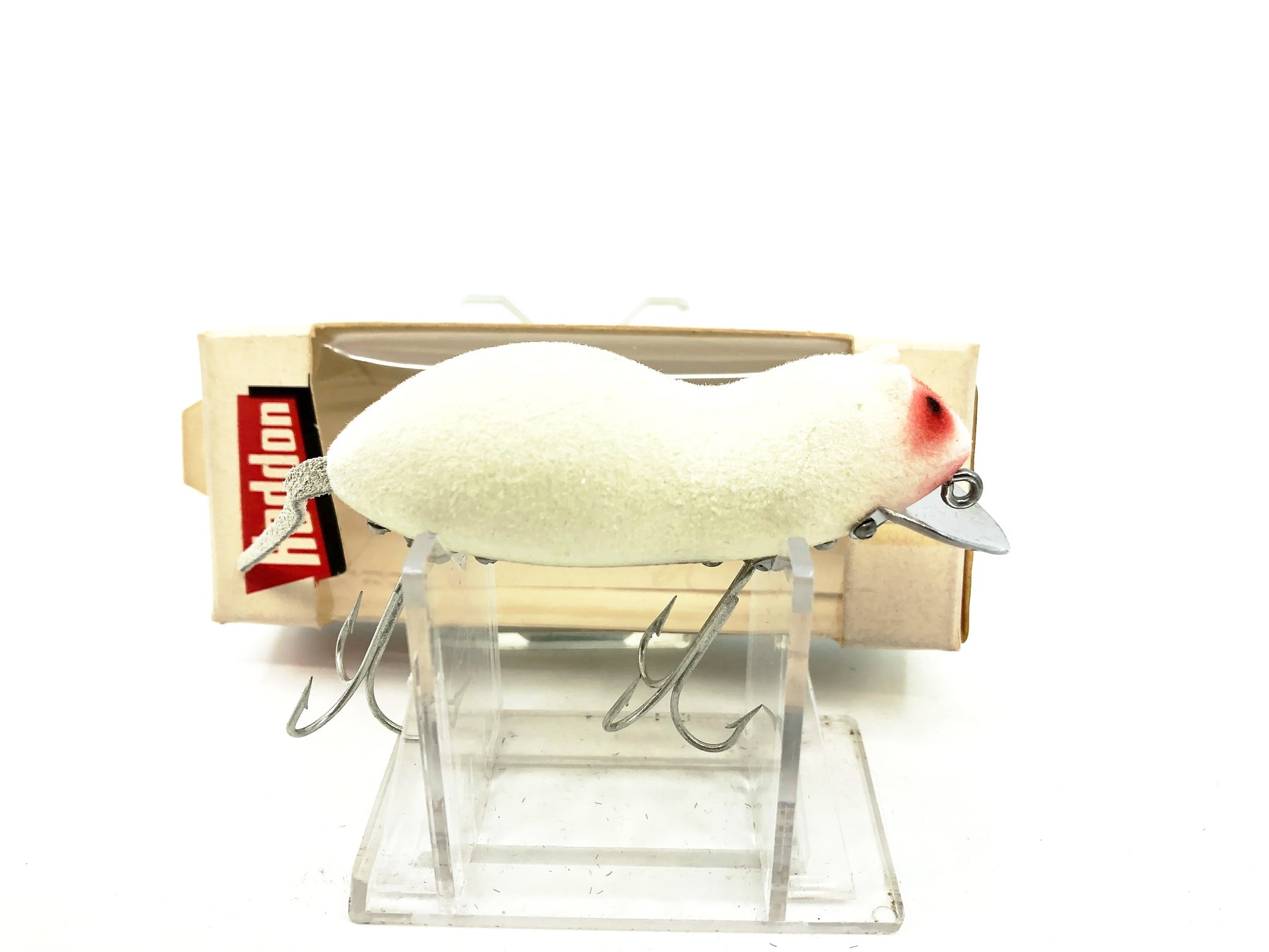 Heddon Meadow Mouse with Box 9800, WM White Mouse Color on Card. Lure body about 2 3/4" long not including the lip or tail. Used vintage lure with some minor wear but still overall in great condition. Matching box is also in good condition, see photos. Fish or collect you can't go wrong with a vintage Heddon bait.