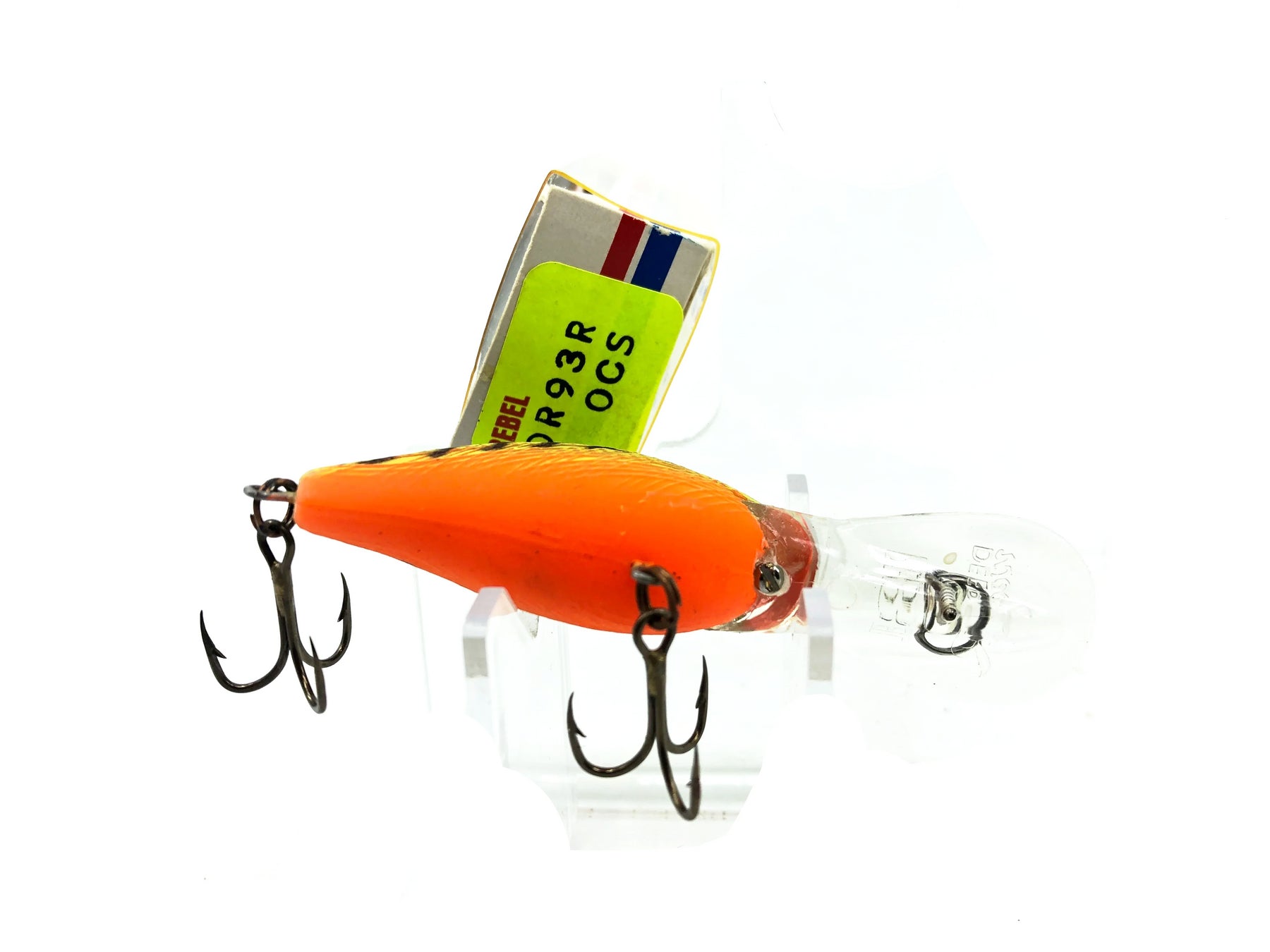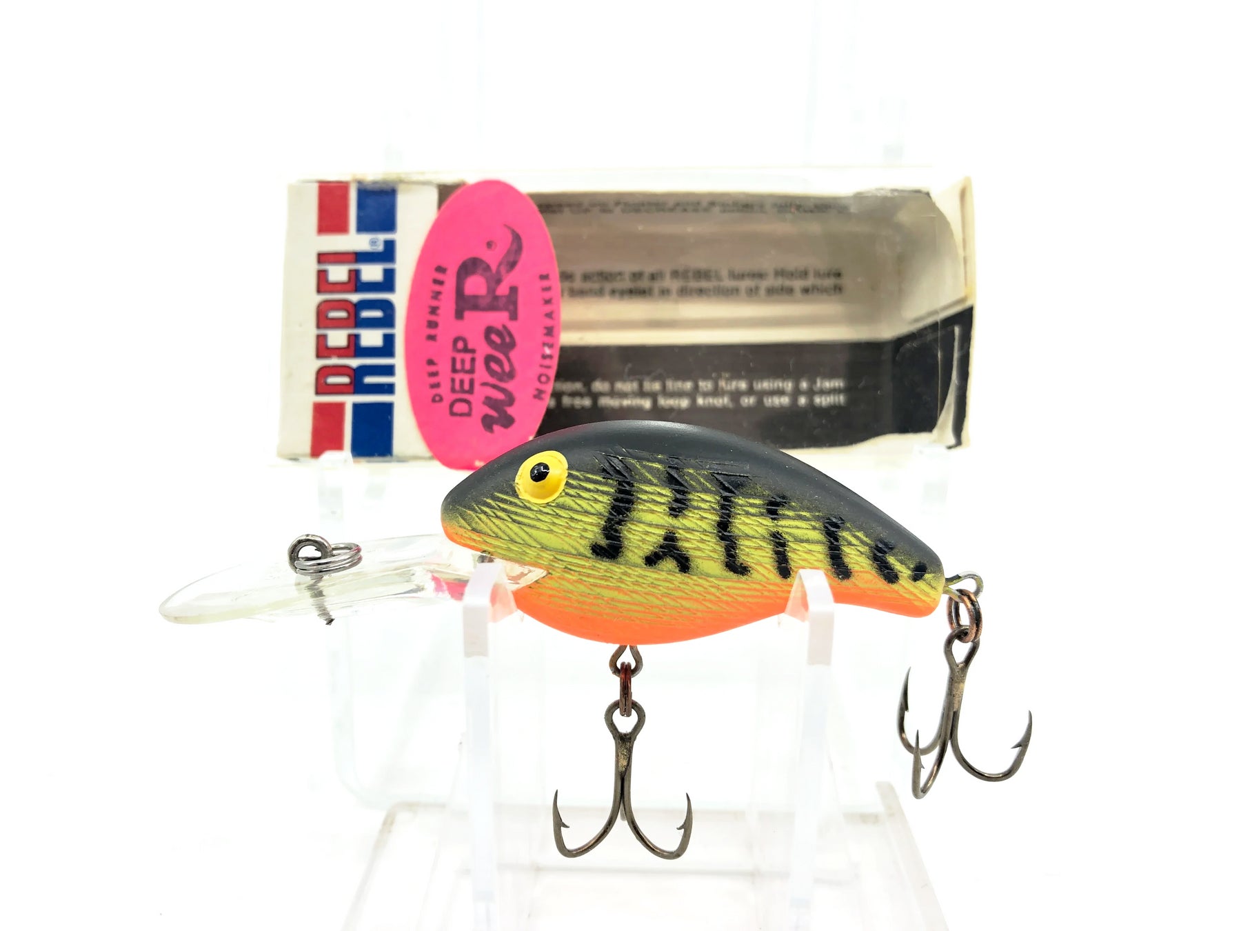Rebel Deep Wee R, OCS Chartreuse/Black Stripes/Orange Belly Color w/Box. About 2" long body excluding lip. This bait is used but appears to have never been fished before and is in overall great condition. Vintage box is in great condition. Sought after by fisherman and collectors. Great this vintage Rebel while it lasts.