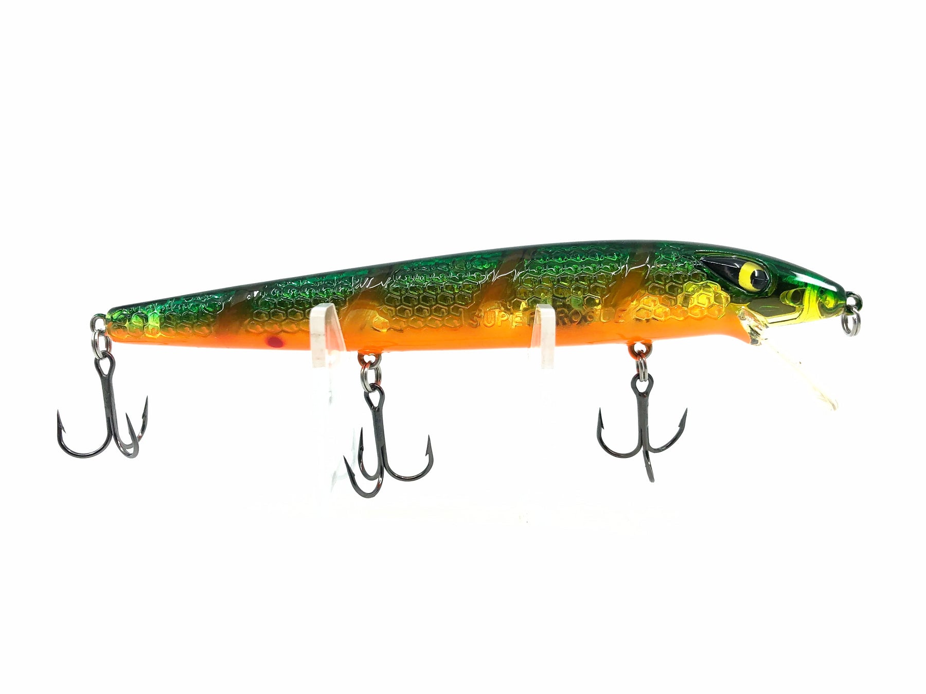 Smithwick Super Rogue, Laser Perch #123 Color. Lure is used but with very minor wear and in overall great condition, see photos. Lure is about 5 1/8" long. Great deal here!