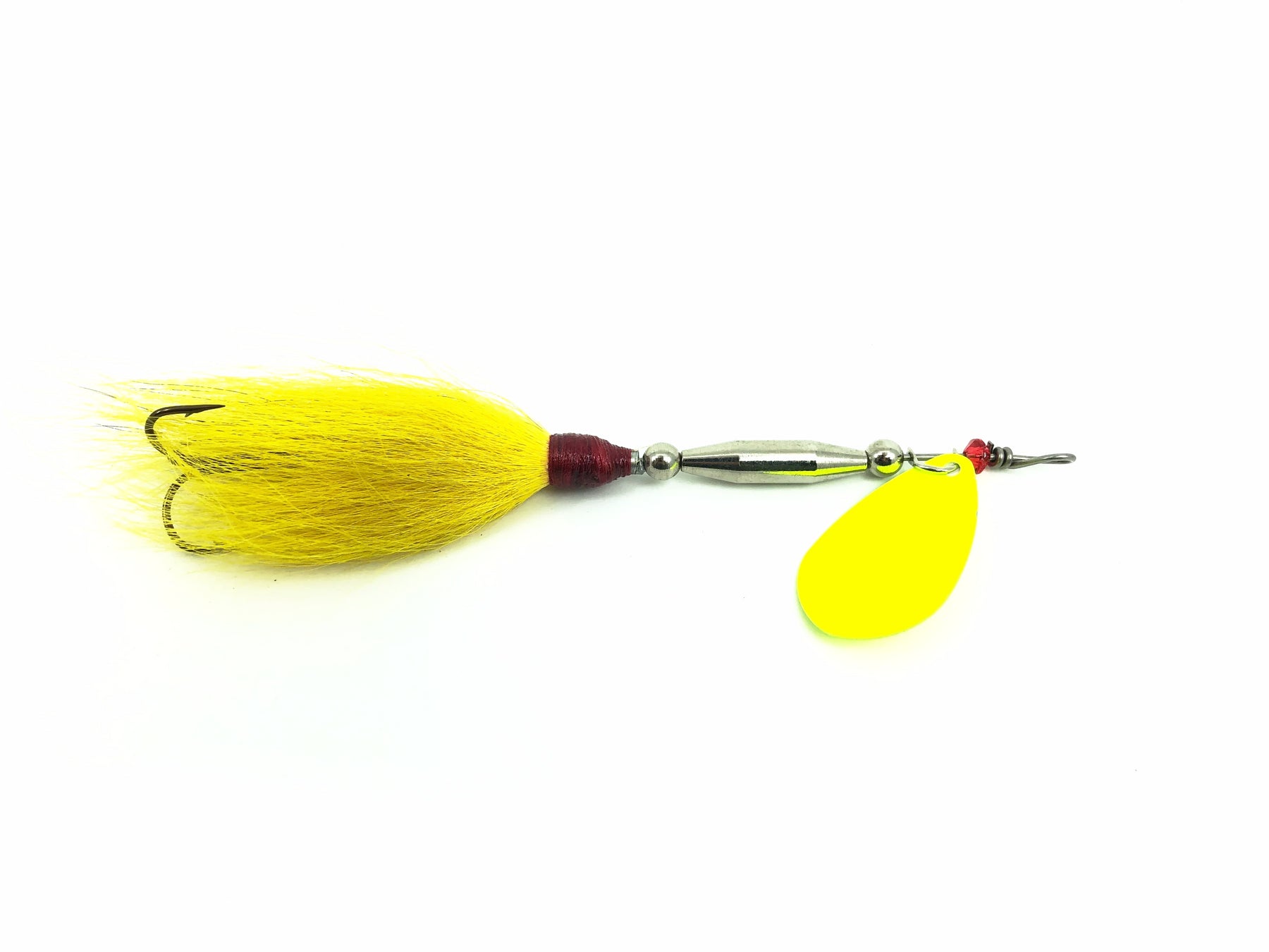 Pike Bucktail Spinner, Yellow Blade & Tail Color. Great spinner here from an unknown maker. Lure is about 5 1/2" long from hook to body and weighs about 0.6oz. Lure is used but is in great condition. Fish this deal!