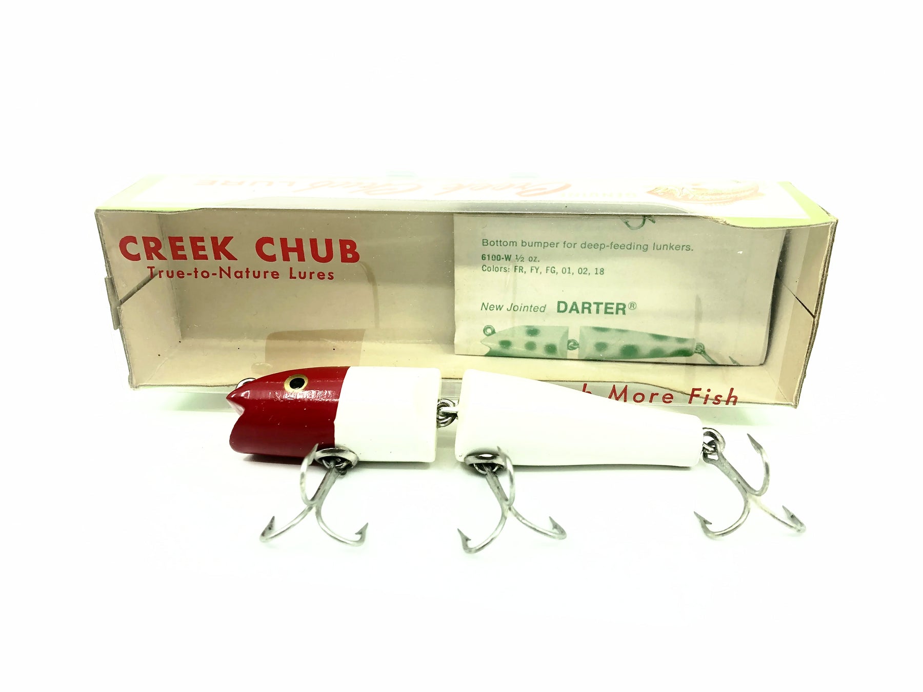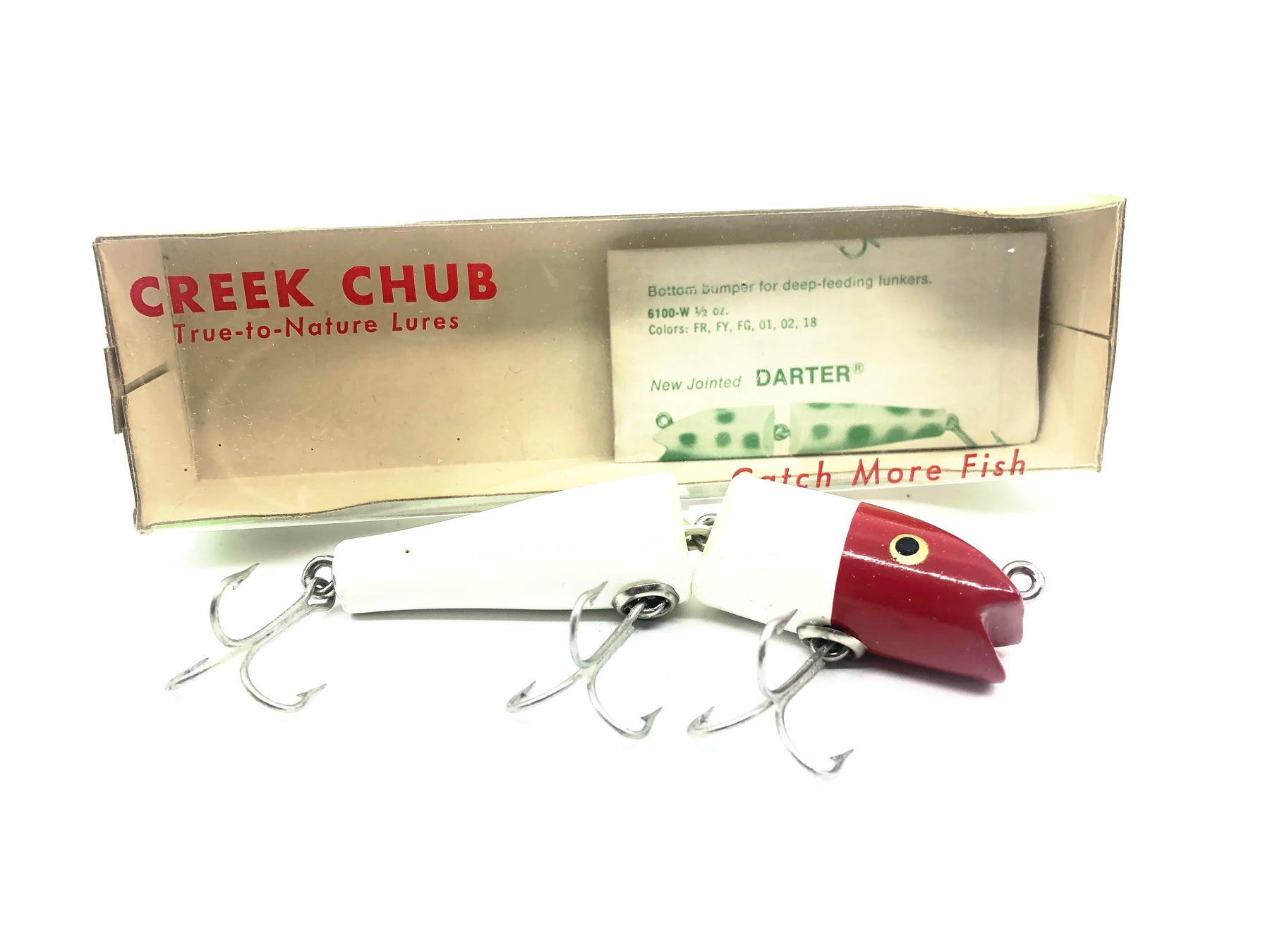 Creek Chub 4900, Red Head & White Color 4902W w/Box. Newer vintage Creek Chub.  About 4" long. Matching box and paperwork are in good condition with minor wear. Lure is vintage and in unfished condition.  See photos.  Fish or collect you can't go wrong with a vintage Creek Chub.  Made for over 50 years for a reason!