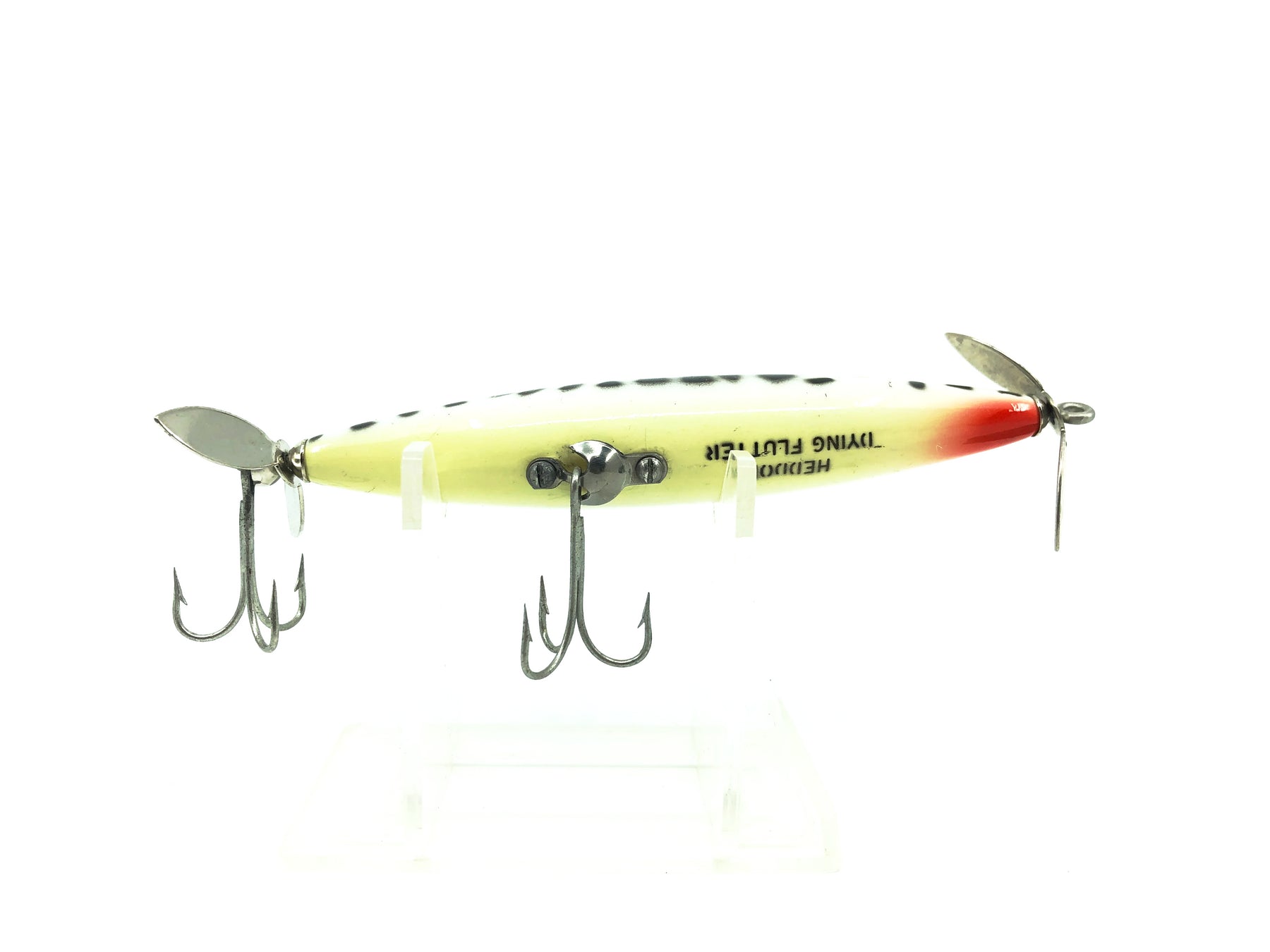 Heddon Dying Flutter, CD Coachdog Color. Classic Heddon lure here. At about 3 3/4" long body. Lure is used but in great condition. See photos. One of the most beautiful and collected Heddon colors.