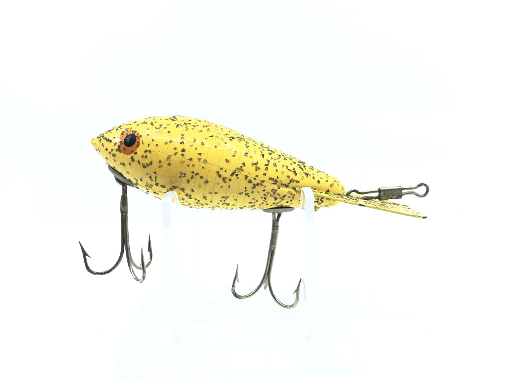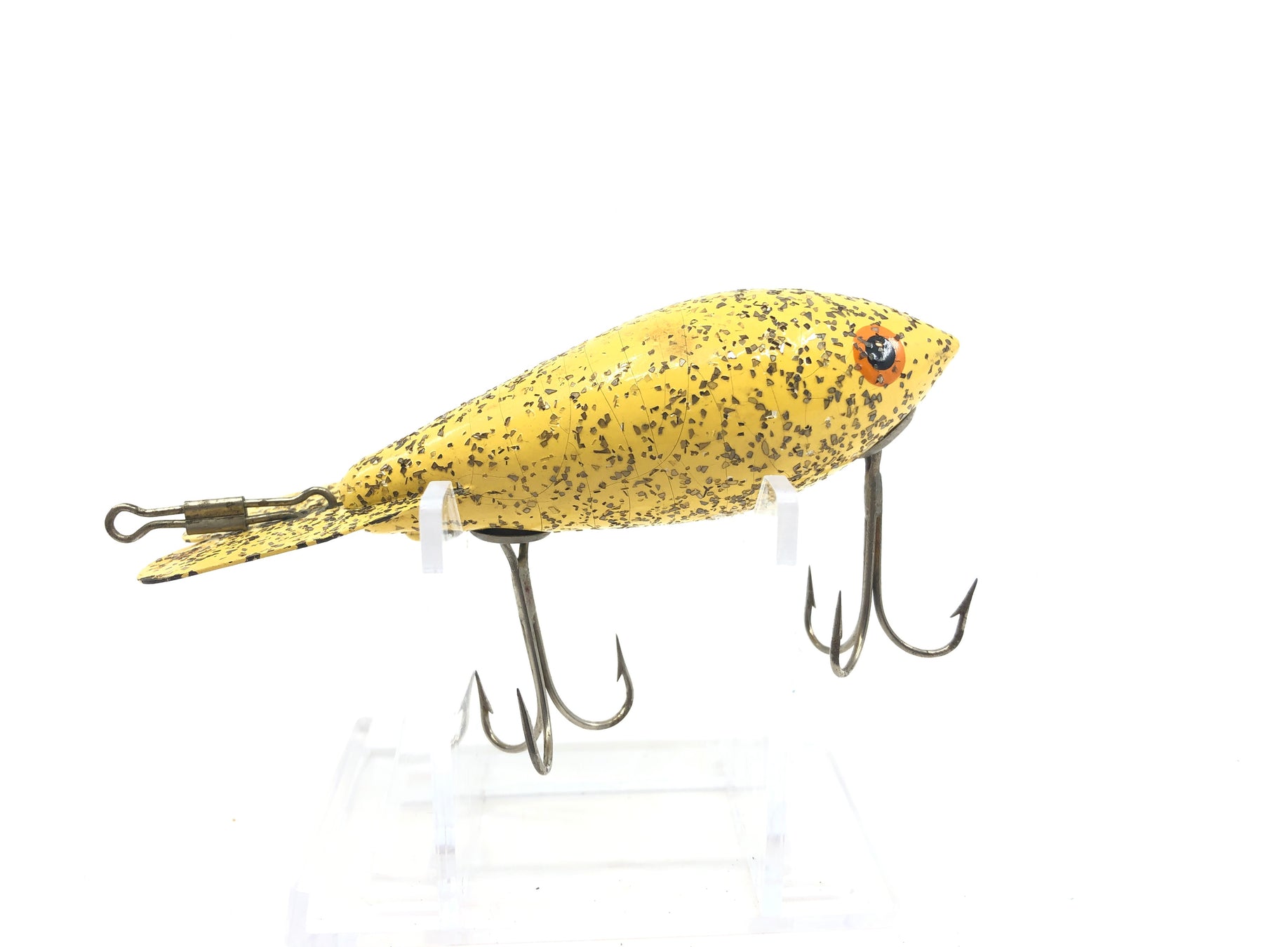 Vintage Wooden Bomber 519 Yellow Silver Flakes Color. About 3 1/2" long. Vintage lure in good shape, see photos. One of the greatest bass lures ever made. Fish or collect. Tougher color to find.
