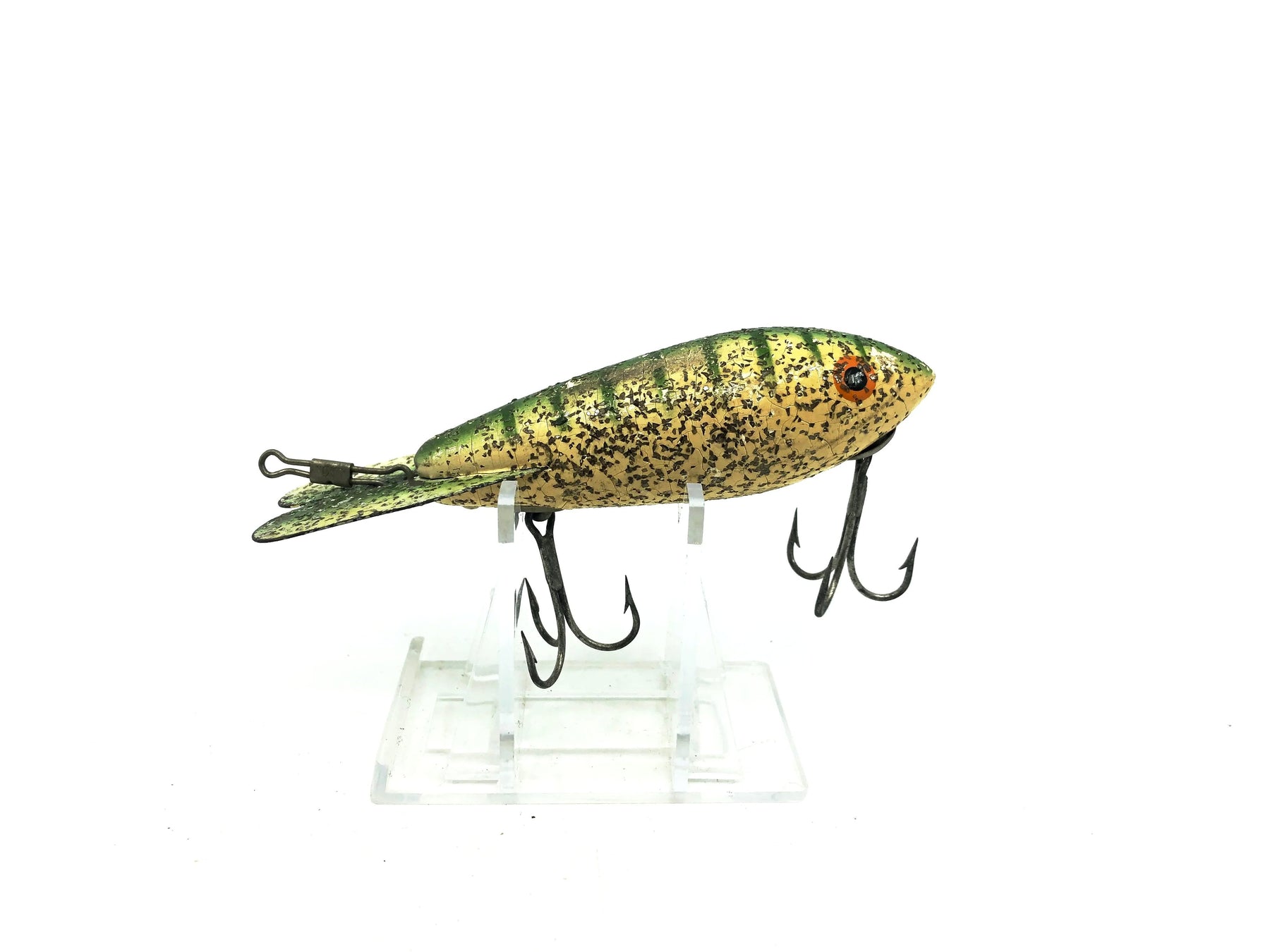 Wooden Bomber 600 Series, #15 Christmas Tree Color. At about 4" long this larger Bomber is in good condition with only minor of wear. Classic lure that isn't made anymore in a one of Bombers most iconic colors. See photos.