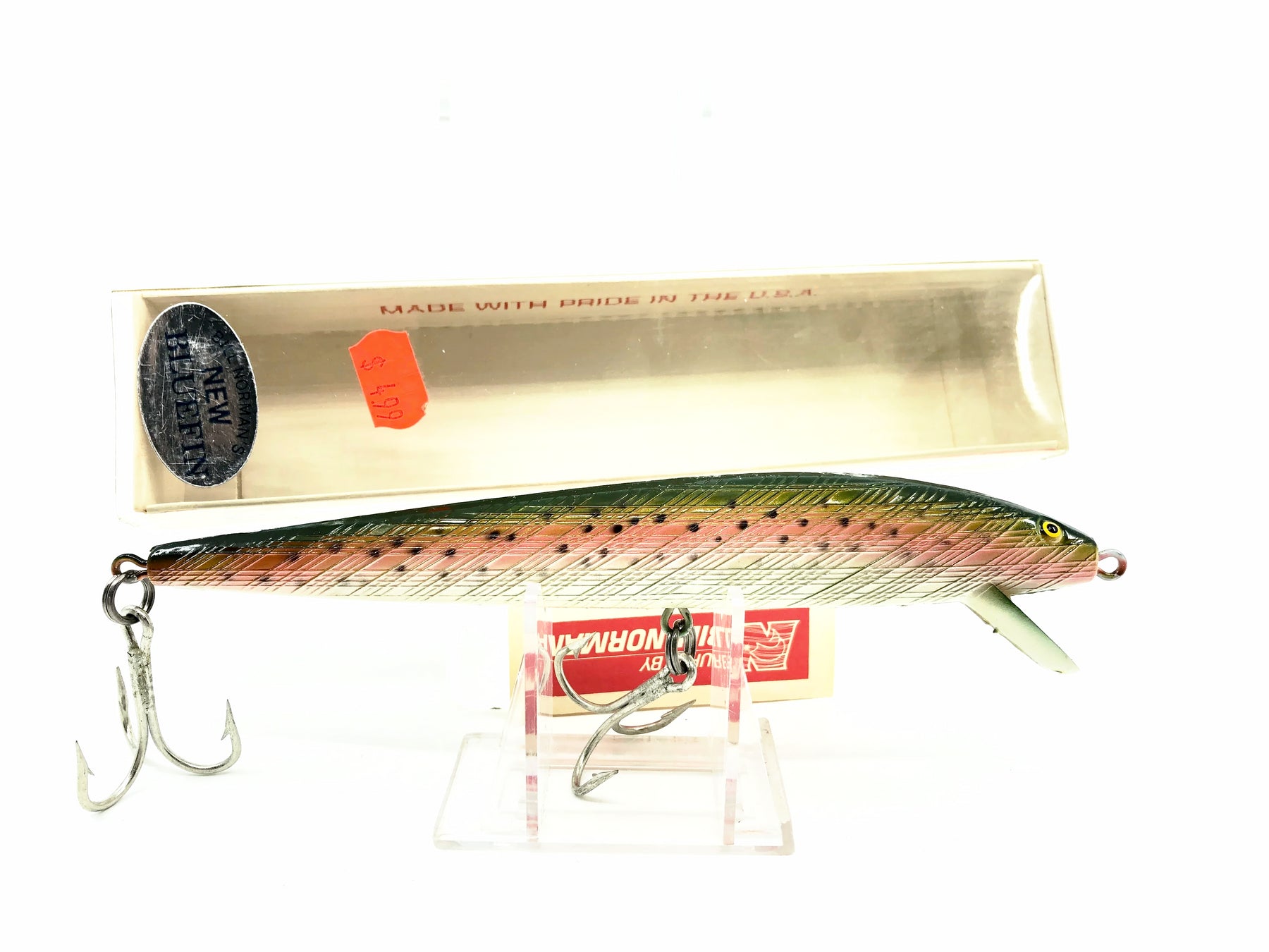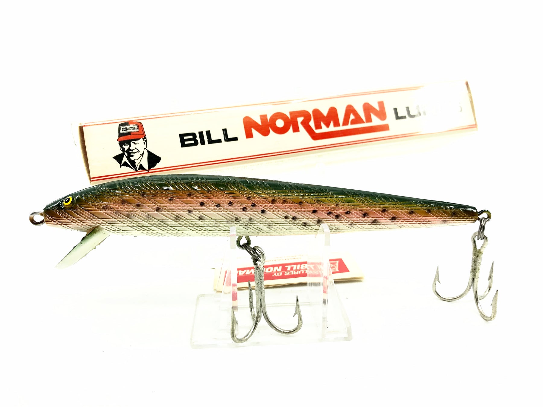 Bill Norman Bluefin, Rainbow Trout Color w/Box. Great combo here. Box has some minor wear but in otherwise good condition. Lure is in new like condition. Lure is about 7" long including lip. Fish or collect. See photos.