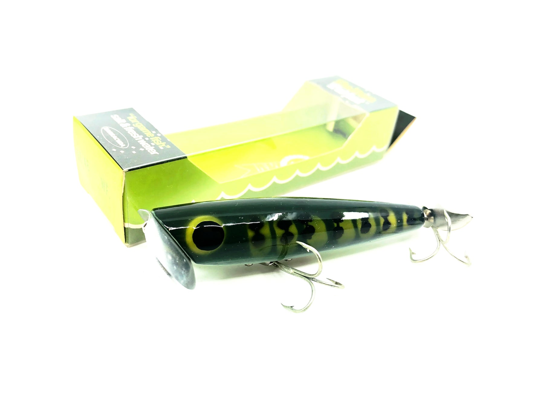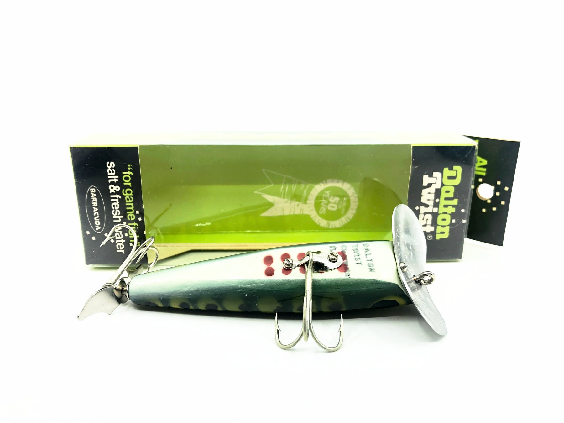Barracuda Florida Fishing Tackle Mfg. Co. Dalton Twist 46, WF Frog/White Belly Color w/Box. About 3 5/8" long body. This bait is in new like condition and the box is in good condition as well. Popular lure among both fishermen and collectors. See photos.