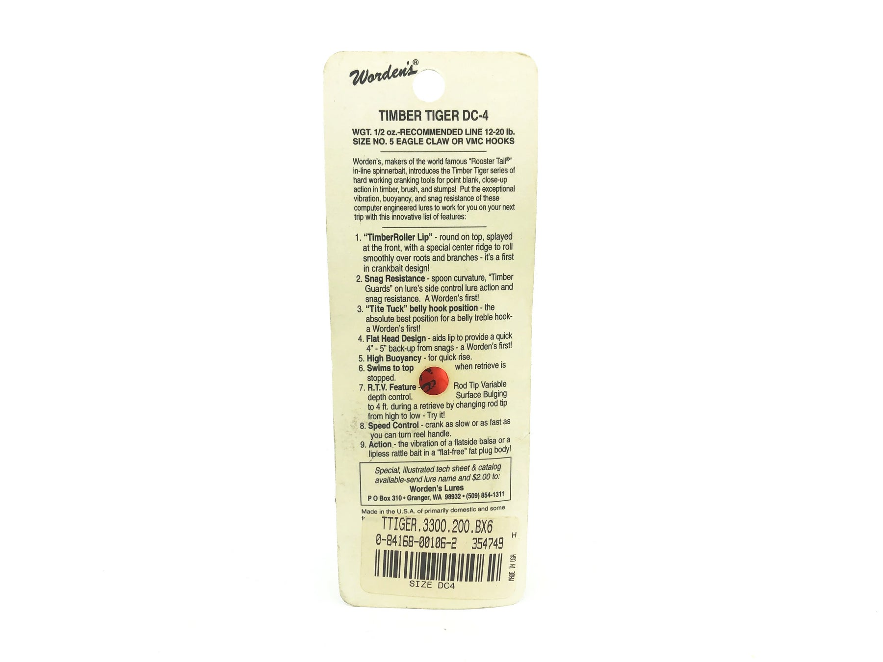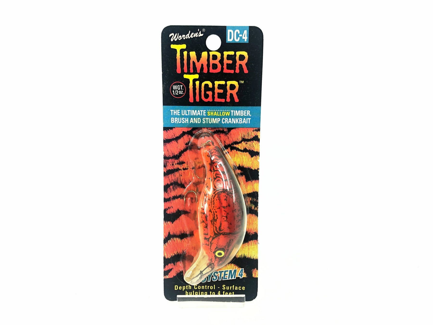 Timber Tiger Deflector DC-4, #200 Red Crawdad Color on Card. Discontinued old stock here. SKU for this lure is 3300-200. Body is about 2 1/2" long. Lure is new on card and the card is in good condition.