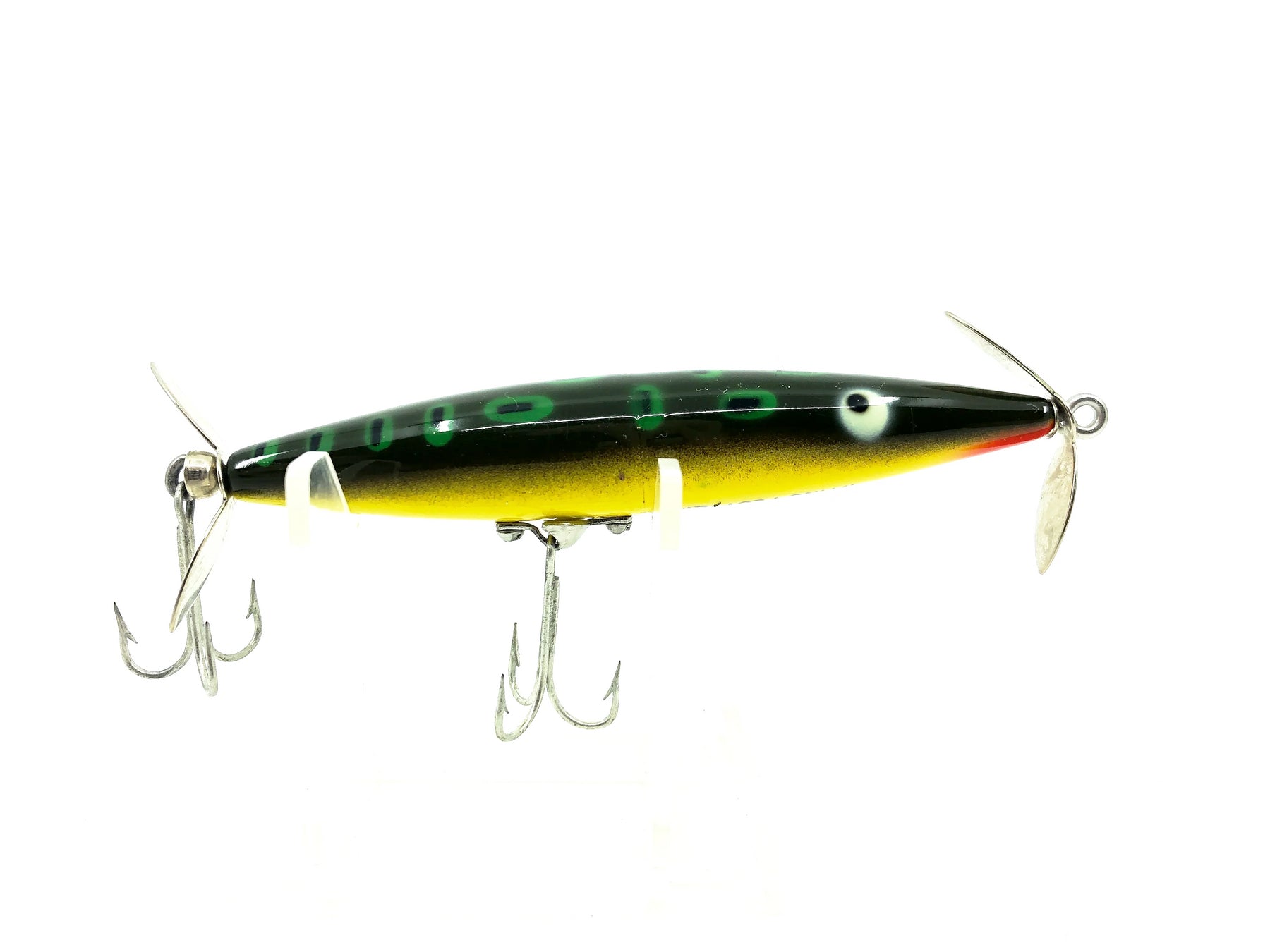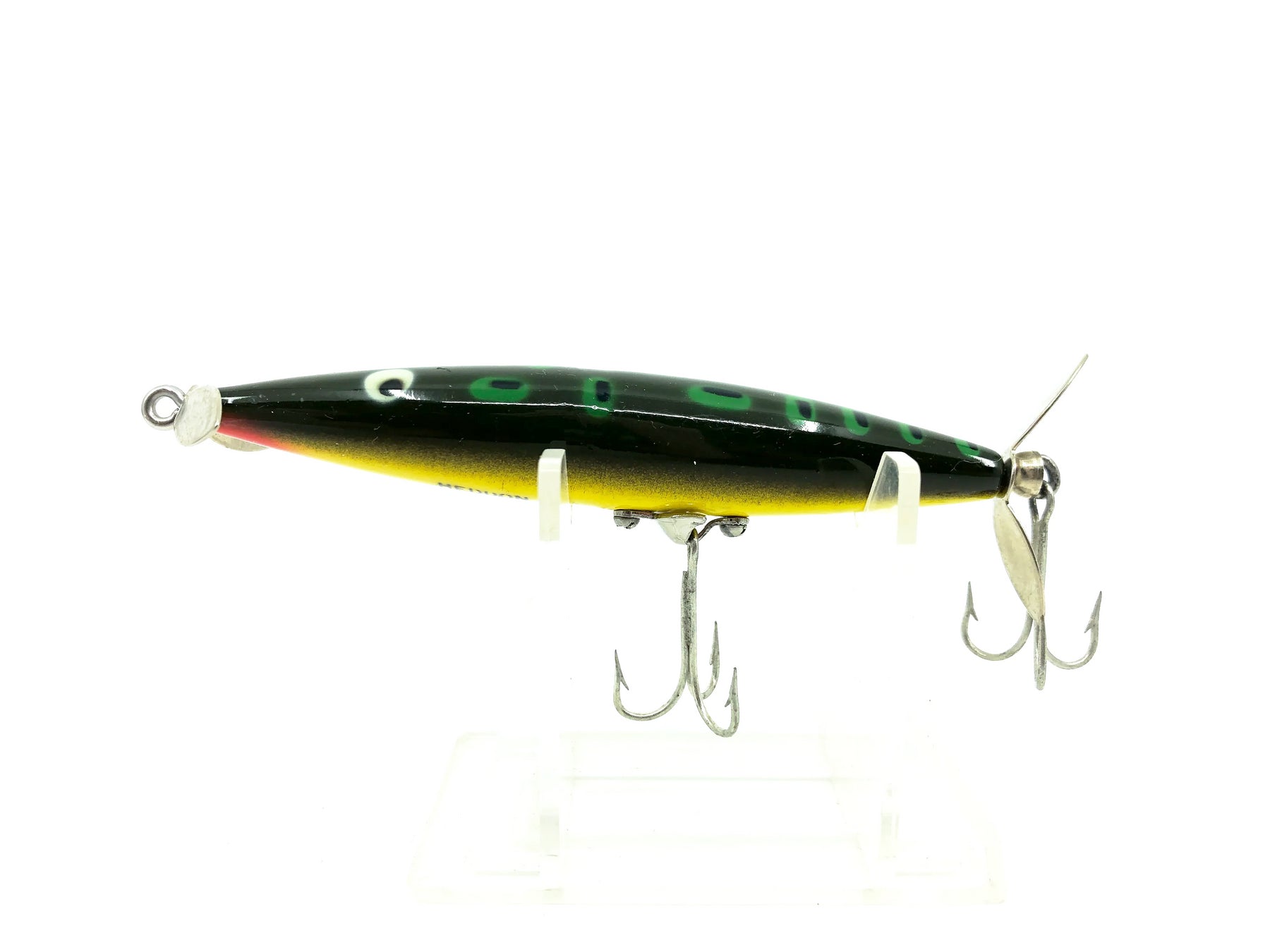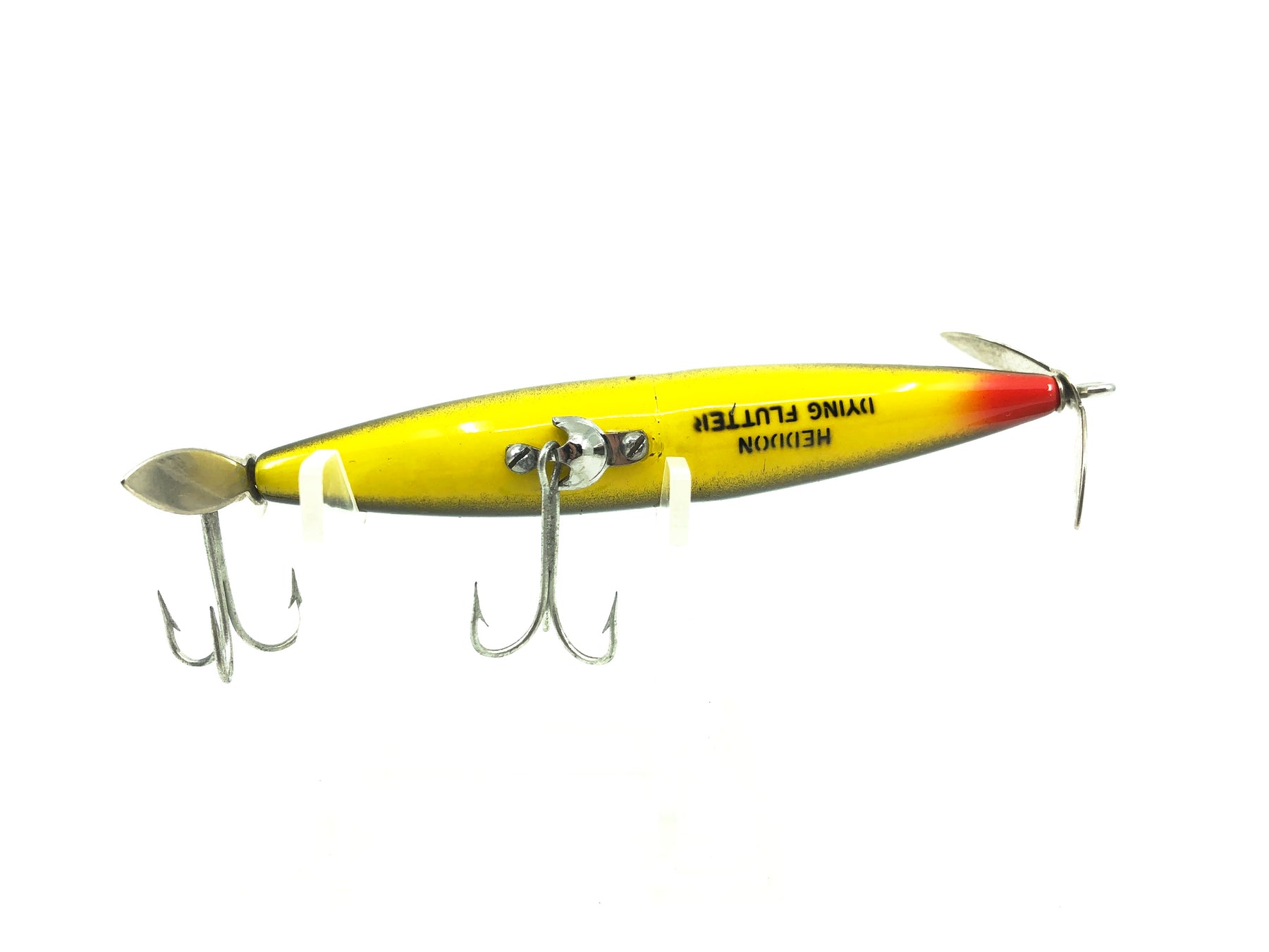 Heddon Dying Flutter, BF Bullfrog Color. Classic Heddon lure here. At about 3 3/4" long body. Lure is used but in great condition. See photos. Uncommon vintage Heddon!