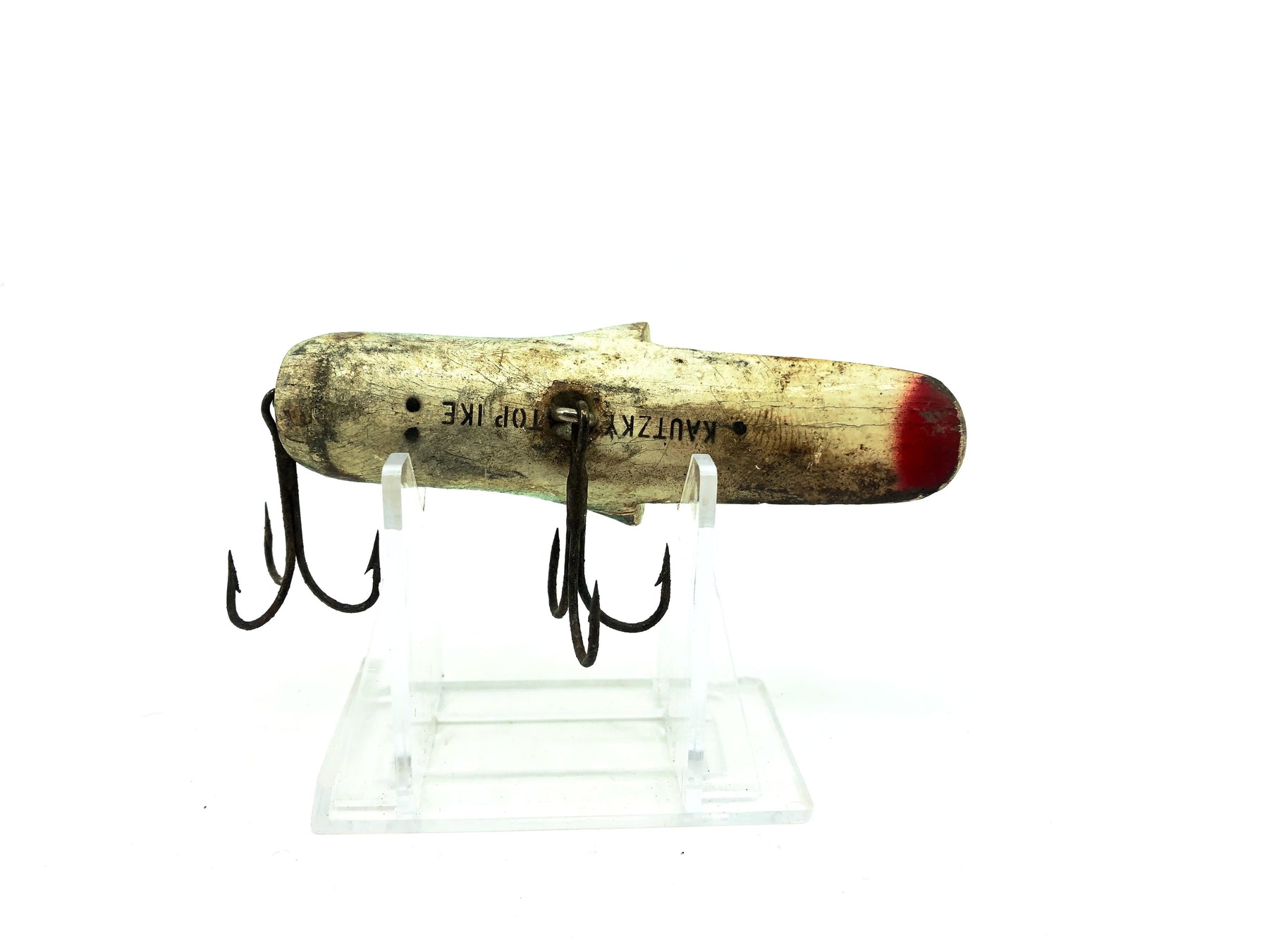 Kautzky Lazy Ike Wooden Top Ike Frog Color. About 3 3/8" long. Vintage used lure has plenty of wear but still in ok condition, see photos. These are tough to find. Wooden Kautzky Lazy Ike Top Ike lure dating to probably around the mid 1950's. Grab this one while you can. Fish or collect.