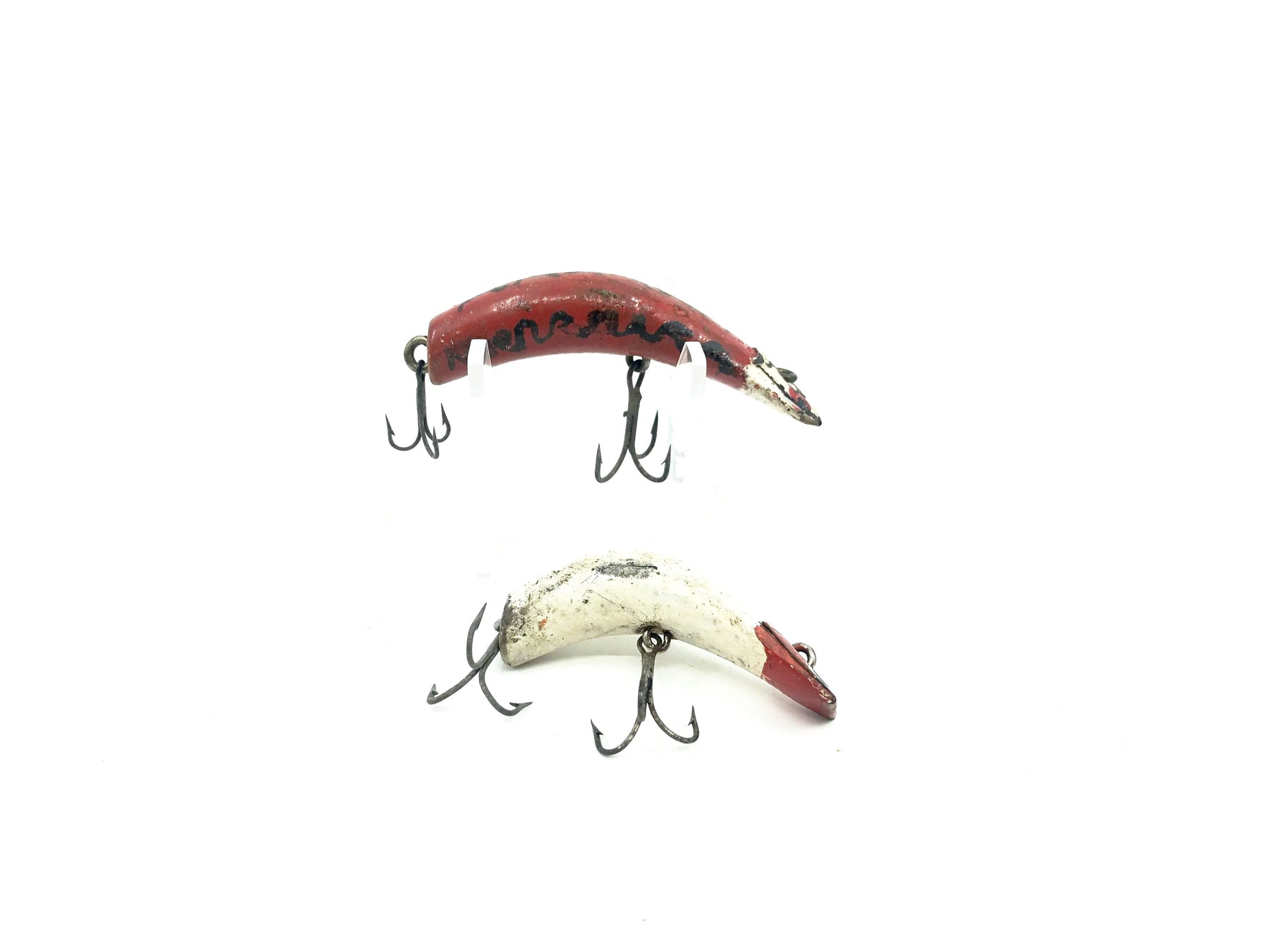 Repainted Wooden Lazy Ike Combo, #1 #2. One lure about 2 1/2", the other about 2". Both marked up and repainted at least some. See the photos and judge for yourself. Fix or fish as they are or display as classic battle tested warriors.