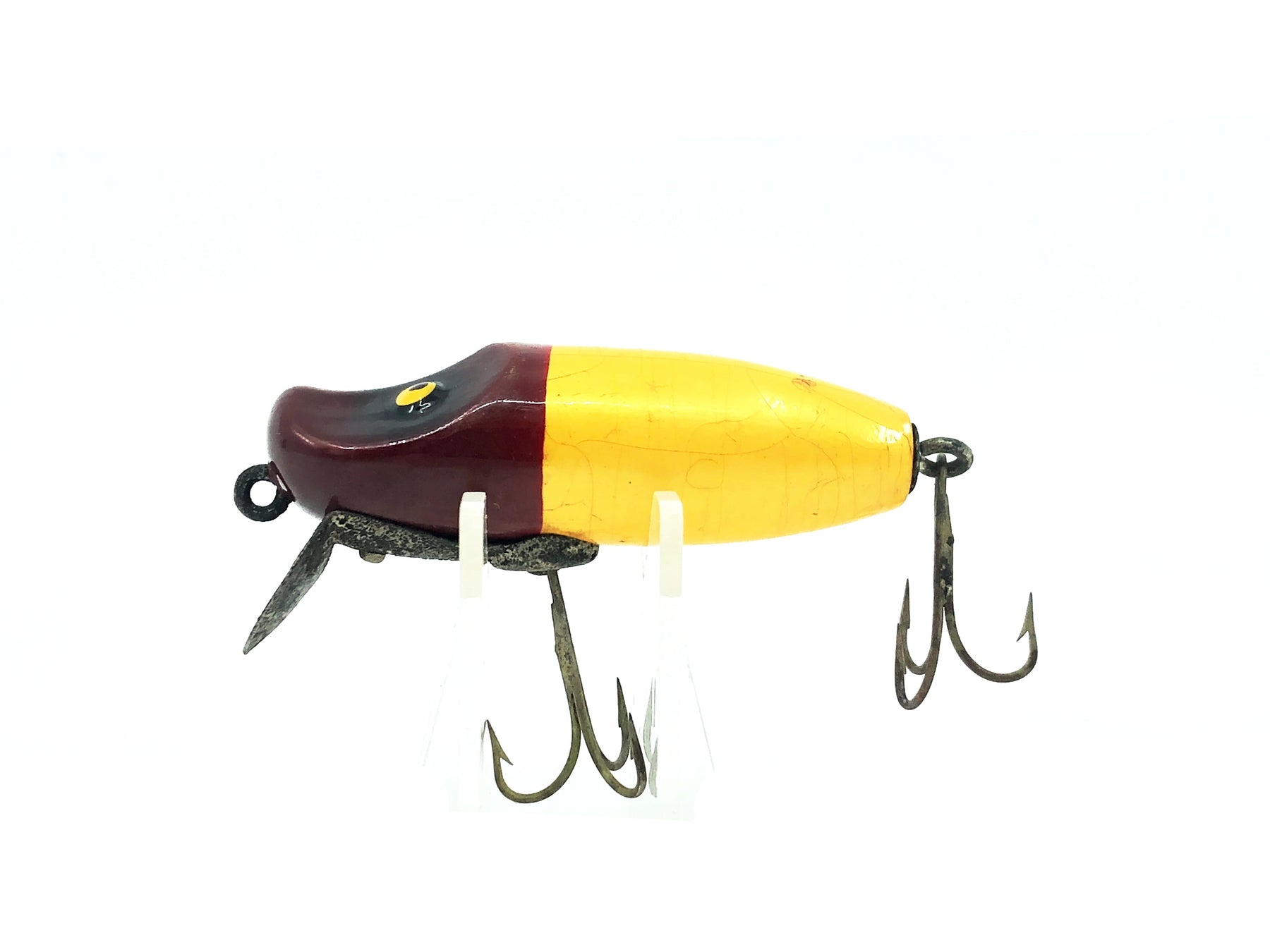 Paw Paw 9100 Series, #04 White/Red Head Color. Body on this bait is about 2 3/4" long. Great Paw Paw here with tack eyes. Used vintage lure with some minor wear but in overall good condition, see photos. Unique Paw Paw lure here. Grab this great lure while you can.