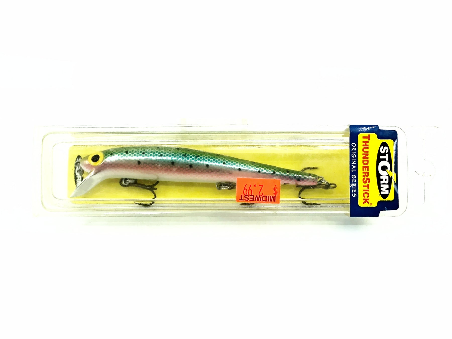 Storm Thunderstick AJ139 Metallic Rainbow Trout Color w/Box. Older Rapala Storm. Lure is about 4 1/2" long. This bait is new in the package and the box is in overall good condition.. Fish or collect. See photos.