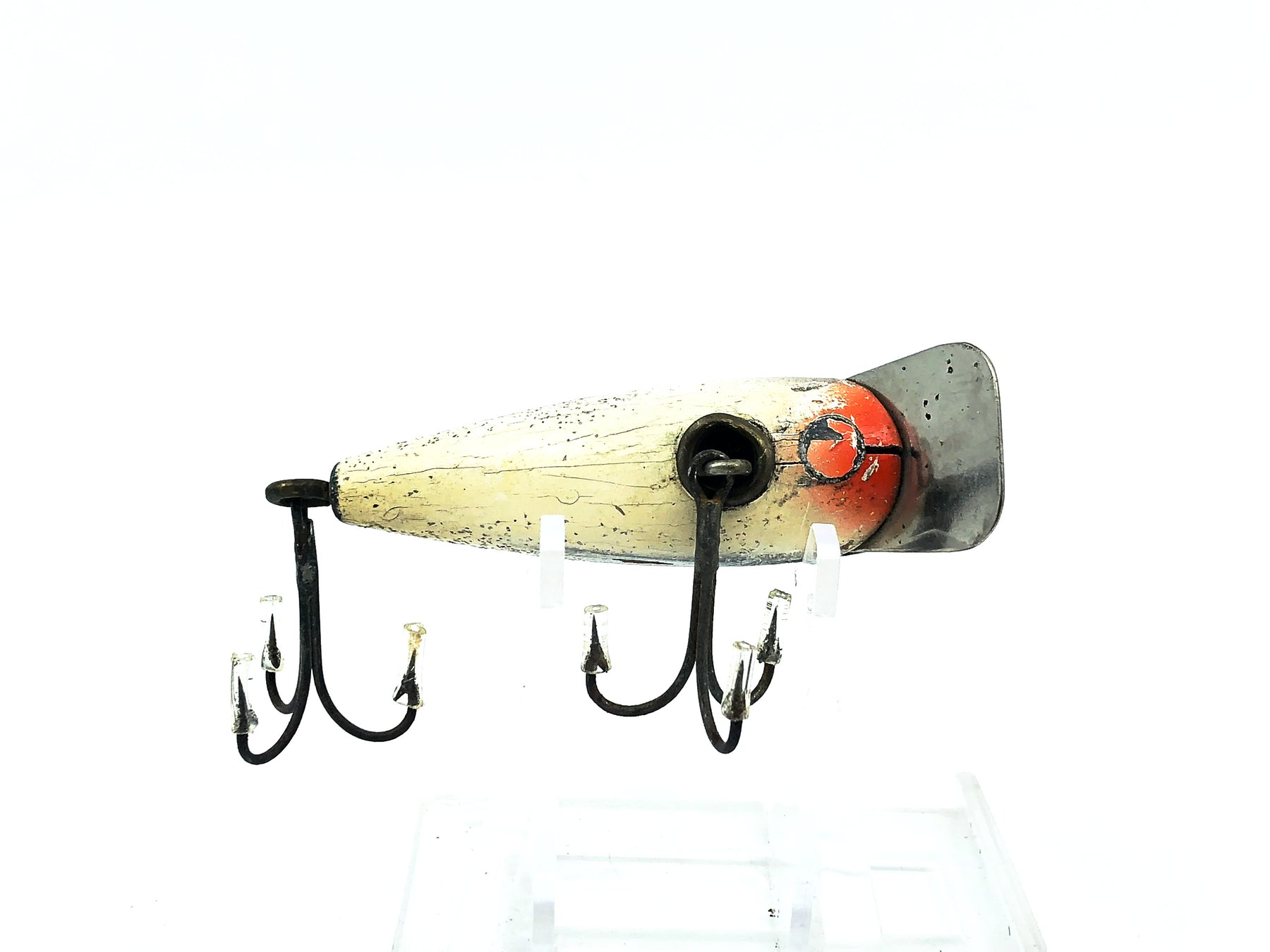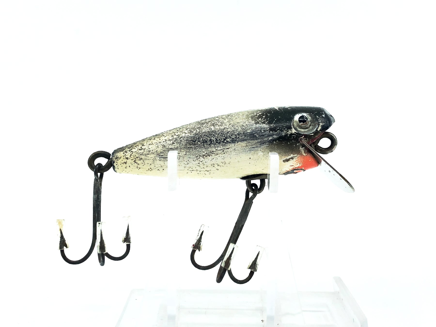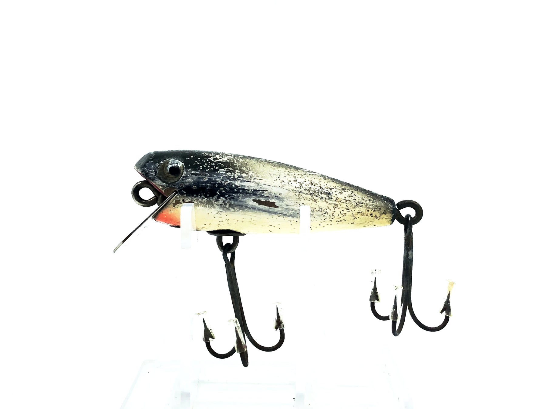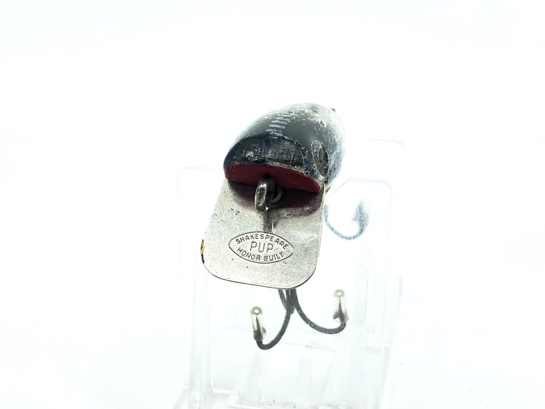 Shakespeare River Pup, SF Green Back/Flitter Color. Unique Shakespeare color and lure. About 2 3/8" long. This lure has some wear, cracks and marks but overall in ok condition, see photos. Fish or collect.