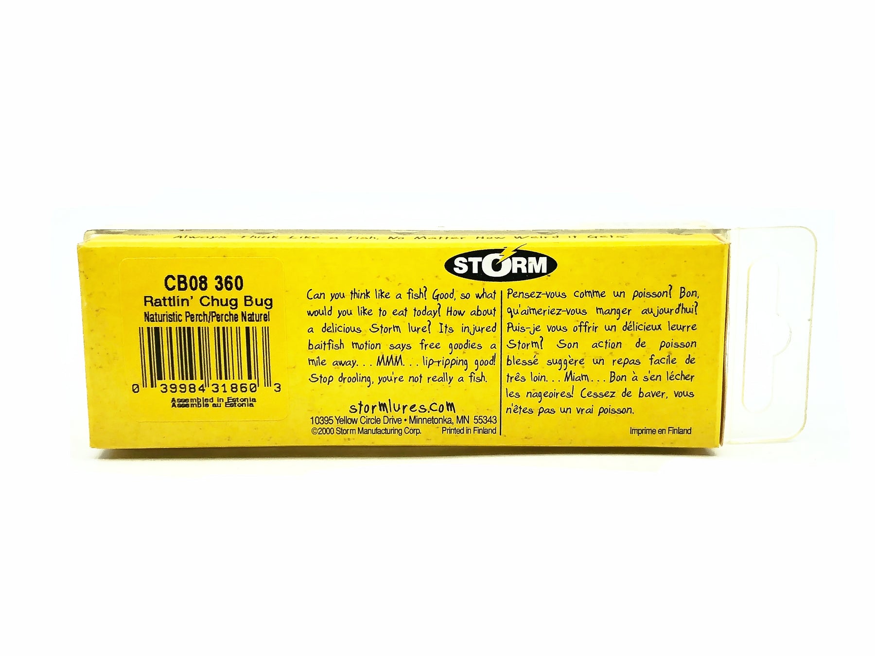 Storm Chug Bug CB08, #360 Naturistic Perch Color. Great Rapala Storm lure here. About 3 1/4" long. Lure is new in box. Box is sealed and in great condition. This lure would look great in your collection or tackle box. See photos.